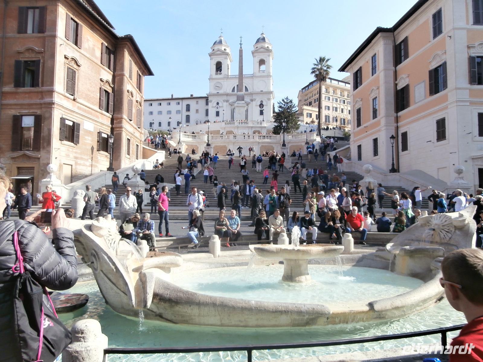 Wieder fahren wir mit dem Bus zum Start unserer Besichtigung. Am Piazza Venezia steigen wir aus und nach einem kurzen Spaziergang in die Via Corso hinein, treffen wir wieder unsere Sylvia. Mit ihr sind wir heute das letzte Mal unserer Reise unterwegs. Erster Besichtigungspunkt für heute ist der Trevi Brunnen. Er ist der größte Brunnen in der Stadt und stellt das Meer mit Neptun in der Mitte dar, dabei wird er von zwei Tritonen auf Seepferden flankiert. Nach einer Pause zum Eis essen geht die Spaziertour weiter . Vorbei an der Spanischen Botschaft und der Säule der unbefleckten Empfängnis Marias erreichen wir die Spanische Treppe, diese bekannte Freitreppe ist heute ein beliebter Treffpunkt für Jung und Alt. Es führen 138 Stufen hinauf zur Kirche Santa Trinita die Monti und der Brunnen auf dem Platz unterhalb der Treppe hat eine Geschichte zu erzählen. Ein angeschwemmtes Boot nach einem Hochwasser des Tibers soll die Inspiration des Künstlers gewesen sein, danach hat er den Bau in dieser Form realisiert. Hier ist auch das bekannte Café Greco, in dem sich die Deutschen u. a. Goethe oder Wagner getroffen haben. Spazierend erreichen den Piazza del Popolo, er präsentiert sich heute im neoklassizistischen Stil. Hier ist es an der Zeit, eine Mittagspause einzulegen. Danach geht es bergauf durch den Pincio Park zur Villa Borghese. Es erwartet uns ein italienischer Park, er bedeckt eine Fläche von 80 ha und wurde Anfang des 17. Jh. von Kardinal Scipione Caffarelli Borghese angelegt. Heute ist der Park öffentlich zugänglich und ein vielbesuchter Kulturpark. Wir besichtigen einen Teil der Galleria Borghese, die im 17. Jh. angelegt wurde. Das Museum begeistert mit einer Vielzahl von Gemälden, Mosaiken und Skulpturen, wir sehen Meisterwerke von Caravaggio, Raffael und Bernini. Mit Begeisterung lauschen wir den Ausführungen unserer Reiseleiterin Sylvia. Nun ist es Zeit Abschied zu nehmen, wir danken Sylvia für die angenehme Zeit der Führungen mit ihr. Mit dem Bus kehren wir zum Hotel zurück. Die Freizeit wird von den Gästen für Einkäufe und Besichtigung genutzt.