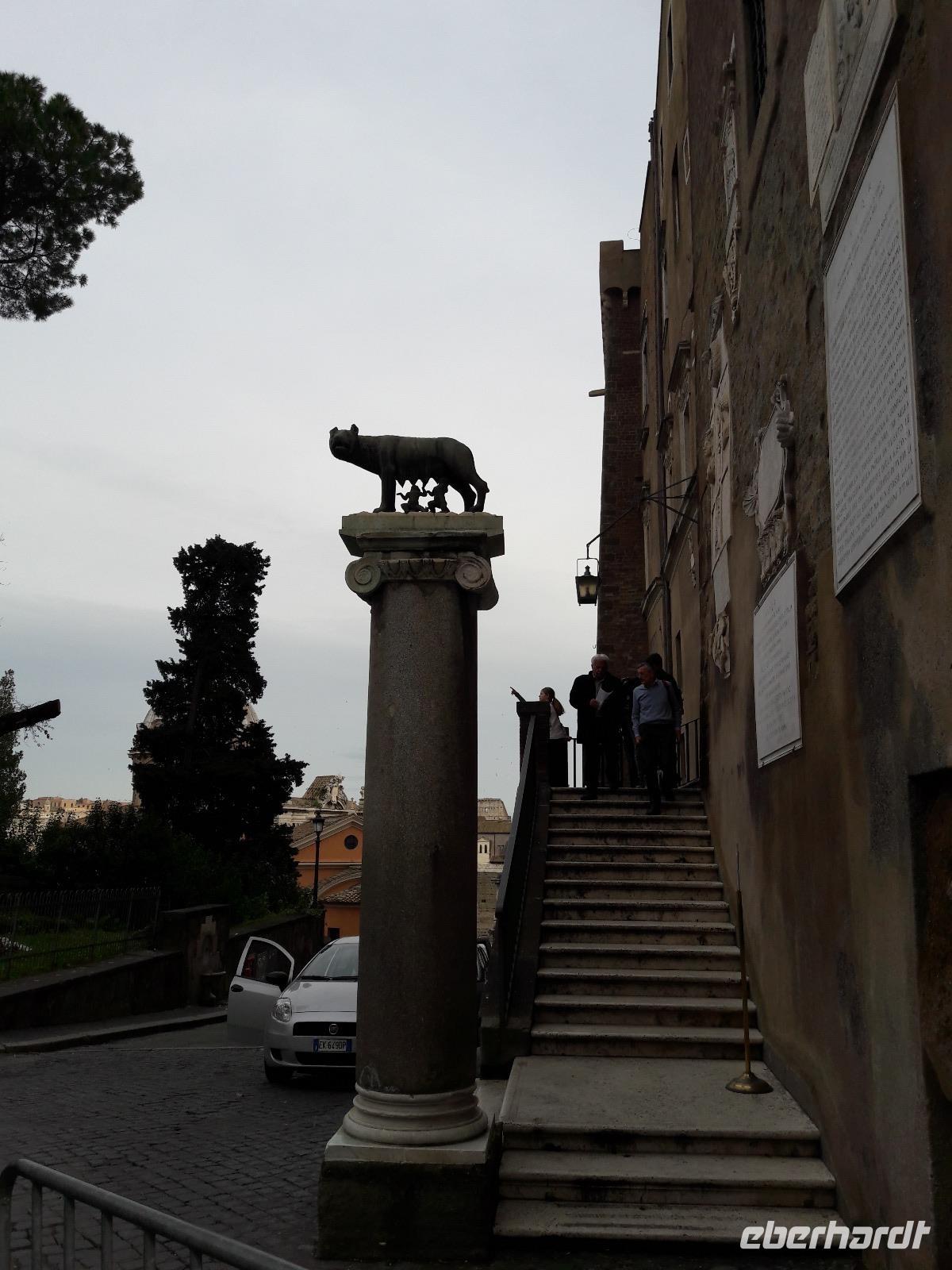 Auch wenn es vielleicht ein wenig seltsam anmutet, verlassen wir dennoch mit einem Gefühl der inneren Ruhe und Zufriedenheit den Friedhof. Wir verabschieden uns von Cristina und freuen uns, nunmehr eigenständig auf Entdeckungsreise gehen zu können. Etwa die Hälfte der Gäste nimmt mein Angebot, auch einmal bisher unbekannte Pfade zu gehen, an und so erleben wir noch einen sehr schönen Spätnachmittag in der Stadt am Tiber. Denn genau diesen, wo der Legende nach alles einmal begann, nehmen wir ins Visier. Wir bummeln entlang des Tibers (Tevere), schlendern über die Tiberinsel (Isola Tiberina), immer in der Hoffnung, unseren Beinen und unserem Gaumen auch einmal etwas Gutes zukommen lassen zu können. Doch hier "heißt man uns leider nicht willkommen" und so verlassen wir wenigstens mit einem leckeren Gelato in der Hand die Insel. Vorbei am Teatro Marcello erreichen wir den kleinsten der sieben Hügel Roms, den Kapitolshügel (Monte Capitolino). Wir bummeln über den Platz, "verneigen" uns vor Kaiser Marc Aurel, der hoch zu Ross auf uns herunterschaut und statten noch der Wölfin, der "Ziehmutter" von Romulus und Remus einen Besuch ab. In Richtung Via de Fori Imperiale und weiter auf dieser in Richtung Kolosseum laufend, erhaschen wir immer wieder den ein oder anderen faszinierenden Blick auf das Forum Romanum. An der Metrostation Colosseo angekommen, schließt sich dann der Kreis. Denn genau an dieser Stelle hat am Vormittag unsere "Grandtour" begonnen. Ich persönlich ziehe meinen Hut vor Ihnen, Sie waren sooo gut zu Fuß und haben tapfer diese Mammuttour bewältigt - es hat richtig Spaß gemacht!