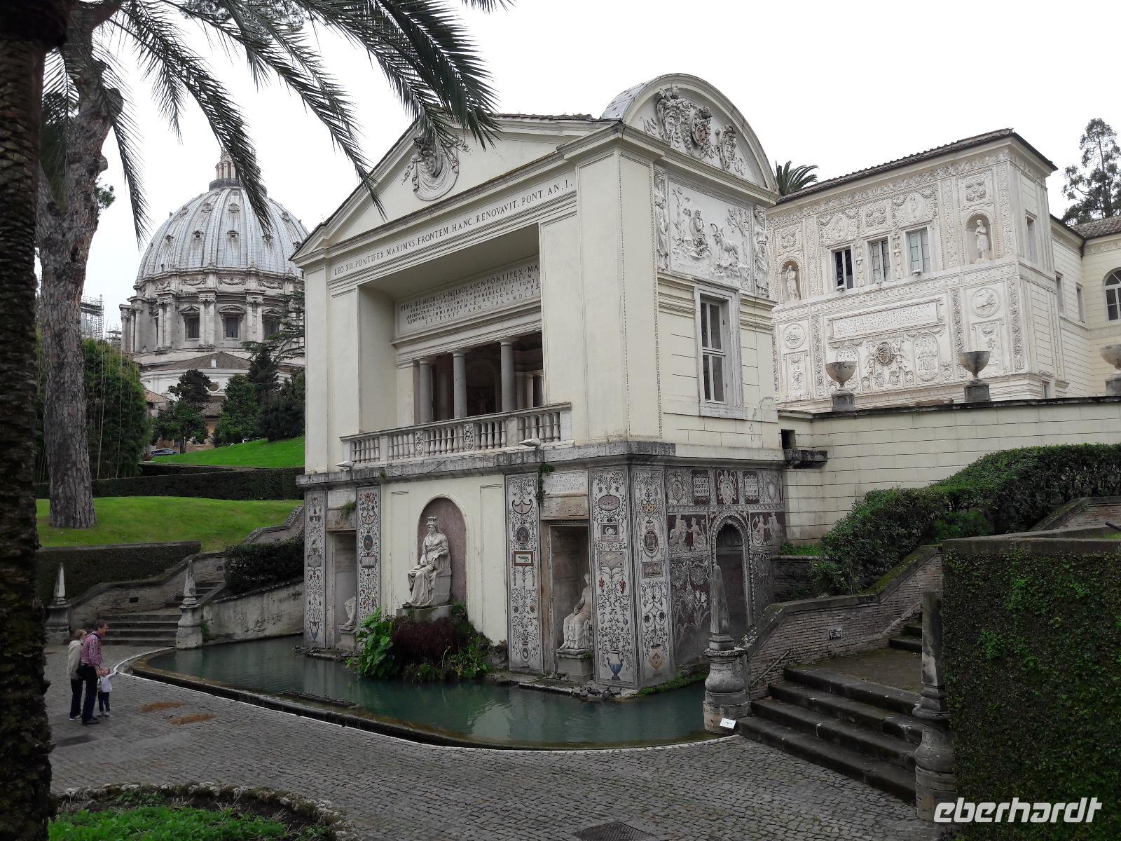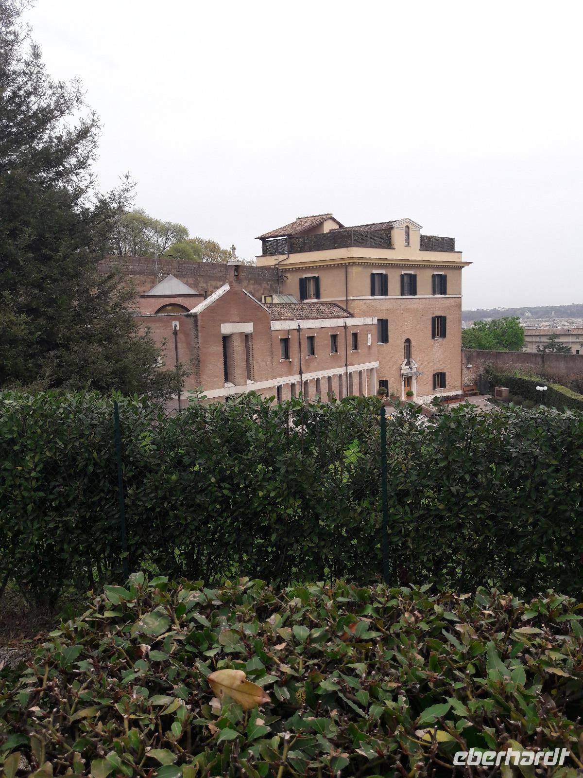 Mit Frau Wagner schlendern wir durch die gepflegten Gartenanlagen, beäugen u.a. das in der Zeit von Papst Johannes Paul II. erbaute Haus der heiligen Martha (Gästehaus und gleichzeitig Wohnsitz von Papst Franziskus), weiterhin den jetzigen Wohnsitz von Benedikt XVI., dann die Casina (das Mitte des 16. Jh. für Papst Pius IV. gebaute Sommerhaus), die nachgebaute Lourdes-Kapelle und lauschen dabei ihren interessanten Ausführungen. Nebenbei erfahren wir auch, dass "Papa Franziskus" während der Sommerzeit nicht mehr nach Castel Gandolfo reist, sondern die Zeit auch hier in den Vatikanischen Gärten verbringt. Das Castel Gandolfo ist jetzt für Besucher geöffnet.