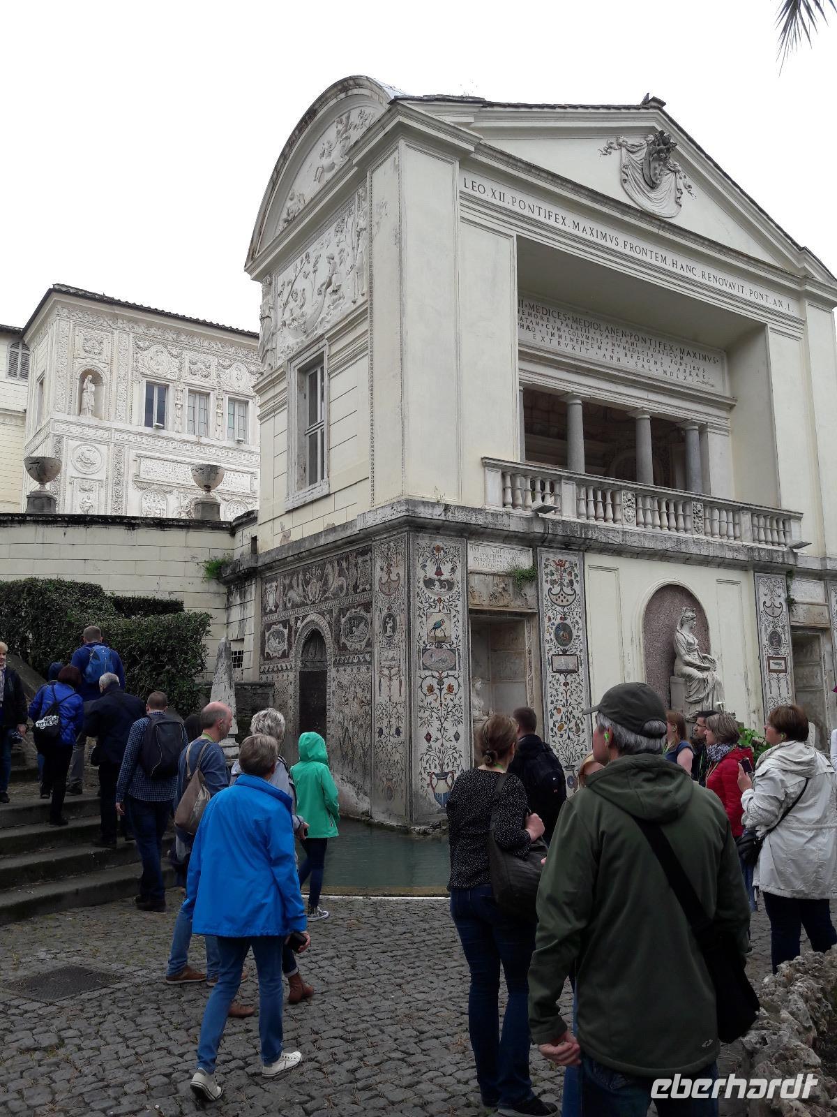 In den Vatikanischen Museen werden wir bereits von unserer Gästeführerin, Frau Roswitha Wagner, herzlich begrüßt. Sie wird uns in den nächsten zwei Stunden durch die Vatikanischen Gärten (Giardini Vaticani), die etwa die Hälfte des 44 Hektar großen Vatikanstaates ausmachen, führen. Im Anschluss daran werden wir mit Cristina die Vatikanischen Museen aufsuchen.