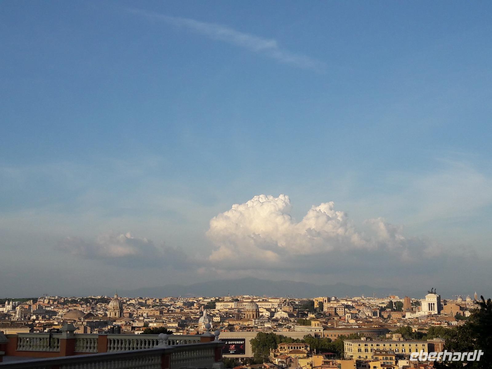 Hier eröffnet sich uns ein faszinierendes Panorama über Rom... die erste Bekanntschaft mit dieser Stadt könnte nicht schöner ausfallen.