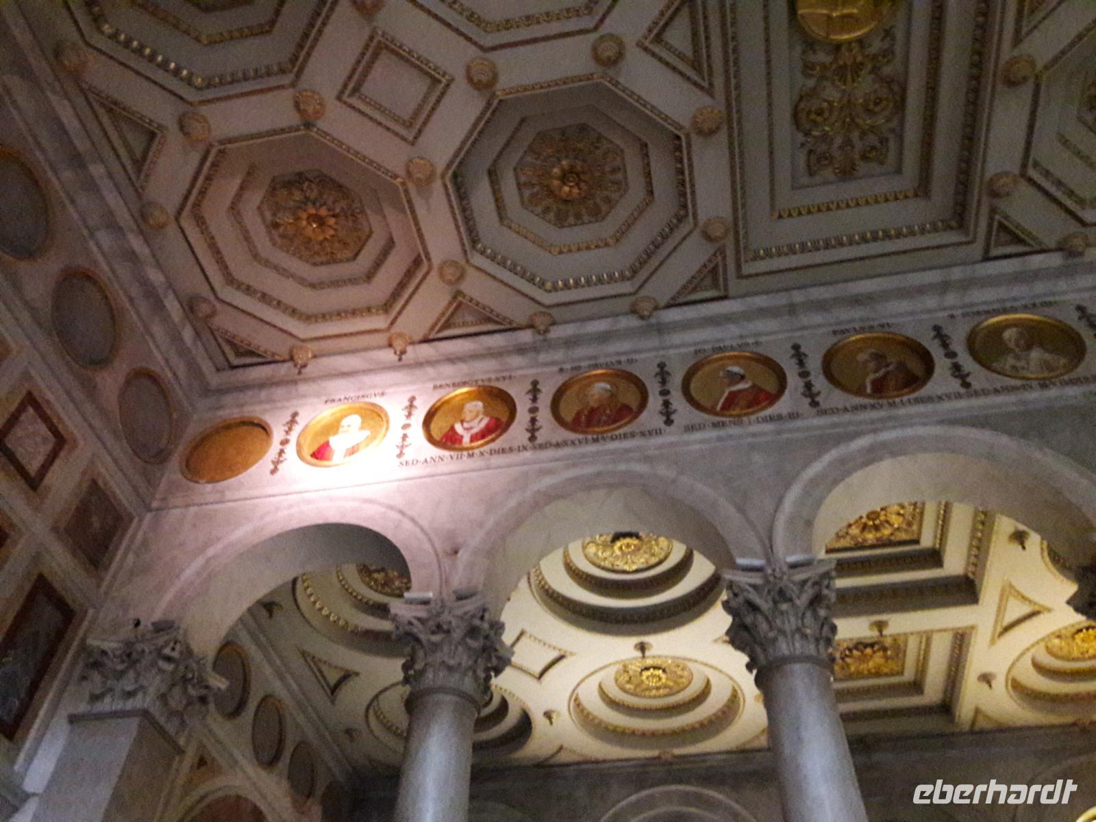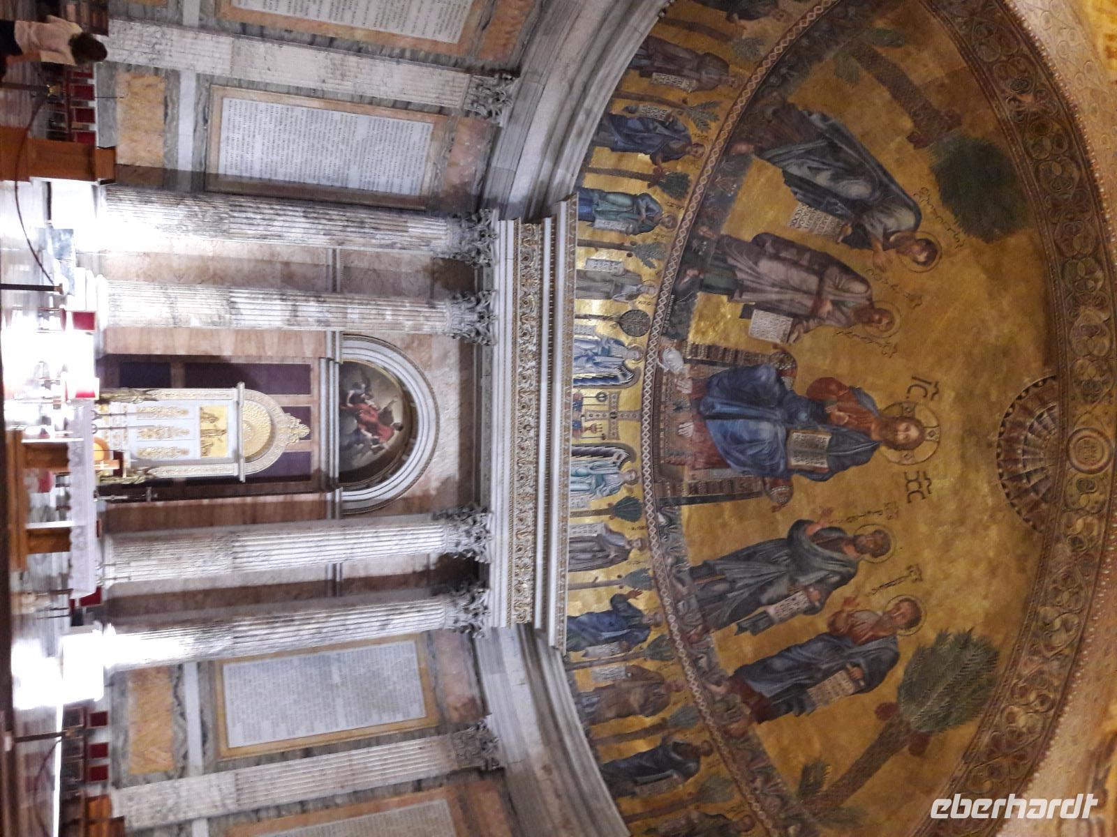 Bevor wir aber die Kirche betreten, lassen wir erst einmal unser Geburtstagskind an dieser ehrwürdigen Stelle so richtig hochleben. Wir schmettern ein Geburtstagsständchen, lauschen den vorgetragenen Seneca-Worten über das „Jung sein", umarmen und „herzen" unsere Jubilarin. Danach lassen wir uns von Sylvia in die Kirche entführen. Nach diesem beeindruckenden Besuch sind wir „frei", frei für eine individuelle Freizeitgestaltung. Wir verabschieden uns von Sylvia und freuen uns, nunmehr eigenständig auf Entdeckungsreise gehen zu können. Mein Vorschlag, den Abend in Trastevere ausklingen zu lassen, wird von vielen Gästen gern angenommen und so erreichen wir per Metro, Bus und Straßenbahn schließlich eines der typischsten Viertel von Rom, Trastevere. Hier gibt es kaum hochherrschaftliche Palazzi, dafür aber viele gemütliche Plätze und noch mehr gastronomischen Einrichtungen. Bevor wir letztere stürmen, werfen wir noch einen Blick in die wunderschöne Kirche „Santa Maria in Trastevere", die älteste Marienkirche Roms. Inzwischen haben sich die Reihen in der Gruppe gelichtet, die arg geschundenen Füße sind willenlos geworden und verlangen - ebenso wie die kleinen grauen Gehirnzellen - eine Ruhepause und etwas „Erfrischung". Das alles und dazu noch jede Menge Spaß finden wir in einer der Trattorien. Wir lassen diesen sehr erlebnisreichen Tag feuchtfröhlich (manche auch recht erfrischend und sehr sehr fröhlich!!!) ausklingen und freuen uns schließlich nur noch auf eines, unser Bett. Dann aber auch auf den nächsten Tag!