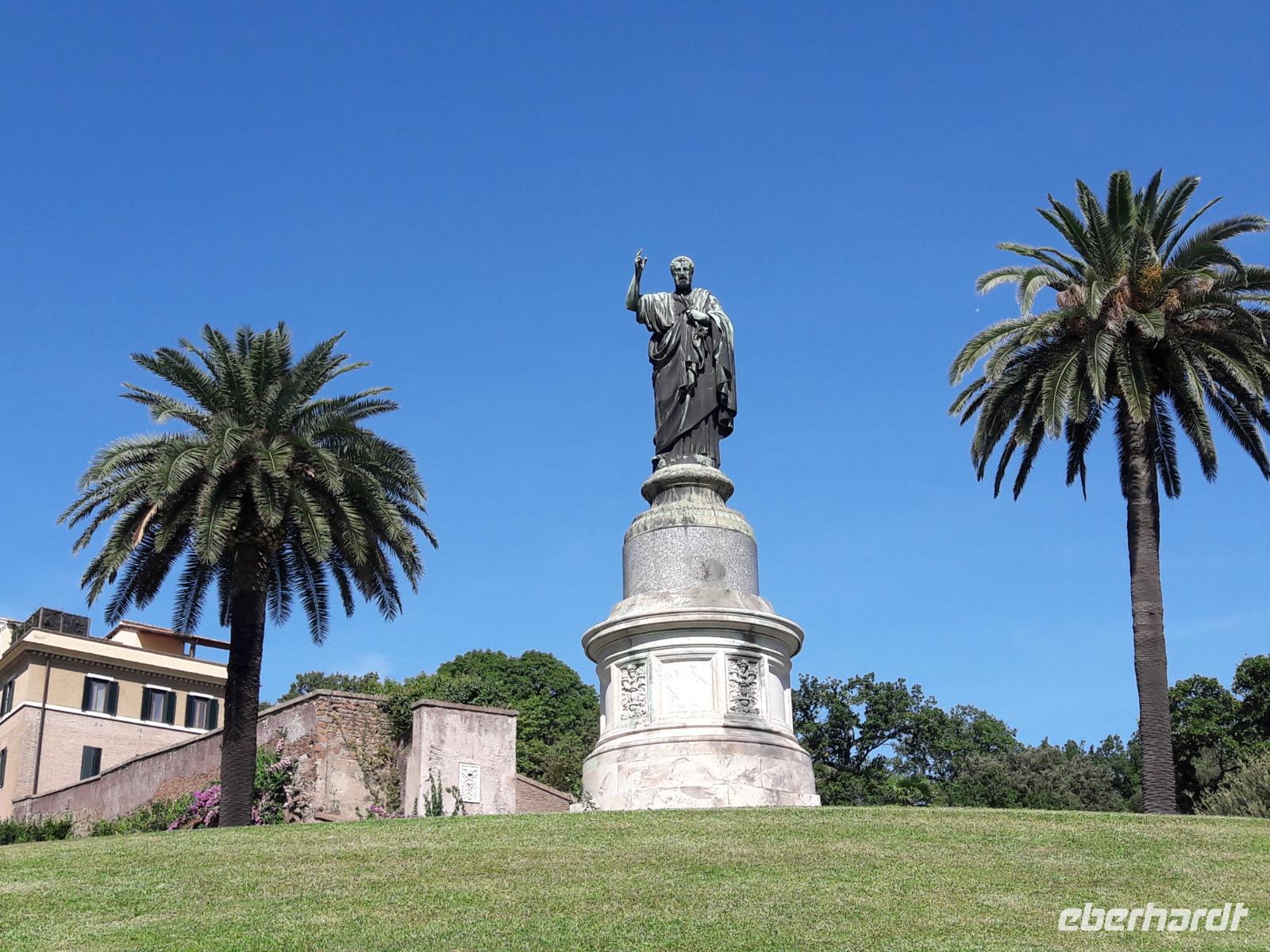 Der grüne Hügel über der Stadt bietet die besten Voraussetzungen für einen abendlichen Spaziergang. Wir bummeln bis zur Piazzale Giuseppe Garibaldi, wo wir vom Namensgeber hoch zu Ross „herzlich begrüßt werden".