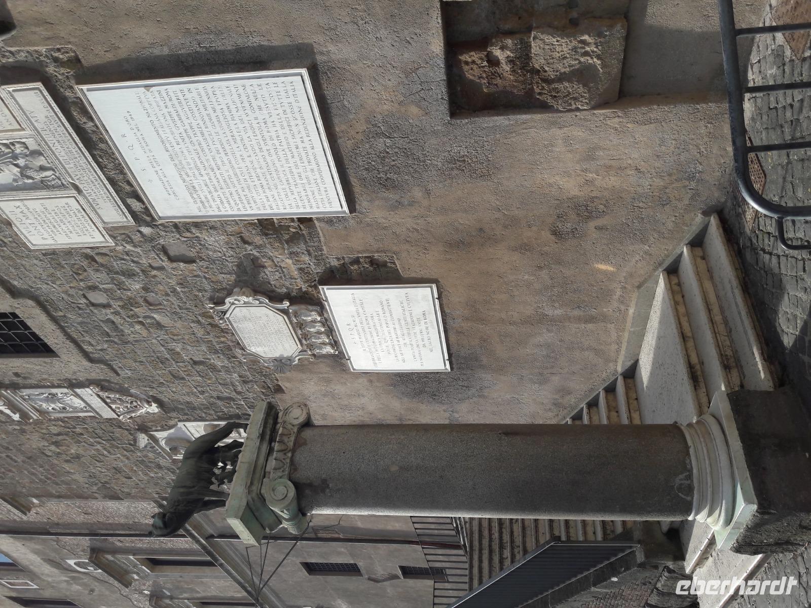 dem einst die Zitadelle des antiken Roms aufragte und der seit jeher als das Herz Roms bezeichnet wird. Wir liegen gut in der Zeit und gönnen uns somit einen Abstecher. Über die Cordonata (Rampentreppe) erreichen wir den Kapitolshügel, den Hügel der Götter und des Ruhms. Hier, auf der Piazza del Campidoglio, werden wir bereits von Kaiser Marc Aurel (hoch zu Ross) erwartet. Nur ein paar Schritte weiter begrüßt uns die Wölfin mit den Zwillingen Romulus und Remus. Der Legende nach gelten diese beiden als die Begründer von Rom. Sie erinnern sich sicher... „es war im Jahre 7-5-3, da kroch Rom aus dem Ei". So lernen es zumindest die Schüler in den italienischen Schulen. Die beiden Kinder, die keine gewöhnlichen Zwillinge waren, sondern die Kinder einer Königstochter und des Kriegsgottes Mars wurden aus Machtgründen von ihrem Großonkel in einem Körbchen auf dem Tiber ausgesetzt, blieben an einem Feigenbaum hängen, wurden von einer Wölfin gerettet, gesäugt und später von dem Hirten Faustulus aufgezogen. Als Erwachsene gründeten sie an der Stelle, wo sie einst gestrandet waren, die Stadt. Jedes Jahr, genauer gesagt am 21.04. feiert die Stadt Rom ihren Geburtstag.