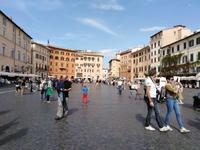 Ein beeindruckender Moment ist der Besuch des Petersplatzes, der geprägt ist von der Spiritualität und Macht des Glaubens sowie seiner genialen baulichen Manifestation. Glaube kann Berge versetzen, so heißt es und in diesen Stunden auf dem Petersplatz wurde das vorstellbar. Papst Franziskus fuhr gleich zu Beginn der Audienz mit dem Papamobil über den Platz, begleitet von Händeschütteln und Jubel der zahlreich Wartenden. Es war aber schwierig, ihn wirklich zu sehen. Neben seiner Predigt war die friedliche Internationalität der Pilger beeindruckend, die gemeinsam betend und singend die Anwesenheit des Papstes feierten. Nach einer kurzen Pause trafen wir uns mit Cristina auf dem Petersplatz, um zur Engelsburg, dem ehemaligen Mausoleum des Kaisers Hadrians und der späteren Fluchtburg der Päpste zu laufen. Cristina erläuterte uns den Aufbau des Monuments und seine Funktionen. Von dort aus spazierten wir über die Engelsbrücke zur Piazza Navona, einem der bedeutendsten und architektonisch beeindruckendsten Plätze Roms. Ohne den Vier-Ströme-Brunnen von Bernini hier gesehen zu haben, kann man Rom eigentlich nicht verlassen.