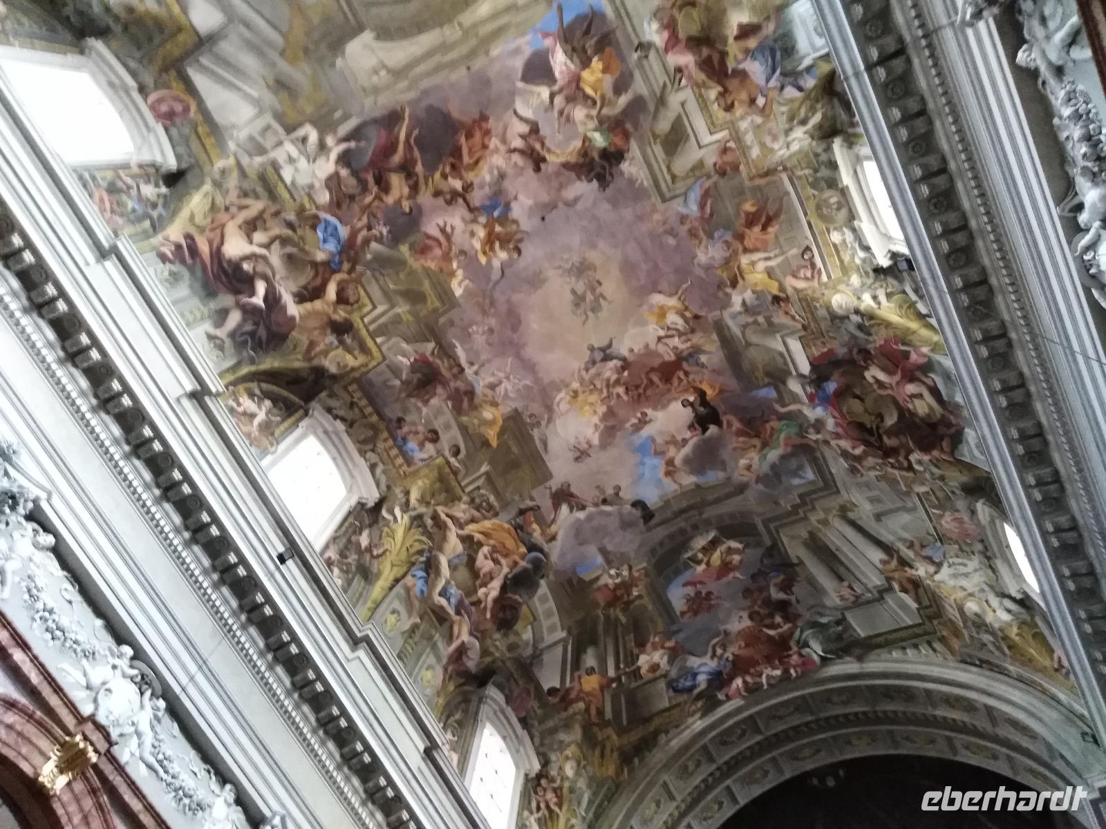 In der Nähe des Pantheons befindet sich die Kirche St. Ignazio, ein bis ins kleinste Detail barock gestaltetes Gotteshaus des Jesuitenordens. Besonders eindrucksvoll ist das Deckenfresko „Eingang in das Paradies" von Andrea Pozzo. Architektur, Malerei und Plastik verbinden sich in diesem Kirchenraum zu einem bezwingenden Ganzen, das über Auge und Herz zum Glauben zu führen kann.