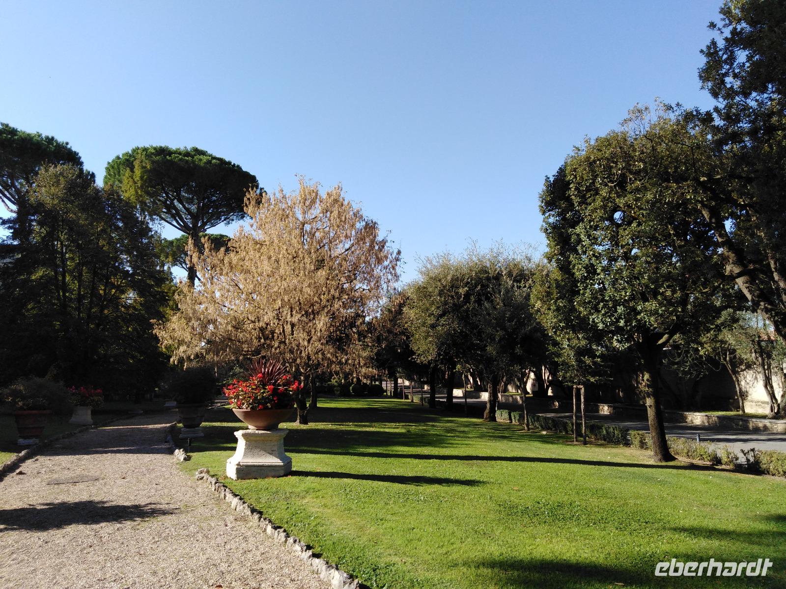 Dort trafen wir uns mit einer Führerin des Vatikans und begaben uns nach dem Erhalt der Eintrittskarten in die Vatikanischen Gärten, einem sonnigen Ruhepol inmitten von blühenden Sträuchern und Bäumen. Wir schlenderten fast zwei Stunden durch das kleine Paradies und lauschten den sachkundigen Erläuterungen.