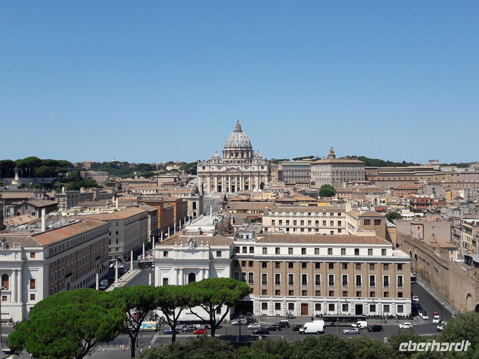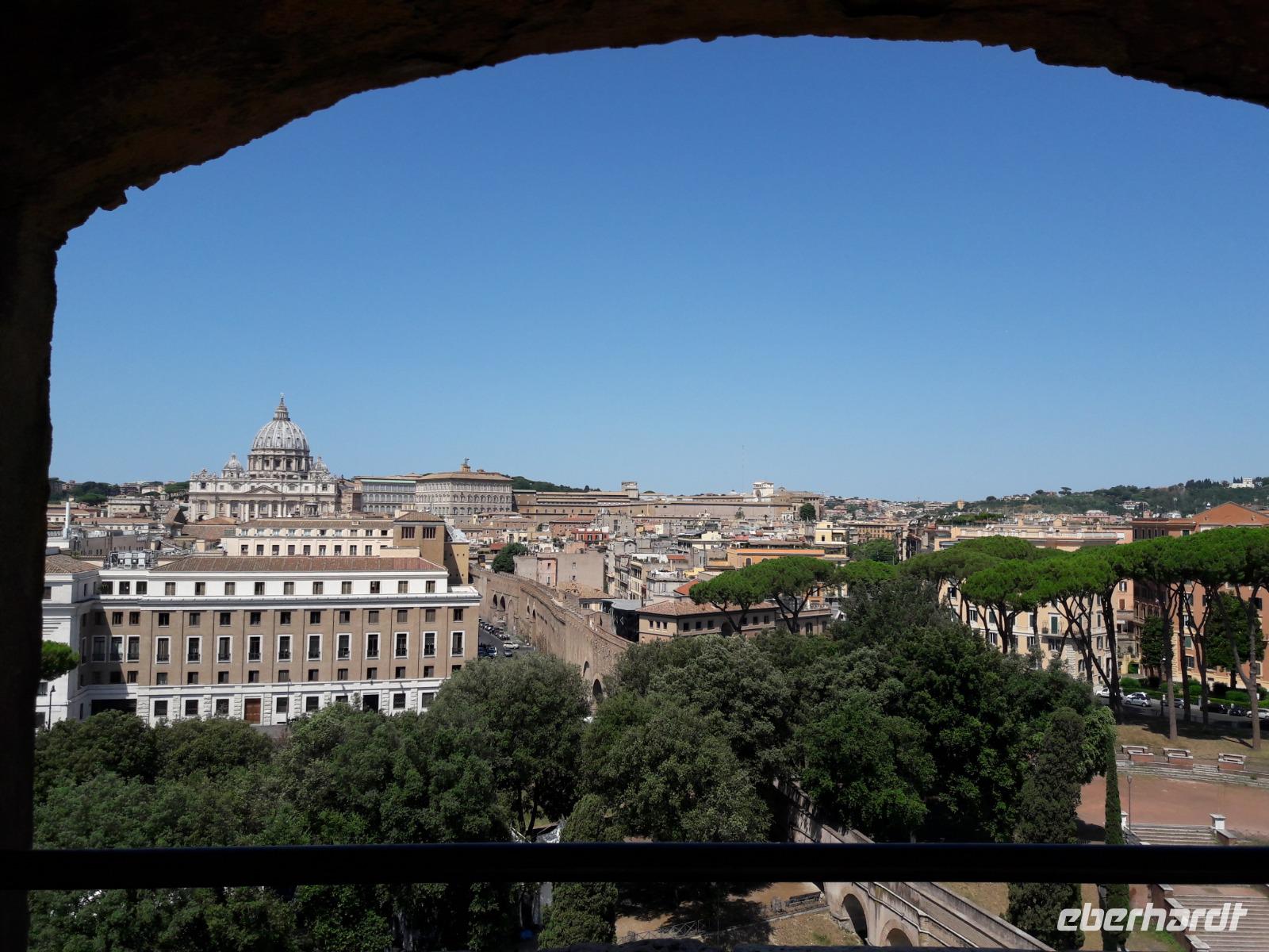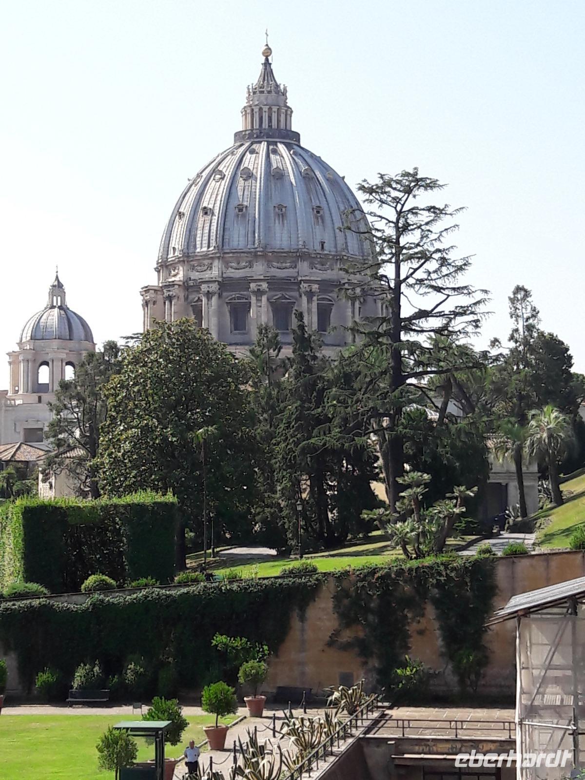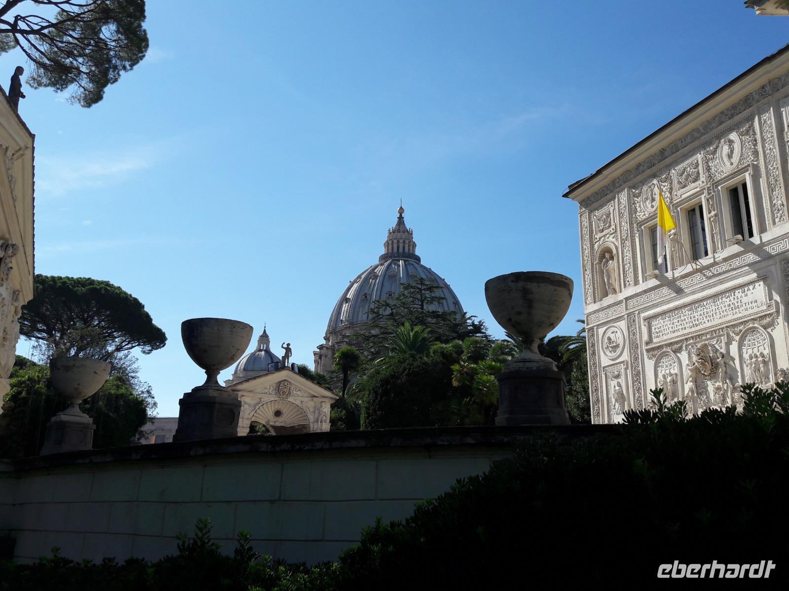 Unverwüstliche wollen unbedingt noch dem „Himmel ein Stück näher sein" und den Aufstieg in die Michelangelo-Kuppel wagen. Sie werden dafür mit einem traumhaft schönen Blick - sowohl ins Dominnere als auch auf Rom und den Vatikanstaat - belohnt.
