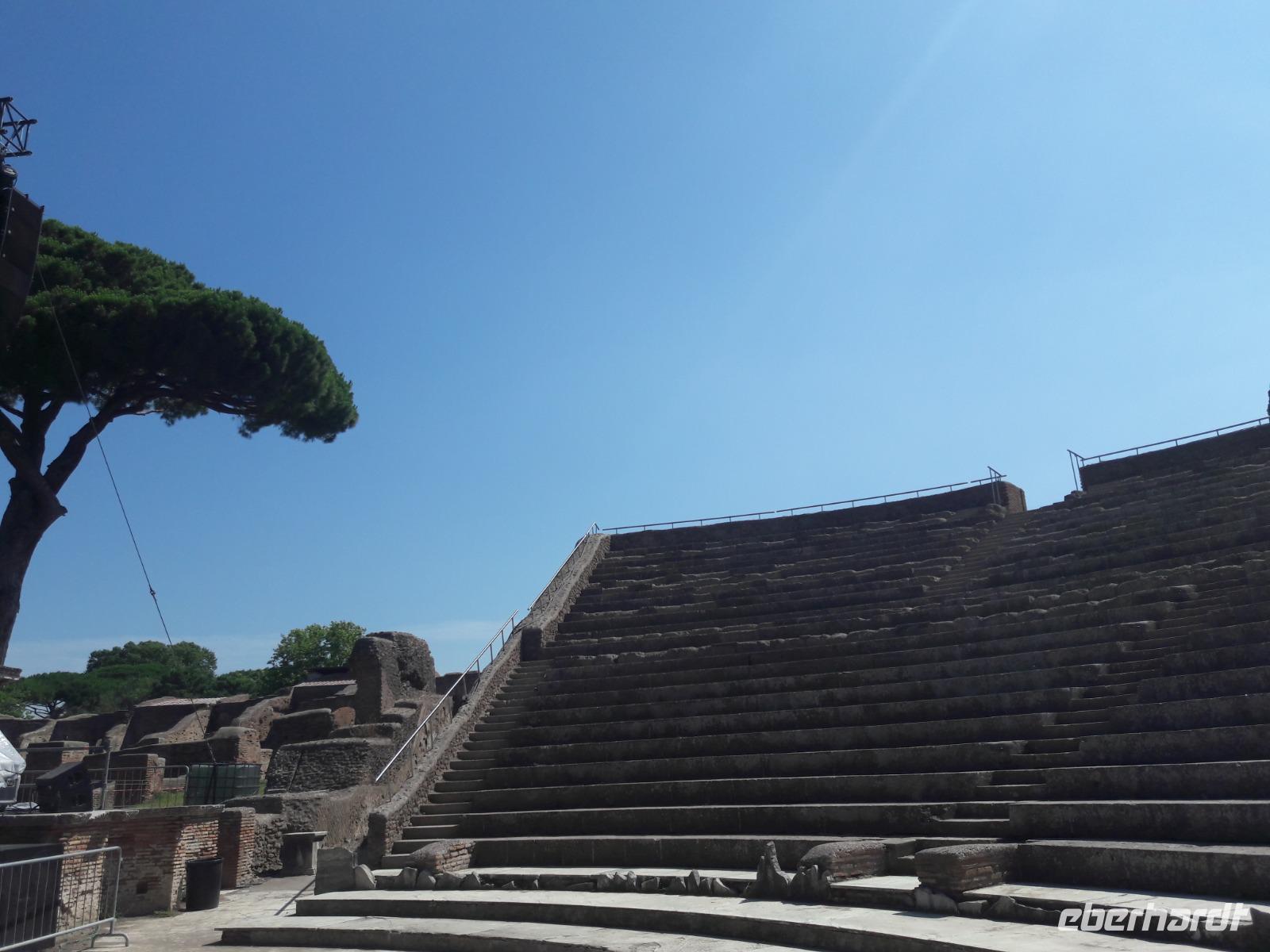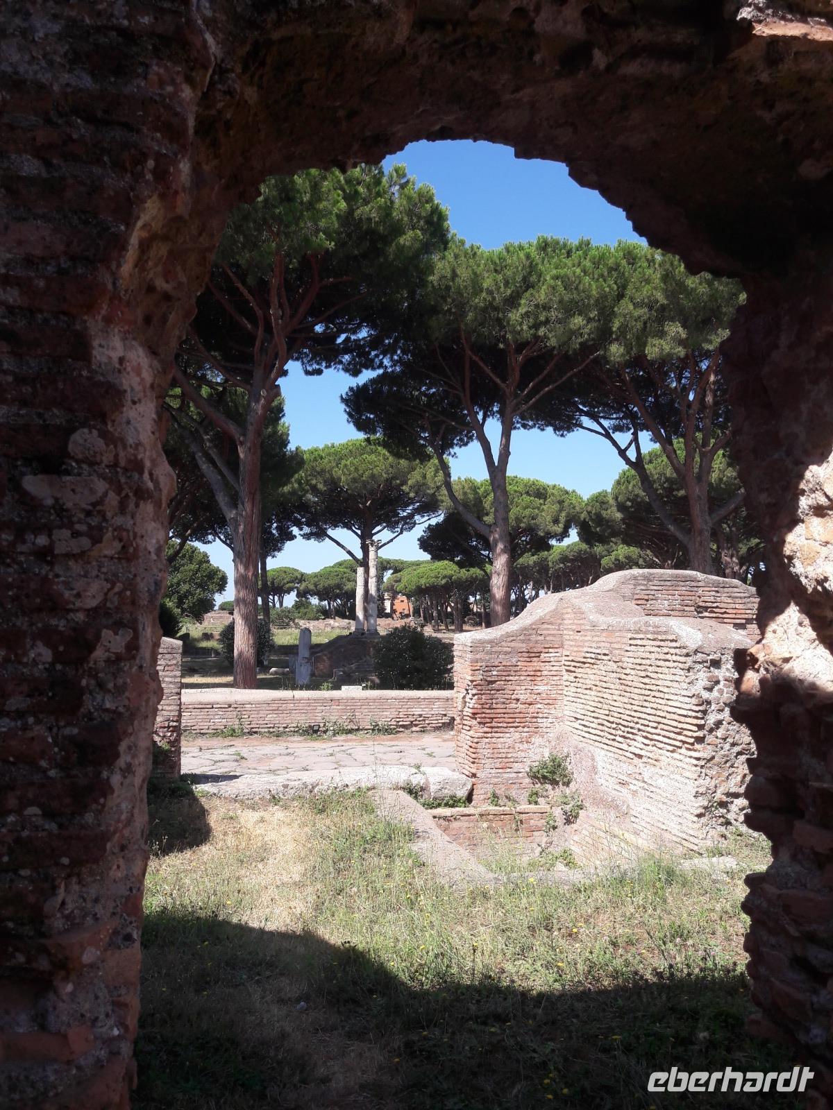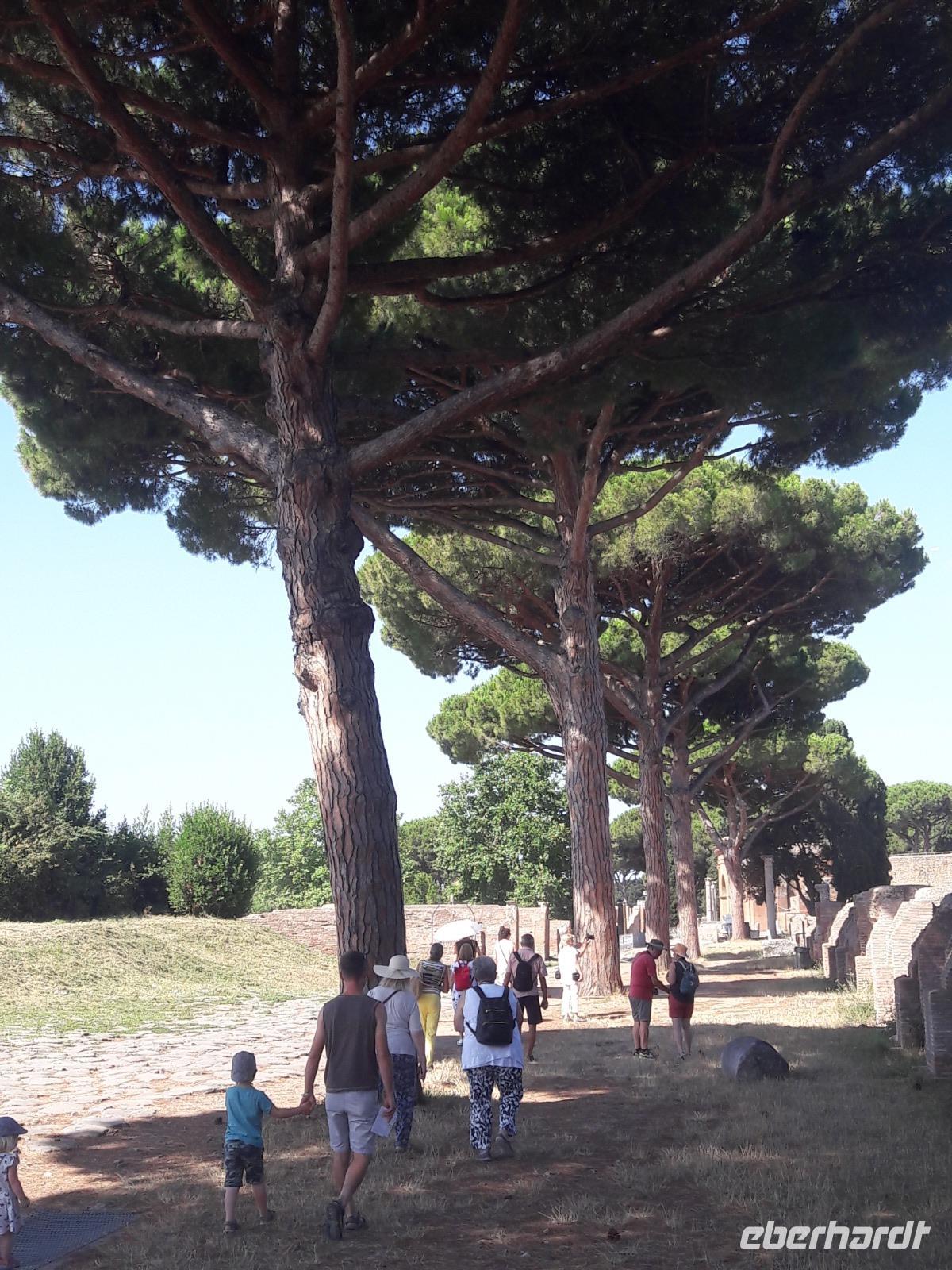 Und wo können wir das besser als in Rom, speziell in Ostia Antica. Dahin machen wir uns an diesem Morgen auf den Weg. Wir fahren zunächst mit der Metro und dann mit einem Vorortzug Richtung Meer. An diesem herrlichen Sommertag würden wir uns ehrlich gesagt auch gern einmal in „die Fluten" werfen, doch Sylvia wartet auf uns nur wenige Kilometer vom Meer entfernt, in Ostia Antica. Über 600 Jahre war Ostia, hervorgegangen aus einer kleinen Ansiedlung an der Mündung (ostium) des Tibers, der Haupthafen Roms. In fünf Jahrhunderten erreichte Ostia die Dimensionen einer bedeutenden Stadt (ca. 75.000 Einwohner). In den ersten drei Jahrhunderten n. Chr. erlebte die Stadt ihre Blütezeit. Das Sumpffieber und die Rivalität mit dem Hafen Portus läuteten im 5. Jahrhundert n. Chr. den Niedergang des Hafens ein, das völlige Aus brachte das 9./10. Jahrhundert n.Chr..