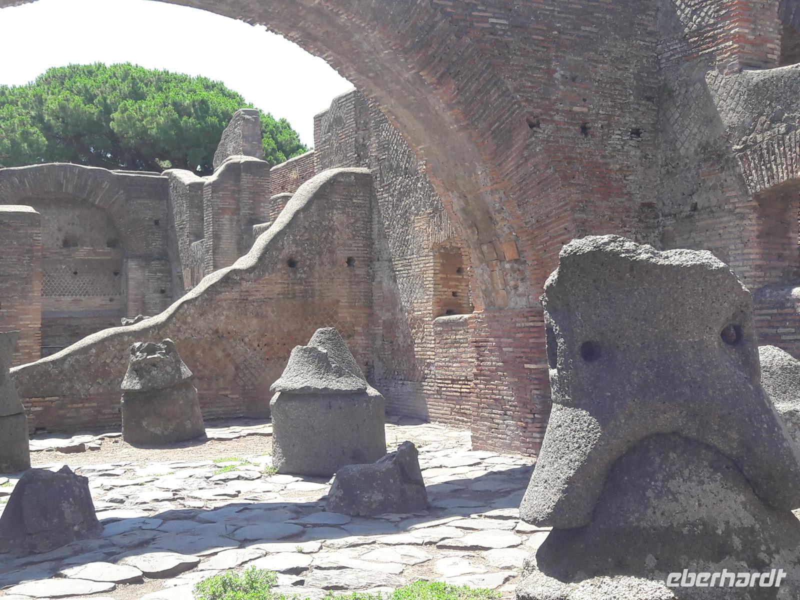 Schlick aus dem Tiber bedeckte im Laufe der weiteren Jahrhunderte die Gebäude und konservierte sie. Im 19., aber ganz besonders im 20. Jahrhundert begann man mit den Ausgrabungen zu wissenschaftlichen Zwecken. Heute gibt uns der Rundgang einen Einblick in die Alltagskultur der Antike. Vierstöckige Mietshäuser, Paläste, Theater, Tempel, Speicher, Häuser, in denen die verschiedensten Handelsvertretungen ansässig waren, Markthallen, Bäckereien und Osterien wurden seit 1802 aus dem Sand „gebuddelt".