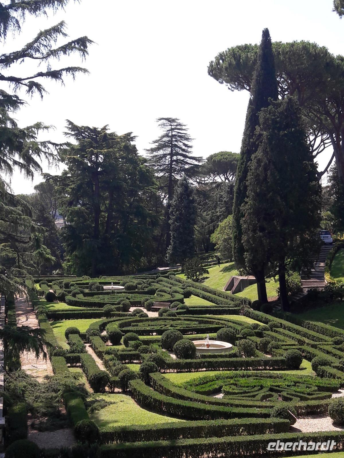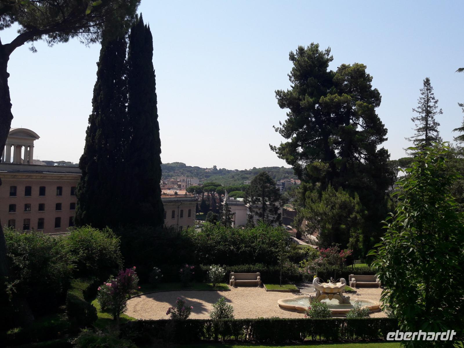 An diesem Vormittag wollen wir zuerst die Vatikanischen Gärten besuchen. Gemeinsam mit unserer Gästeführerin, Frau Brigitte Heilmeier, schlendern wir durch die gepflegten Gartenanlagen und lauschen dabei ihren recht interessanten Ausführungen. Wir beäugen u.a. auch den jetzigen Wohnsitz von Benedikt XVI., des Weiteren den Bahnhof, die Grotte, die nachgebaute Lourdes-Kapelle, das Gästehaus (Wohnsitz von Papst Franziskus) und... und... und...Unter dem Motto „ein schöner Rücken kann auch entzücken", betrachten wir die Casina, ein für Papst Pius IV. Mitte des 16. Jahrhunderts gebautes Sommerhaus. Reparaturarbeiten verbieten uns leider einen Blick in das wunderschöne Antlitz (schauen Sie bitte in die Fotogalerie). So ganz nebenbei erfahren wir, dass „Papa Franziskus" momentan Urlaub macht, diesen aber nicht wie seine Vorgänger in Castel Gandolfo verbringt (die Sommerresidenz ist jetzt für Besucher geöffnet), sondern zu Hause, in den Vatikanischen Gärten. Nach diesem etwa zweistündigen angenehmen Spaziergang, bei dem auch unsere „Botaniker" auf ihre Kosten kommen, benötigen wir erst einmal eine kleine Verschnaufpause. Wir „stürzen uns wieder ins Getümmel" - vorerst aber in eine der gastronomischen Einrichtungen des Vatikans. Nach einem kleinen Imbiss treffen wir uns mit Sylvia zum „Kulturmarathon" durch die Vatikanischen Museen. Wir „schwimmen" mit dem Besucherstrom durch die Säle und Gänge, immer wieder staunend, was die Päpste im Laufe der Jahre so alles „angesammelt" bzw. „geliehen" haben. 50.000 Objekte, verteilt in 1.400 Räumen sollen es sein - für mich unvorstellbar, einfach unfassbar. Am Ende des Rundganges schwirren uns ganz schön die Köpfe und so manch einer von uns wünscht sich im Stillen bei einem „Däbbchen Gaffee" die Füße hochlegen zu dürfen. Es bleibt ein Wunschgedanke... Stattdessen steuern wir auf den Höhepunkt des Tages, den Besuch der SIXTINISCHEN KAPELLE, zu. Und dann stehen wir inmitten der Menschenmenge, umgeben von den faszinierenden Meisterwerken eines Michelangelos, eines Botticellis, Peruginos, Ghirlandaios usw. usw.