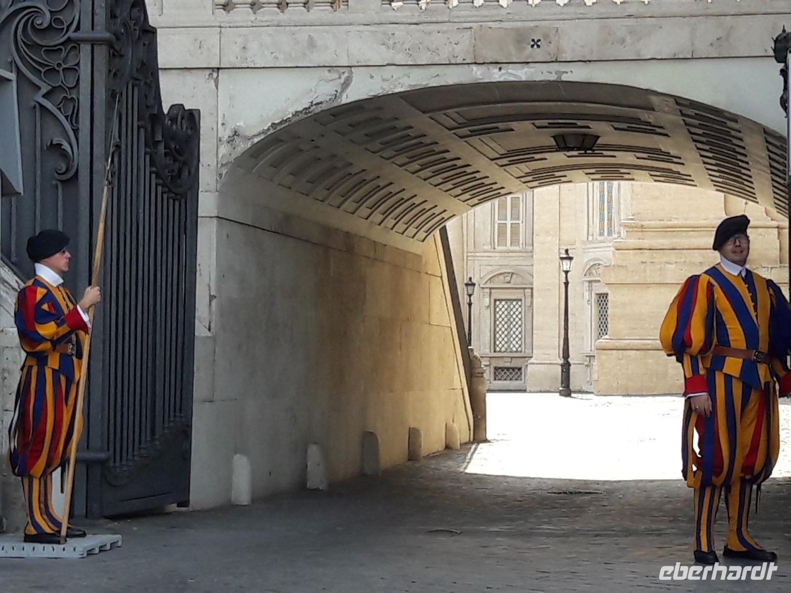 Gespannt und voller Vorfreude auf den heutigen Tag „machen wir uns alle auf die Strümpfe" - heute in Richtung Vatikan. Mit der Metro, anschließend per pedes erreichen wir den von hohen und dicken Mauern umgebenen Vatikanstaat, mit seinen 44 Hektar der kleinste Staat der Welt. Hier, wo Petrus um 64 n. Chr. gekreuzigt und begraben sein soll, residieren nunmehr seine Nachfolger (Papst Franziskus ist, wie wir gehört haben, der 266. Papst).