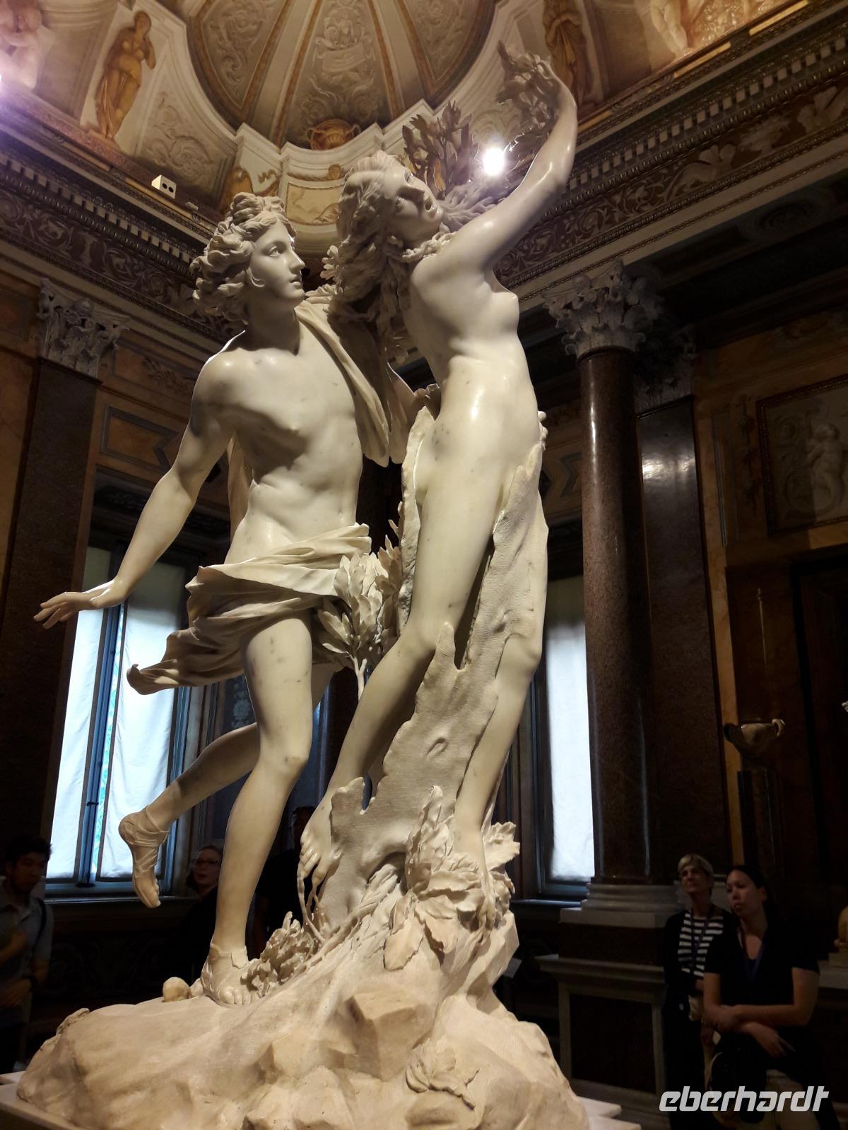 Obgleich heute mit dem Besuch der Galleria Borghese, der Spanischen Treppe, dem Trevi-Brunnen und dem Pantheon noch einige „Highlights" auf dem Programm stehen, wollen wir keine Hektik aufkommen lassen. Gemütlich schlendern wir am Morgen zur Villa Borghese, eine der schönsten Parkanlagen Roms. Einst im Besitz der Familie Borghese, ging sie 1901 in den Besitz der Stadt über. Hauptanziehungspunkt und zugleich unser Ziel ist die Galleria Borghese.