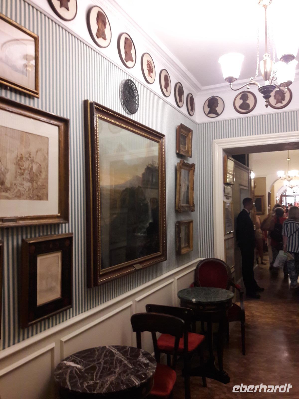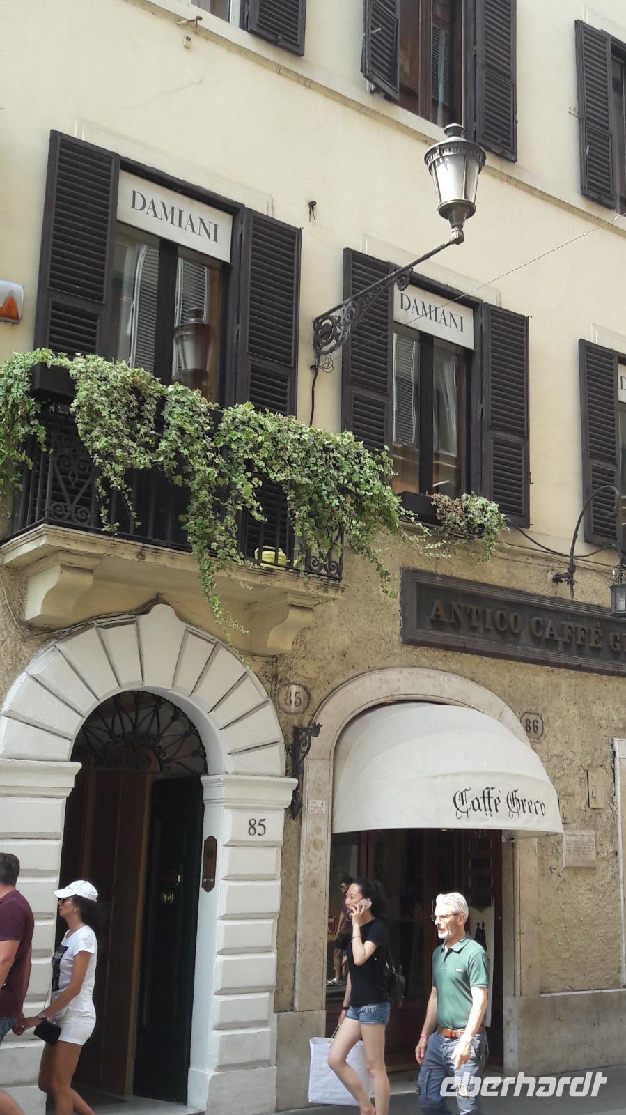 bummeln entlang der Via del Corso, „verkraften" dieses sehr rege Treiben in dieser Geschäftsstraße und stehen letztendlich vor dem Haus, in dem Goethe während seines Romaufenthaltes gewohnt hat. Als er im September 1786 zu seiner ersten Italienreise aufbricht, ist er sehr, sehr aufgeregt. Er freut sich auf „SIE". Er sehnt sich, verzehrt sich geradezu nach ihr. In den Nächten auf seiner langen Reise schläft er nur sehr wenig, er wechselt kaum noch seine Kleidung, er hat nur noch eins im Sinn, er will „SIE" und damit meine ich ROM, so schnell wie möglich treffen. Bei seinem Freund, dem Maler J. H. Wilhelm Tischbein, in der Via del Corso, findet er ein vorübergehendes Zuhause. Nach diesem kleinen Abstecher bummeln wir mit Sylvia noch über das ehemalige Marsfeld, hin zum Augustusmausoleum und zum Ara Pacis Monument. Danach verabschiedet sich Sylvia von uns und entlässt uns in die Freizeit. Mit einigen Gästen spaziere ich noch in Richtung Spanische Treppe. Doch bevor wir diese erreichen, kehren wir dort ein, wo einst unser lieber Geheimrat J.W. v. Goethe - allerdings inkognito - sein „Käffchen" genossen hat, nämlich im Caffè Greco.