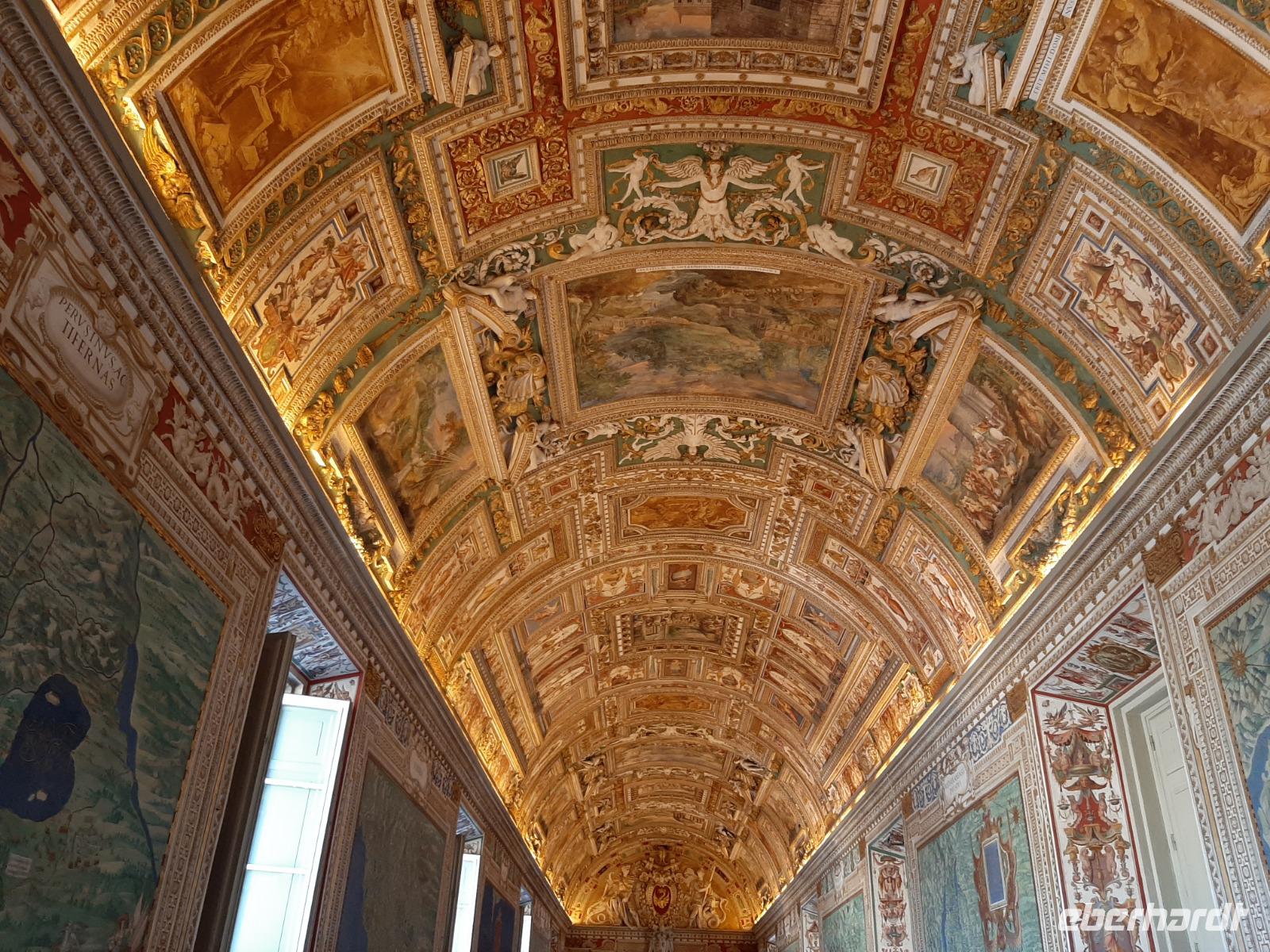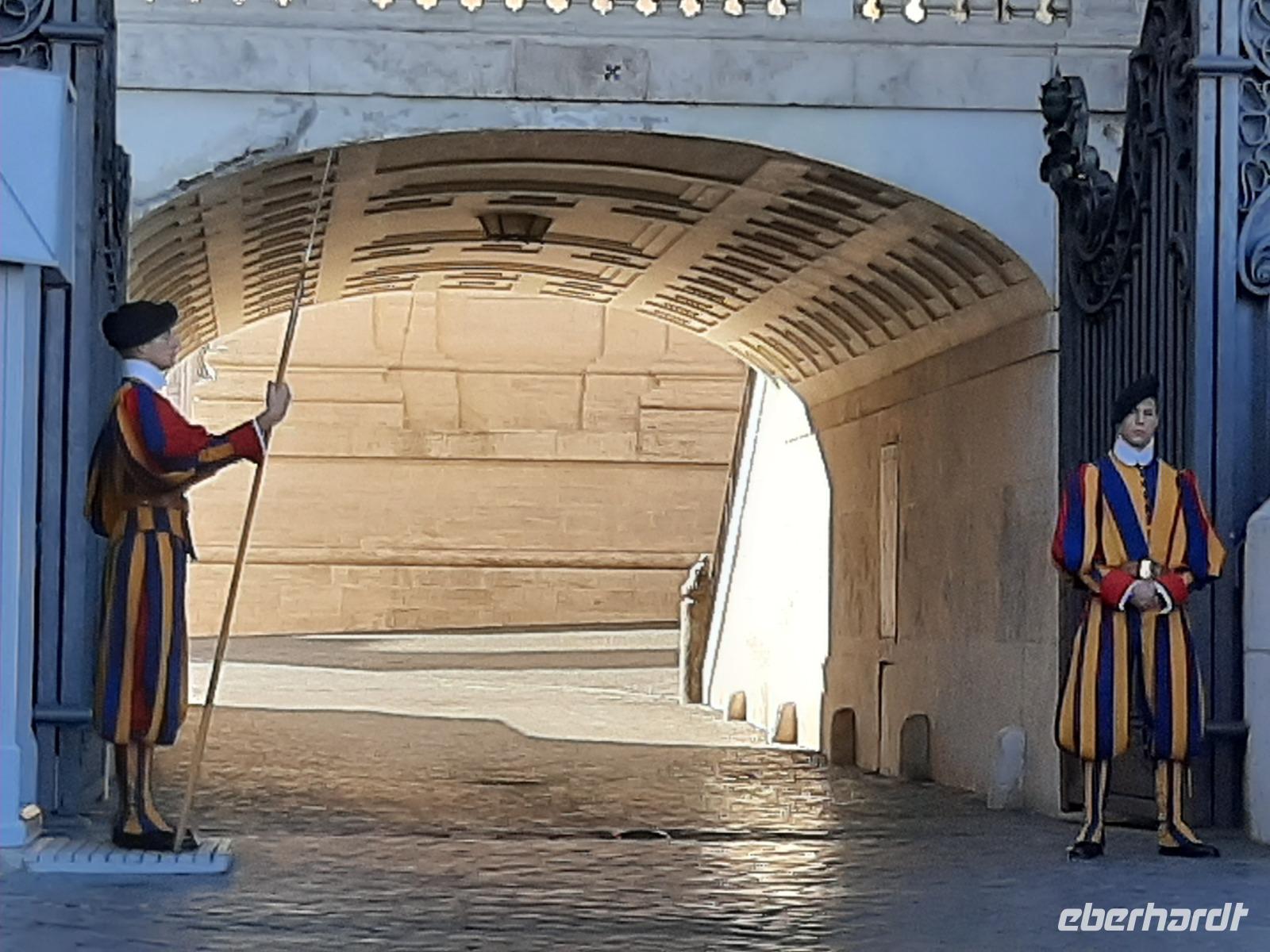 Heute können die Reisegäste wählen, ob sie den Tag ohne vorgegebenes Programm in Rom verbringen oder mit der Gruppe die Vatikanischen Gärten, die Vatikanischen Museen mit der Sixtinischen Kapelle als deren Höhepunkt und den Petersdom besichtigen möchten. Zwei Gäste waren schon im Vatikan und im Petersdom, alle anderen Gäste der Gruppe entscheiden sich für das fakultative Programm. Auch wählt die Mehrzahl der Gäste wie schon am Vortag den Fußweg Richtung Petersplatz, zwei Gäste fahren dorthin, und am Eingang zu den Vatikanischen Museen treffen wir uns. Im Besucherzentrum der Vatikanischen Museen durchlaufen wir die Sicherheitskontrollen, erhalten die Tickets und treffen unsere Gästeführerein für den ersten Teil, die Vatikanishen Gärten. Auch mit ihr, wie bisher schon mit Sylvia, sind wir über Audiogeräte, d.h. sie mit Mikrofon und wir mit Kopfhören ausgerüstet, verbunden, - die komfortable Art und Weise, Besichtigungen zu absolvieren. Der Besuch der Vatikanischen Gärten gehört zu den Besonderheiten dieser Reise „Rom intensiv". Man braucht hierfür ein besonderes Ticket, kann nicht einfach in diesem Bereich herumlaufen, sondern nur mit speziellem/r Gasteführer/in, und ohnehin geht das nur vormittags. Am Nachmittag ist der Bereich für Besucher nicht zugänglich. Umso mehr freuen wir uns über die Möglichkeit, hierhin, in den besonderen Teil des Vatikanterritoriums gelangen zu können. Unsere Gästeführerein erzählt uns während der Führung Wissenswertes und Interessantes über das Leben im Vatikanstaat, die Päpste, den emeritierrten und den amtierenden, über die Angestellten in lebendiger Art und Weise. Sie scheint sich gut auszukennen und lässt auch gerne ihre eigene Auffassung zu dem Einem oder Anderen durchblicken. Interessant und kurzweilig allemal, so dass die zweistündige Führung wie im Fluge vergeht. Unsere Mittagspause verbringen wir in der Cafeteria der Vatikanischen Museen, stärken uns, ruhen aus und sammeln Kräfte für die anschließende Besichtigung der Museen mit Sylvia. Die Museen des Vatikan beherbergen riesige Sammlungen, die im Verlaufe der Amtszeiten der verschiedenen Päpste immer umfangreicher wurden. Wir sehen Teile davon, bestaunen die doppelläufige Spiral-Treppe, von Giuseppe Momo gestaltet, gehen durch die Galerie der Kandelaber und der Landkarten, bewundern die Laokoon-Gruppe, eine Marmorkopie einer vermutlich um 200 v. Chr. entstandenen, nicht erhalten gebliebenen Bronzeplastik aus Pergamon. Die schier unendliche Zahl von Kunstwerken aus verschiedenen Kulturen sind kaum zu erfassen. Und die Spannung steigt noch, als wir uns der Sixtinischen Kapelle nähern. Die Sixtinische Kapelle (Cappella Sistina) ist der Ort, an dem das Konklave abgehalten wird, und beherbergt einige der berühmtesten Gemälde der Welt, so die berühmten Deckenmalereien von Michelangelo. Da man in der Kapelle leise sein muss - selbst den Gästeführern ist es untersagt, leise in ihr Mikrofon zu sprechen - hat uns Sylvia vor der Führung gründlich auf die Malereien in der Sistina vorbereitet. So stehen wir nun inmitten des geschichtsträchtigen Raumes und versuchen, das Gehörte nun auch zu erblicken. Eine ganz besondere Atmösphäre herrscht in diesem Raum, wie mag das erst zur Papstwahl sein?! Nach der Sixtinischen Kapelle gehen wir gleich zum Eingang des Petersdomes, ohne nochmals durch Kontrollen zu müssen. Die Größe des Domes ist absolut imponierend; die Größenvergleiche auf dem Fußboden, mit anderen Kirchen dieser Welt, veranschaulichen die Dimensionen. Gestern noch weilten wir zur Papstaudienz vor der Kirche, heute im Inneren des Domes wird die Bedeutung des Machtzentrums der Katholischen Kirche in Rom nach deutlicher und beeindruckender. Sylvia führt uns durch den Dom und weist auf Bedeutendes hin. Haben wir heute auch schon viele Kunstgegenstände in den Museen gesehen und bewundert, macht uns die hinter Glas befindliche Pieta von Michelangelo ergriffen. Auch die Kuppel ds Doms ist einmalig und macht neugierig auf den Blick von oben nach unten. Wie mag das wohl sein? Anschließend, nach Beendigung des offiziellen Besichtigungsprogramm, fahren etliche Gäste hoch hinauf in die Kuppel und erklimmen die verbleibenden Stufen bis zur Aussichtsplattform draußen. Später befinden sie, es habe sich auf alle Fälle gelohnt und freuen sich, die Gelegenheit der Stunde genutzt zu haben. Ab Nachmittag verbringen die Gäste die verbliebene Zeit des Tages individuell, essen zu Abend und kehren zum Hotel zurück.