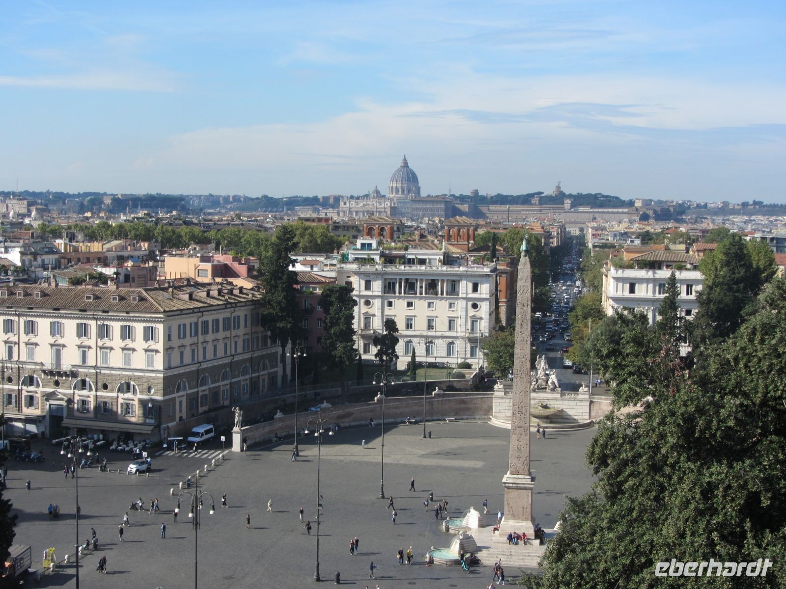 Auch die Fahrt zur Piazza del Popolo an nächsten Morgen lässt uns hautnah miterleben, wie sich die Römer und Römerinnen durch ihre Stadt bewegen. Eingezwängt wie Sardinen in die Waggons der Metro. In Rom gibt es drei Metrolinien, die durch die Stadt führen, wobei die Linie C derzeit noch im Bau ist. Die beiden Hauptlinien A und B kreuzen sich x-förmig im Zentrum und diese nutzen wir. Um in eine der Bahnen zu kommen sind Schieben, Drücken und Drängeln und Einsatz der Ellenbogen angesagt, das Festhalten der Handtasche und Rucksäcke nicht vergessen. An jeder Haltestelle heißt es Aufpassen, dass man nicht mit den Aussteigenden hinausgespült wird. Nach vier Stationen heißt es aufatmen.