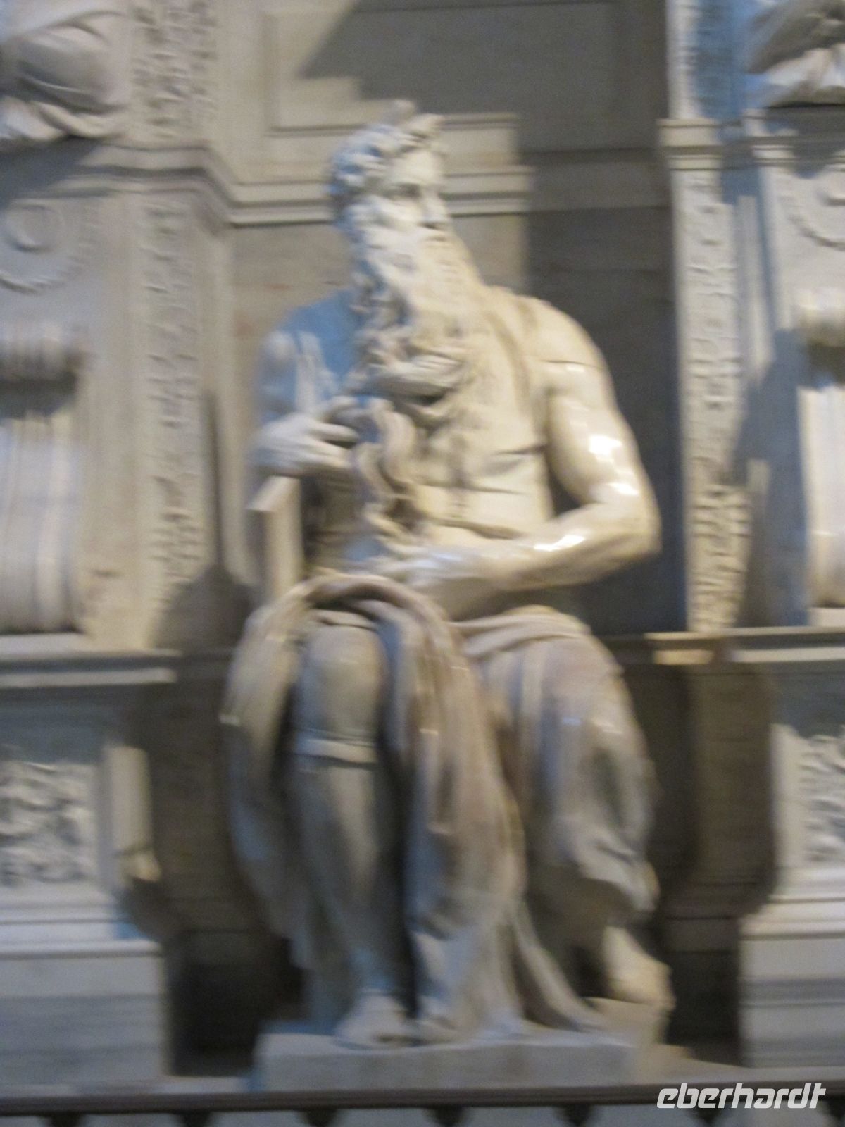 Mit einem Abstecher zur Kirche San Pietro in Vincoli beginnen wir die weitere Erkundung Roms. In dieser Kirche werden die Ketten aufbewahrt, mit denen Petrus gefesselt gewesen sein soll, daher rührt der Name- in vincoli bedeutet in Ketten. Vor allem aber steht dort die wunderbare Statue des Moses von Michelangelo, die für das Grabmal des Papstes Julius II. gefertigt wurde. Es ist eine der sicherlich wunderbarsten Skulpturen von Michelangelo, vor der er der Legende nach selbst gekniet haben soll und sie zum Sprechen aufforderte, so lebensecht war sie ihm gelungen.