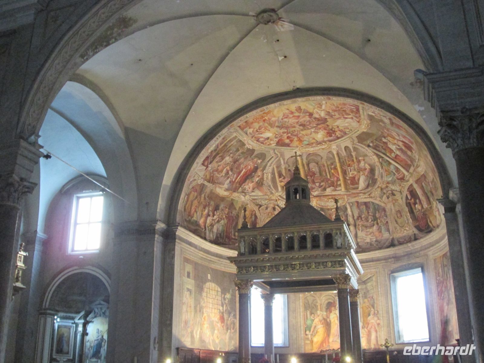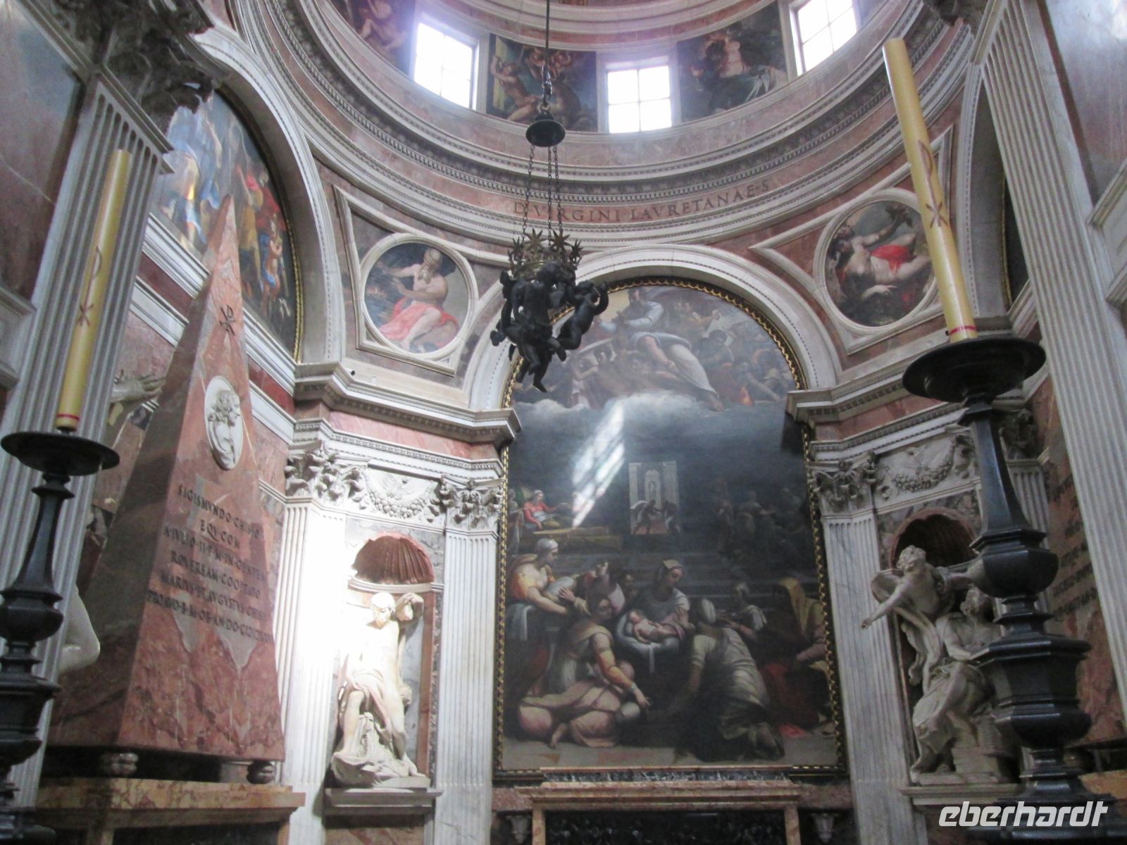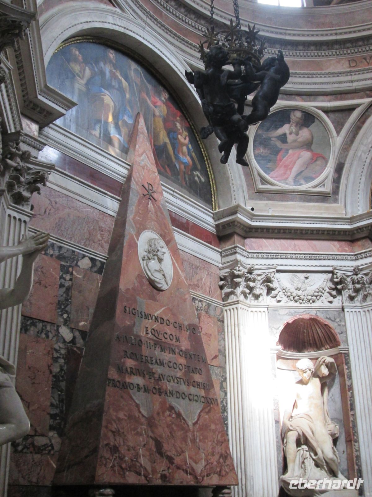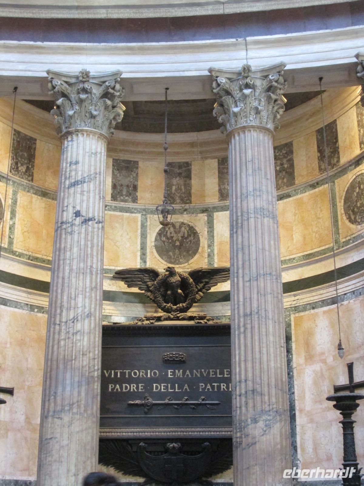 Mit dem Hadrianeum und dem gewaltigen Pantheon befanden wir uns in die antike Zeit zurück versetzt. Wieder einmal wurde bestaunt, was man vor etwa 2100 Jahren erschaffen hatte. Und was heute noch existiert! Das Pantheon wurde als "Tempel aller Gottheiten" im Jahre 27 vor Christus erbaut, oft verändert, und heute präsentiert es sich uns als Kirche mit Gräbern bekannter Persönlichkeiten, z.B. die der beiden italienischen Könige Vittorio Emanuele II. und Umberto I. sowie des Malers Raffaello Sanzio, besser bekannt als Raffael. Ihn kennt wohl jedermann aufgrund eines seiner Meisterwerke, der "Sixtinischen Madonna", heute in Dresden. Diesem Maler und Architekten sollten wir am Folgetag in den großartigen Vatikanischen Museen, wo er auch z.B. die Stanzen, die Gemächer für Papst Julis II. ausgeschmückt hat, wieder begegnen. Das sicher Prachtvollste am Pantheon ist aber die Kuppel mit ihrer mittigen Öffnung und ihrem Durchmesser von insgesamt 43 Metern. Diese Kuppel war Vorbild z.B. für Filippo Brunelleschi, den Erbauer der Kuppel der Kathedrale Santa Maria del Fiore in Florenz.
