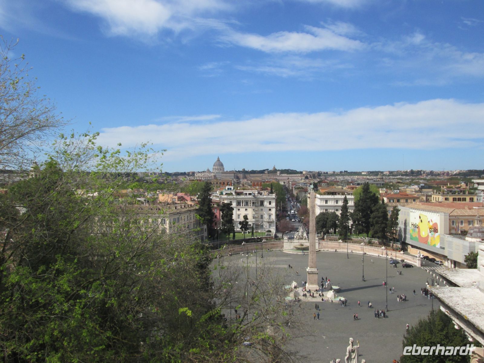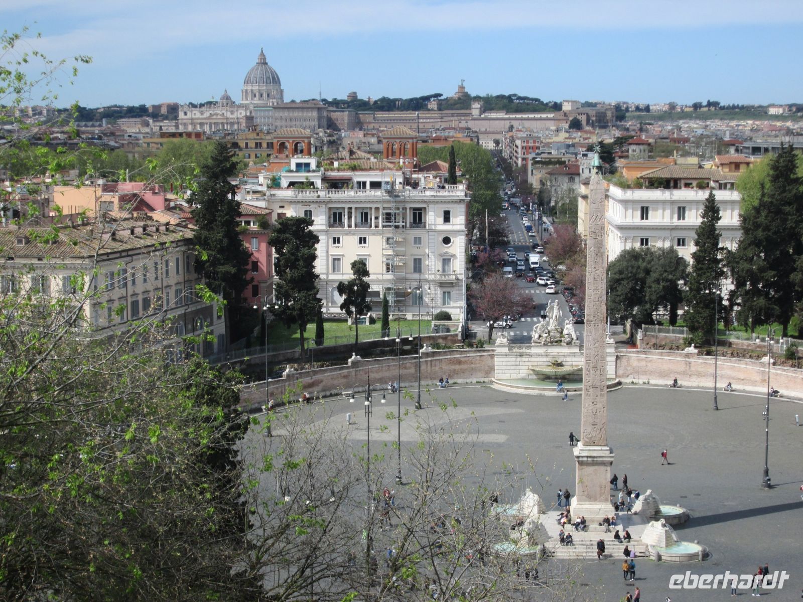 Dieser große Platz, gerahmt von 2 Kirchen Richtung Zentrum, dem Popolo-Stadttor mit der naheliegenden Kirche Santa Maria del Popolo und dem Pincio-Hügel, bildete schon früher ein wichtiges Eingangstor in die Stadt. So kamen auch wir auf diesen herrlichen Platz und begrüßten unsere charmante Stadtführerin Sylvia. Mit ihr sollten wir in den nächsten Tagen die Stadt näher kennenlernen.
