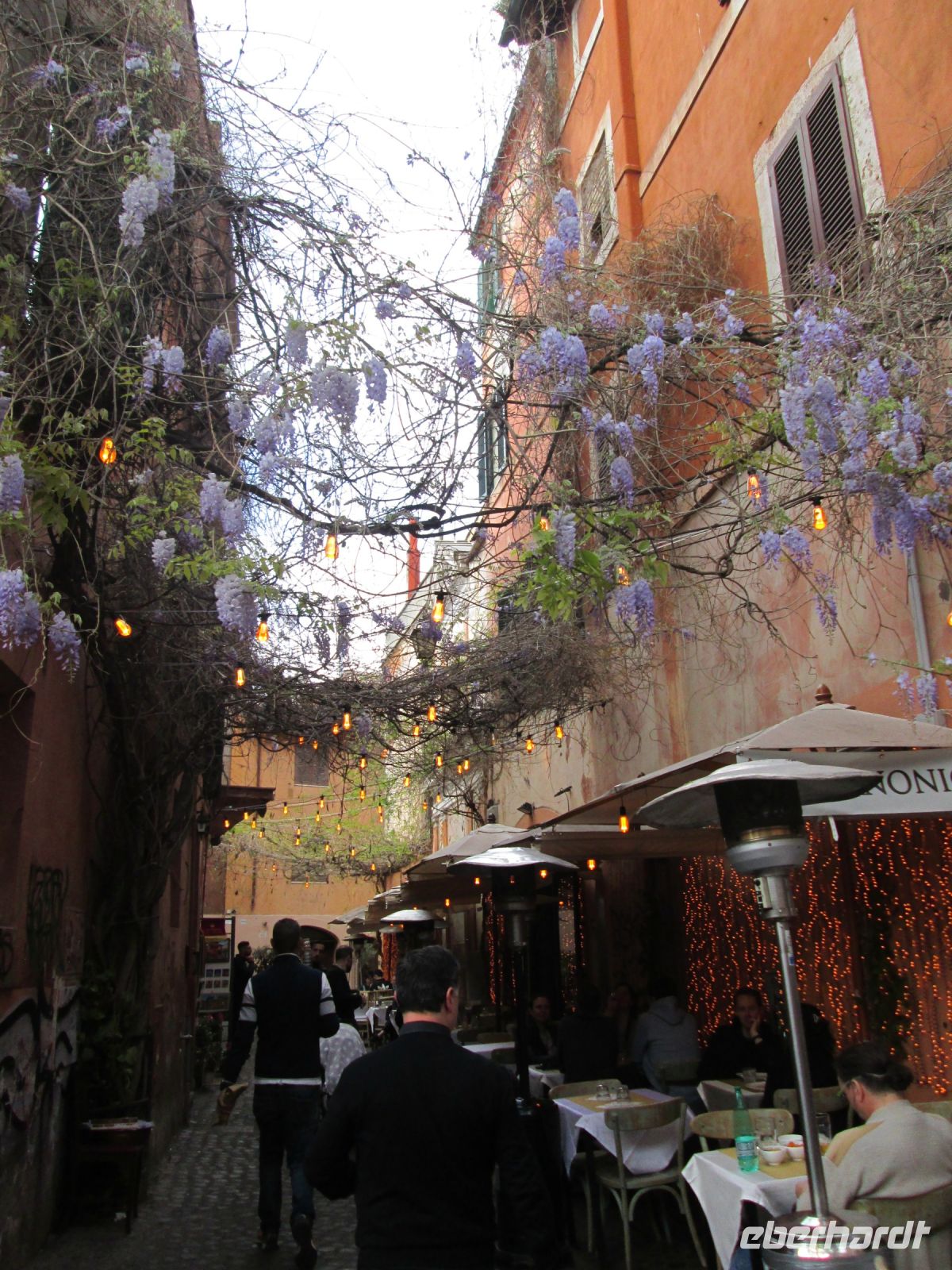 Unseren Spaziergang in Rom rundete ein Aufenthalt im Stadtteil Trastevere ab. Auf der anderen Tiber-Seite befinden sich eine der ältesten Marienkirchen der Stadt, viele verschlungene Gässchen und eine Menge uriger Lokale und Restaurants.
