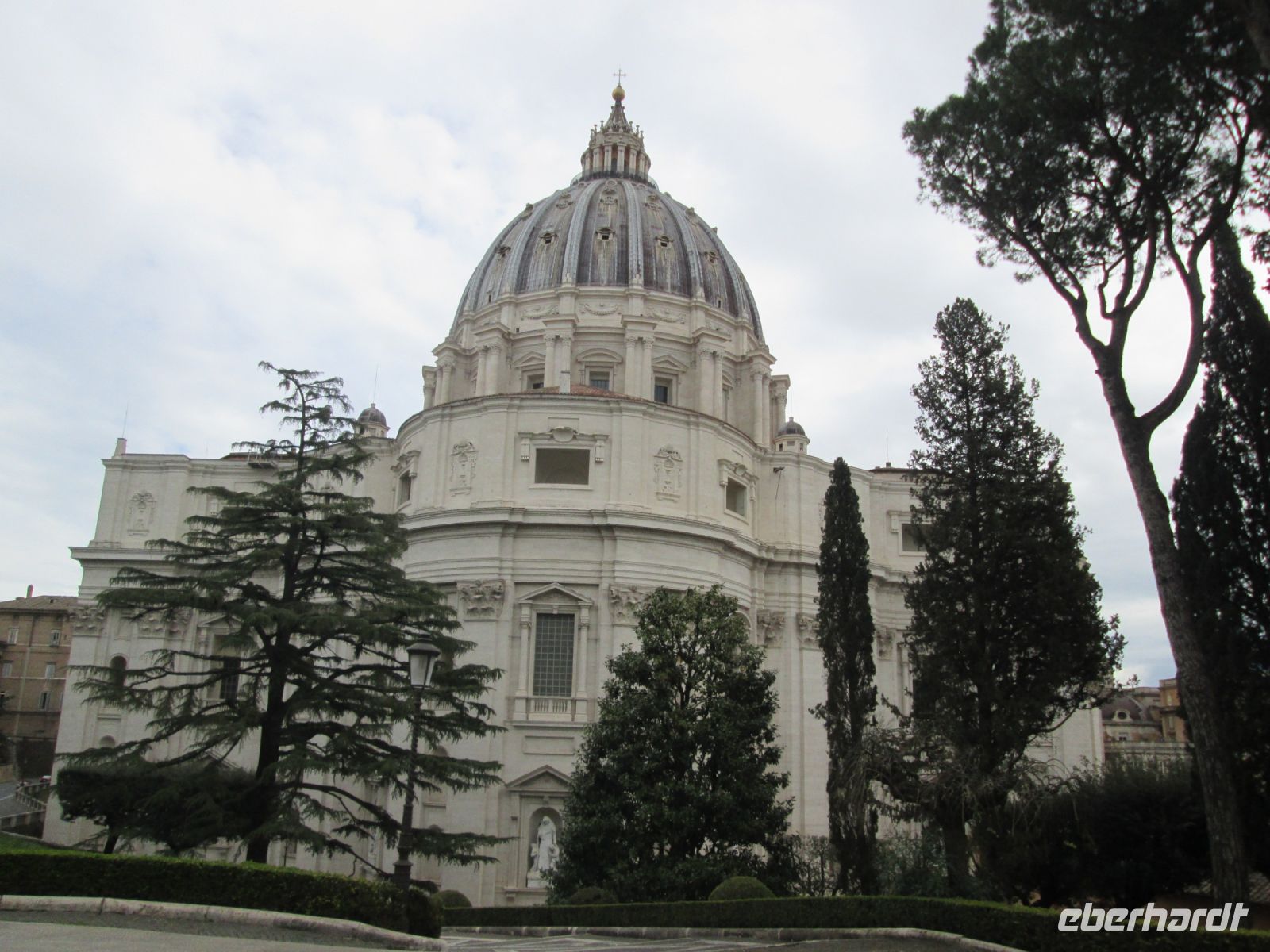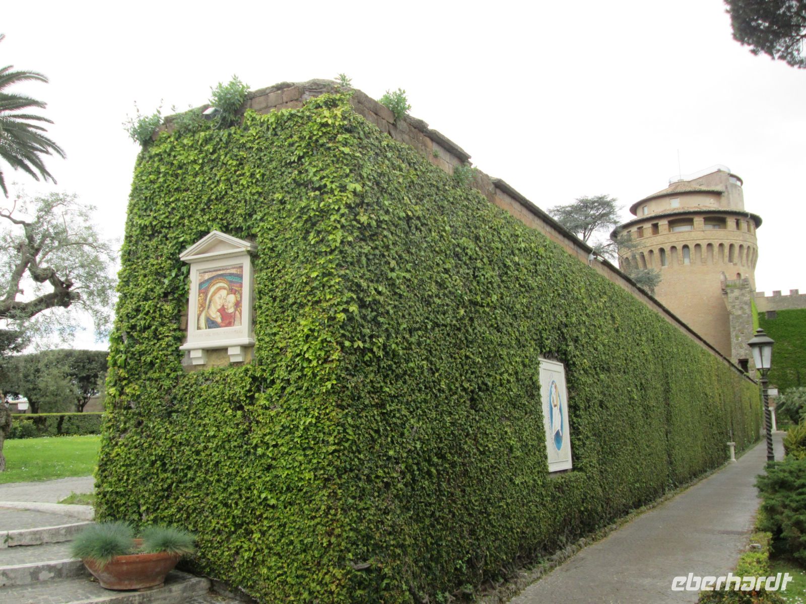 Der Vatikan stand auf unserem Programm. Der kleinste Staat der Welt mit seinen 44 Hektar verfügt innerhalb dieser Fläche über einen Bahnhof, einen Hubschrauberlandeplatz, verschiedene Paläste und Wohneinheiten, einer Akademie, 2 Türmen, den Petersplatz mit dem Dom und den Gärten. Durch diese fuhren wir dieses Mal mit einem Kleinbus. Grotten, Wasserspiele, Bäume, Hecken, Steingärten, Mauern und Brunnen bilden ein herrliches Miteinander, in das man gern eintaucht , die Ruhe genießt und somit der Hektik und dem Lärm der Tibermetropole entflieht .