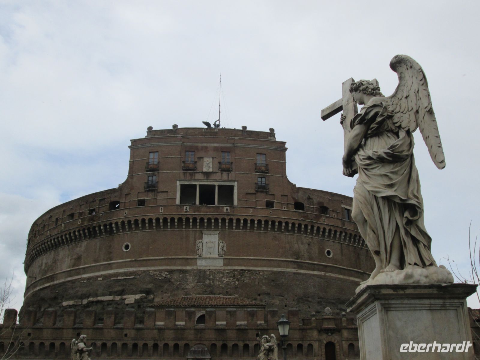Der Besuch der Engelsburg stand auf dem weiteren Programm. Einst Grabmal für Kaiser Hadrian, später Papstresidenz und auch Gefängnis, ist es heute ein restauriertes Monument mit 5 Etagen. Den oberen Abschluss bildet eine Bronzestatue des Erzengels Michael, von dem das Gebäude schließlich den Namen hat.
