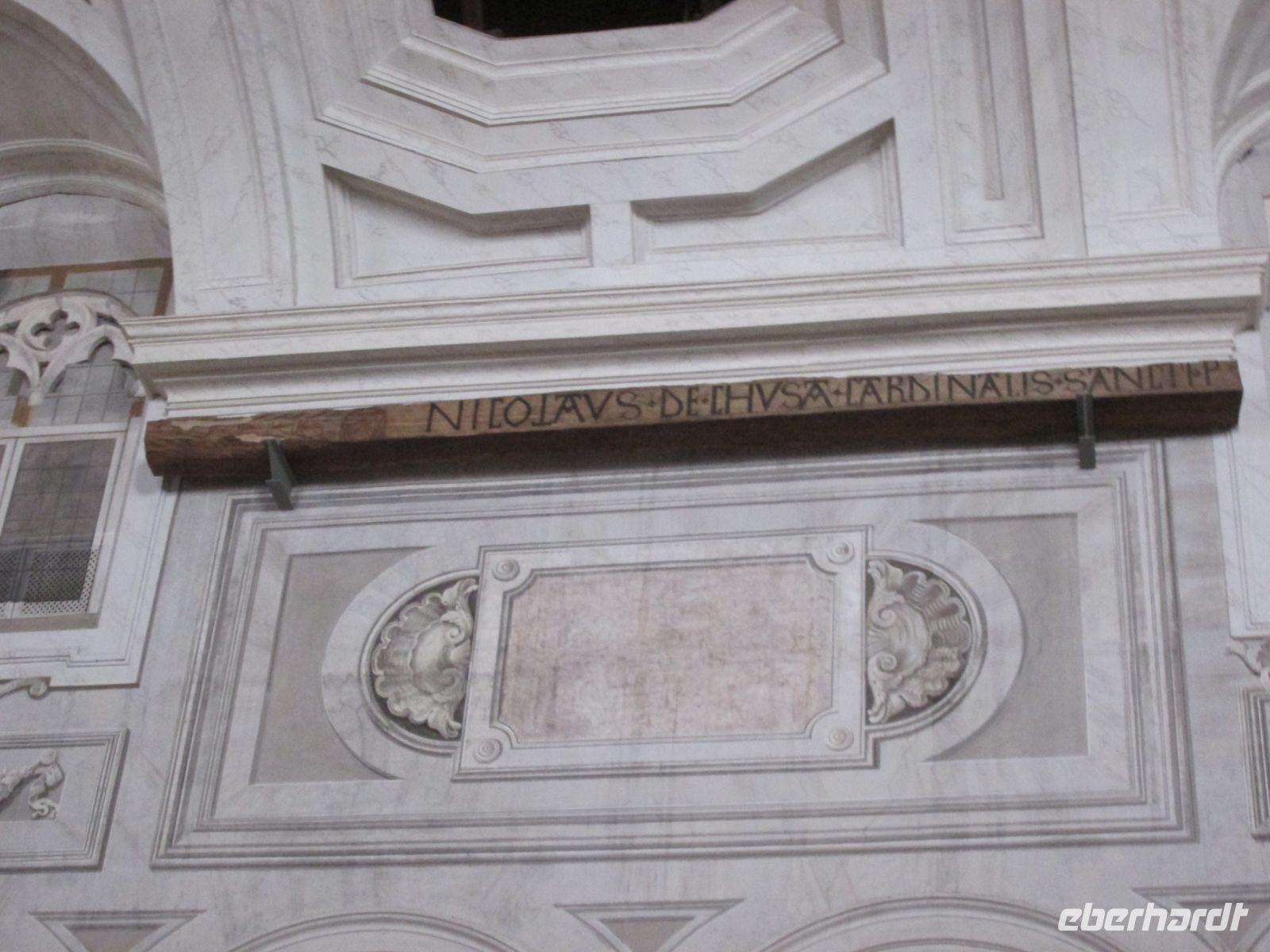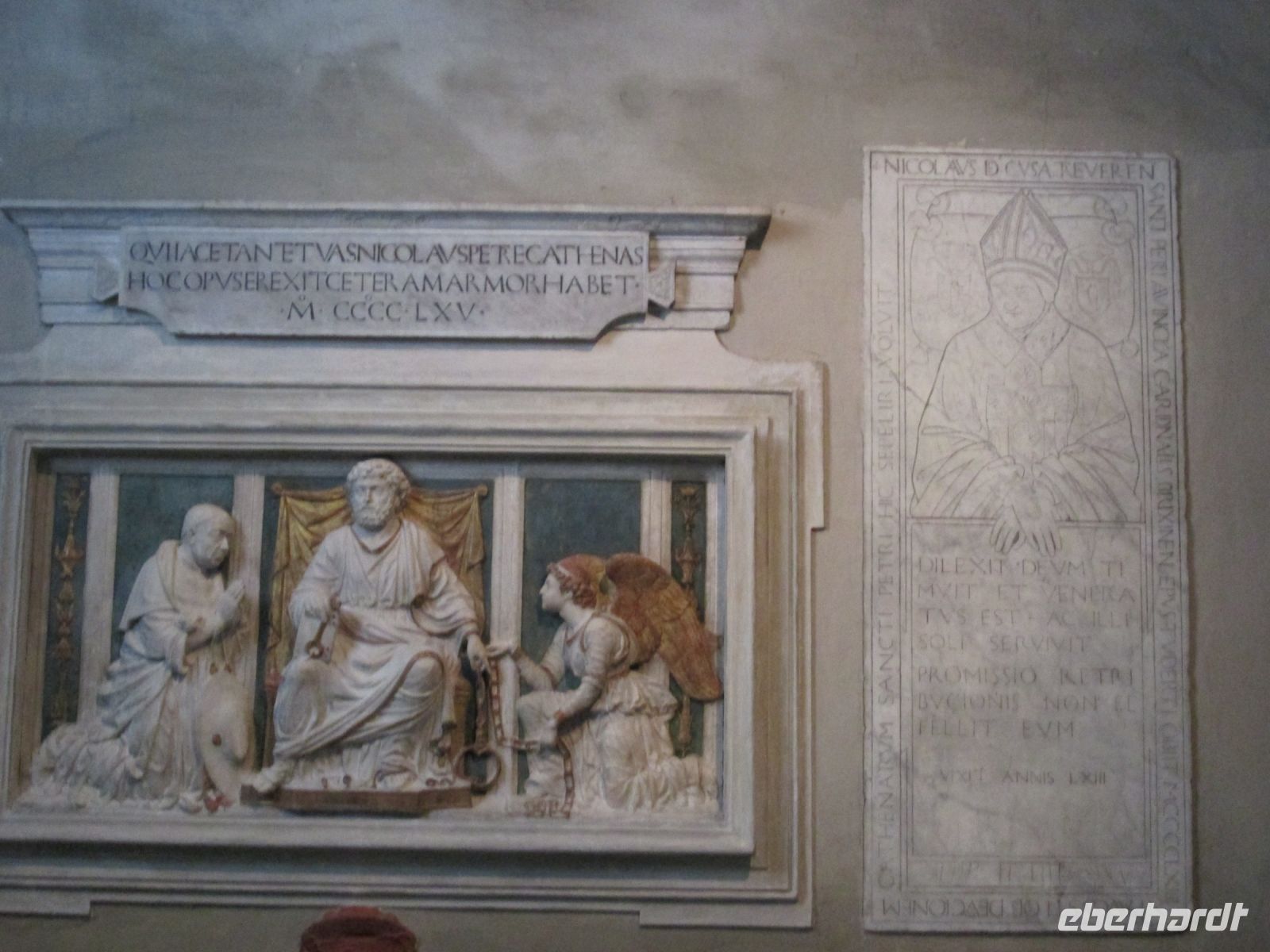 Das Grab eines Deutschen finden wir auch in der Kirche: Nikolaus von Kues. Der in Bernkastel-Kues Geborene war Kardinal , Theologe und Philosoph.