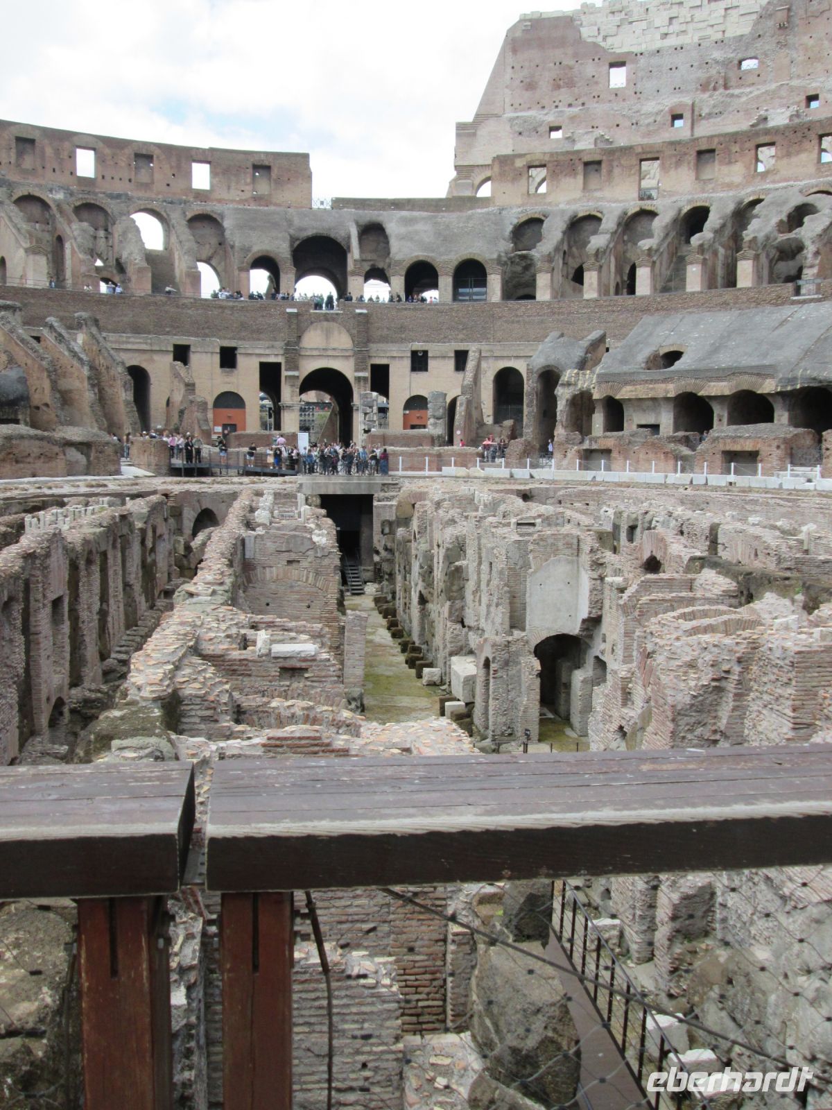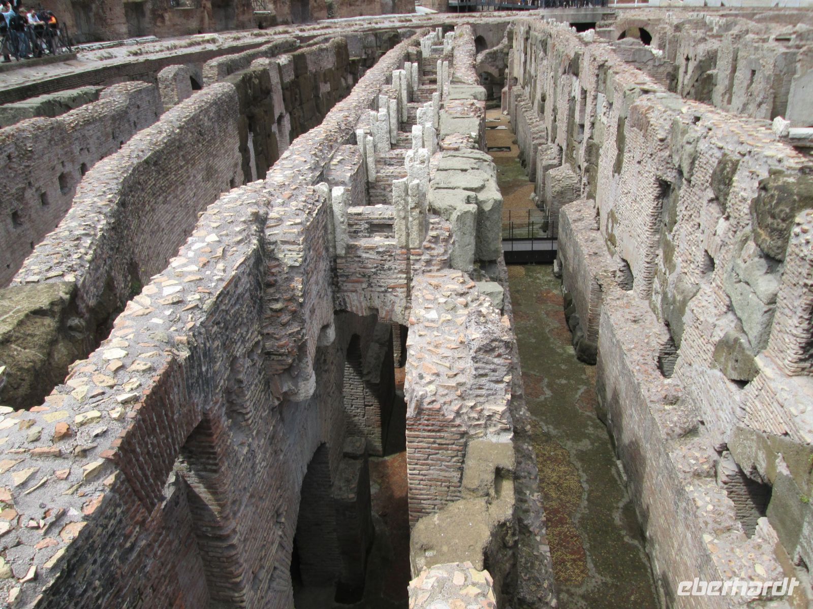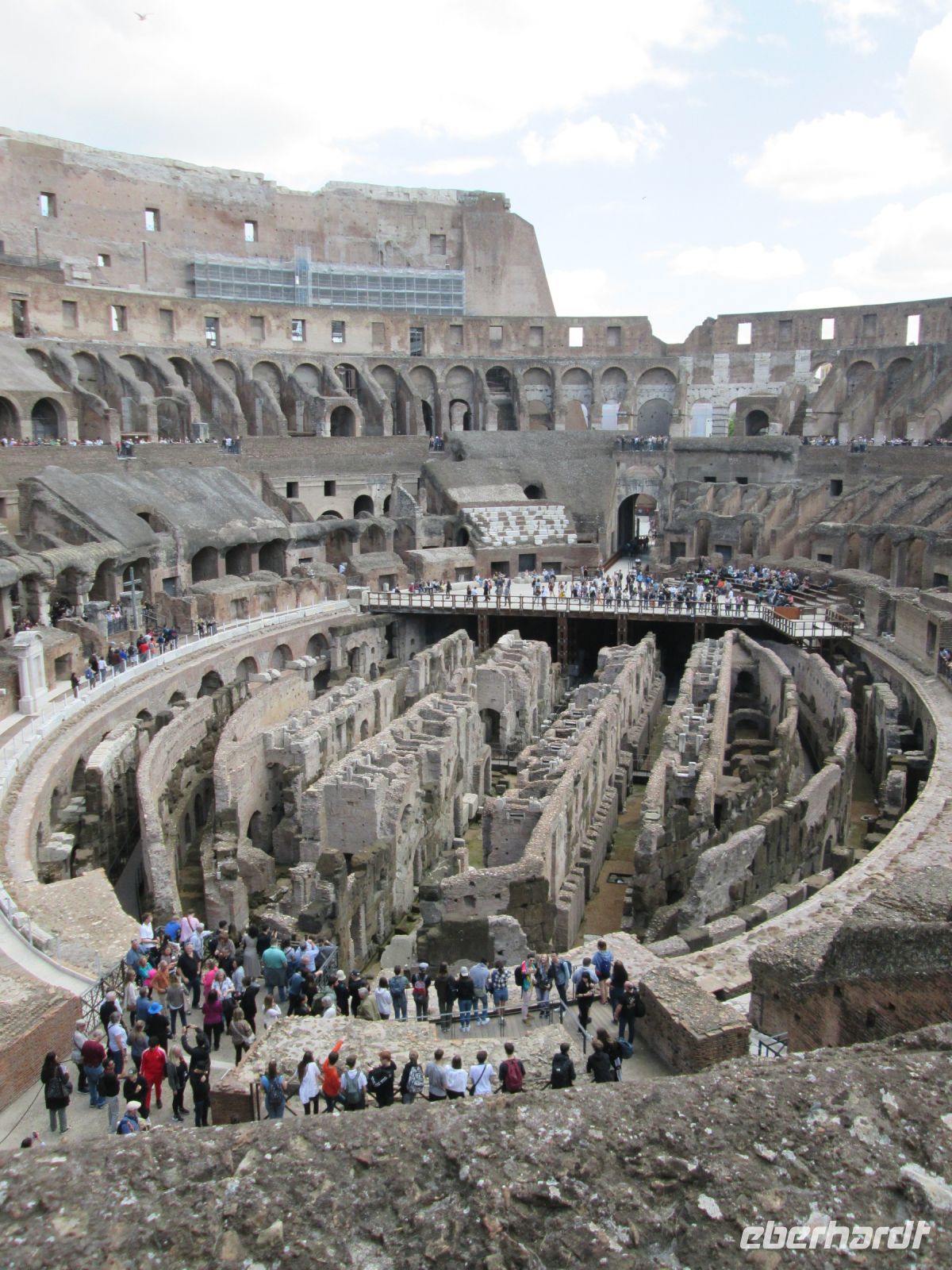 Das flavische Amphitheater, besser bekannt als Kolosseum, wurde nach kurzer Bauzeit im Jahre 80 eröffnet. Panem et Circenses, mit Brot und Spielen sollte fortan in diesem Bauwerk das Volk von Rom unterhalten werden. Bis zu ca. 60000 Zuschauer, die Schätzungen gehen weit auseinander, konnten Tierhetzen und Gladiatorenkämpfen, vielleicht auch Seeschlachten, beiwohnen.
