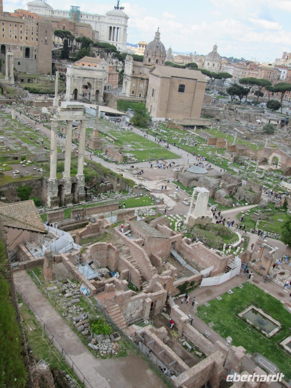 Dem Kolosseum gegenüber erhält der Rom-Besucher in dem Forum Romanum einen sehr umfangreichen geschichtlichen und architektonischen Überblick und Einblick in Kultverehrung, Lebensweise, Glaube, Machtdemonstration, Rechtsprechung und Politik in der Antike. Da das Forum z.T. als Steinbruch verwendet und auch zugeschüttet wurde, erlebte unser weitgereister Johann Wolfgang Goethe auf seinen Italienreisen das Forum ganz anders als wir heute .