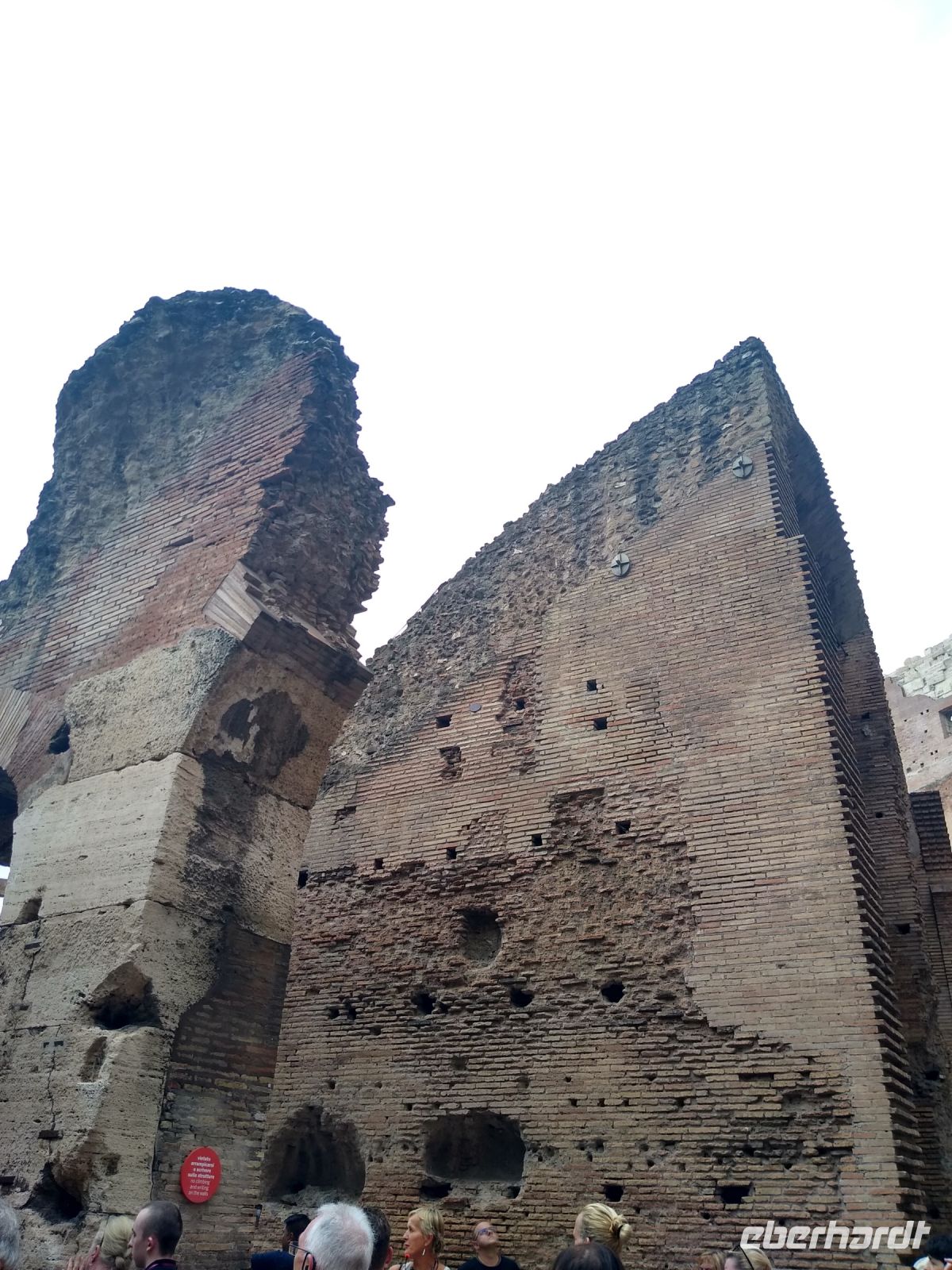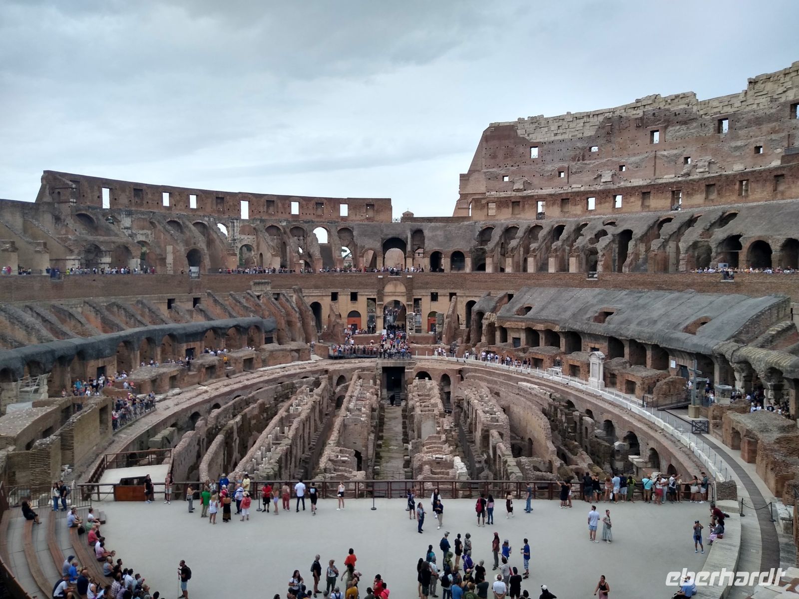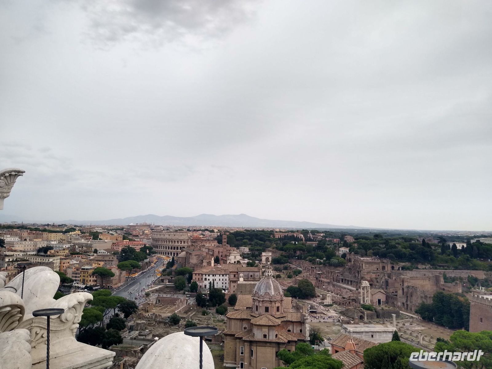 Draußen war es noch dunkel als ich mich mit einigen Eberhardt Gästen 6 Uhr früh am Flughafen Dresden traf. Nach einem schnellen Check-in und einer noch schnelleren Sicherheitskontrolle führten wir die ersten Gespräche und lernten uns kennen. Mit einem etwas verspäteten Flug ging es dann nach Frankfurt. Konnten wir beim Abflug in Dresden noch Bilder mit blauen Himmel machen war es bei der Landung in Frankfurt schon etwas bewölkter. In Frankfurt trafen wir auf vier weitere Gäste die bereits aus Leipzig und Stuttgart angereist waren. Mit 10 Gästen ging es dann weiter nach Rom. Nach circa 100 Minuten landeten wir am Flughafen Leonardo da Vinci in der kleinen Stadt Fiumicino, 30 Kilometer von Rom entfernt. Nach langem Warten und Bangen auf unsere Koffer fuhren wir mit Vans in die Hauptstadt Italiens, vorbei an den ersten Sehenswürdigkeiten wie Circus Maximus und der Basilika Santa Maria Maggiore. Im unserem Hotel Monti Palace angekommen konnten wir direkt unsere Zimmer beziehen und eine kleine Pause zur Erholung einlegen. Eine Stunde später trafen wir uns wieder und machten uns auf den Weg zum Kolosseum.