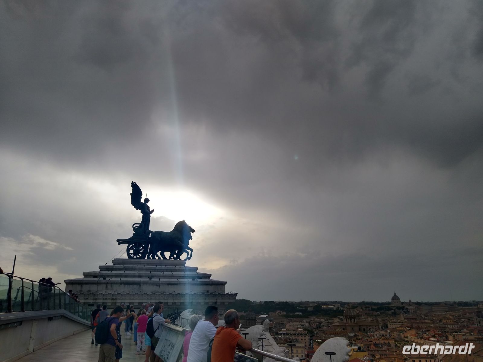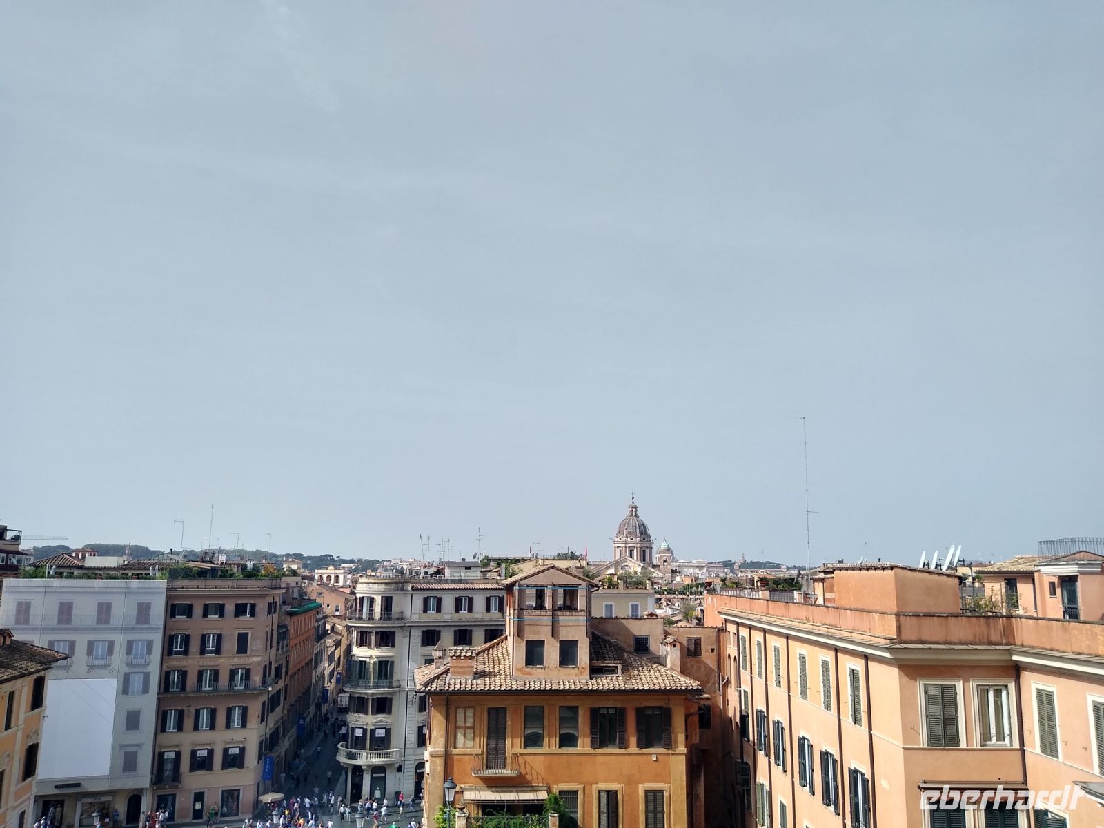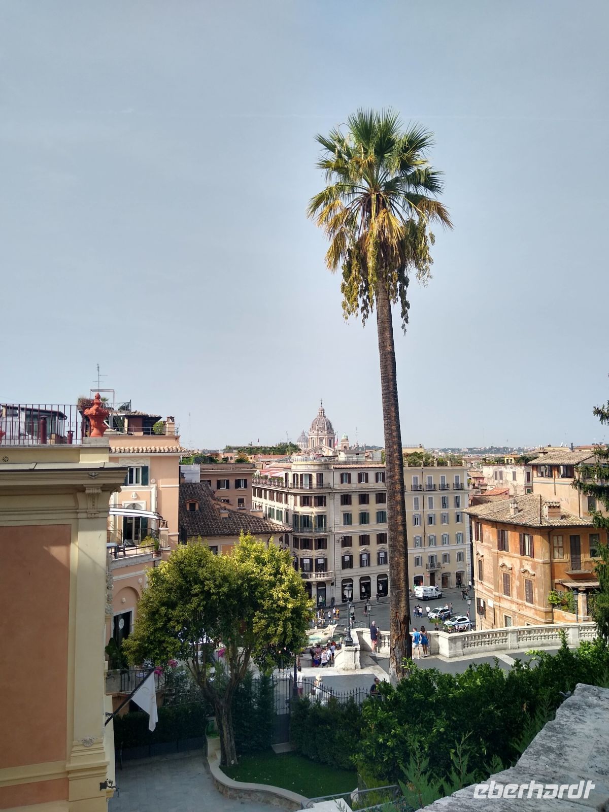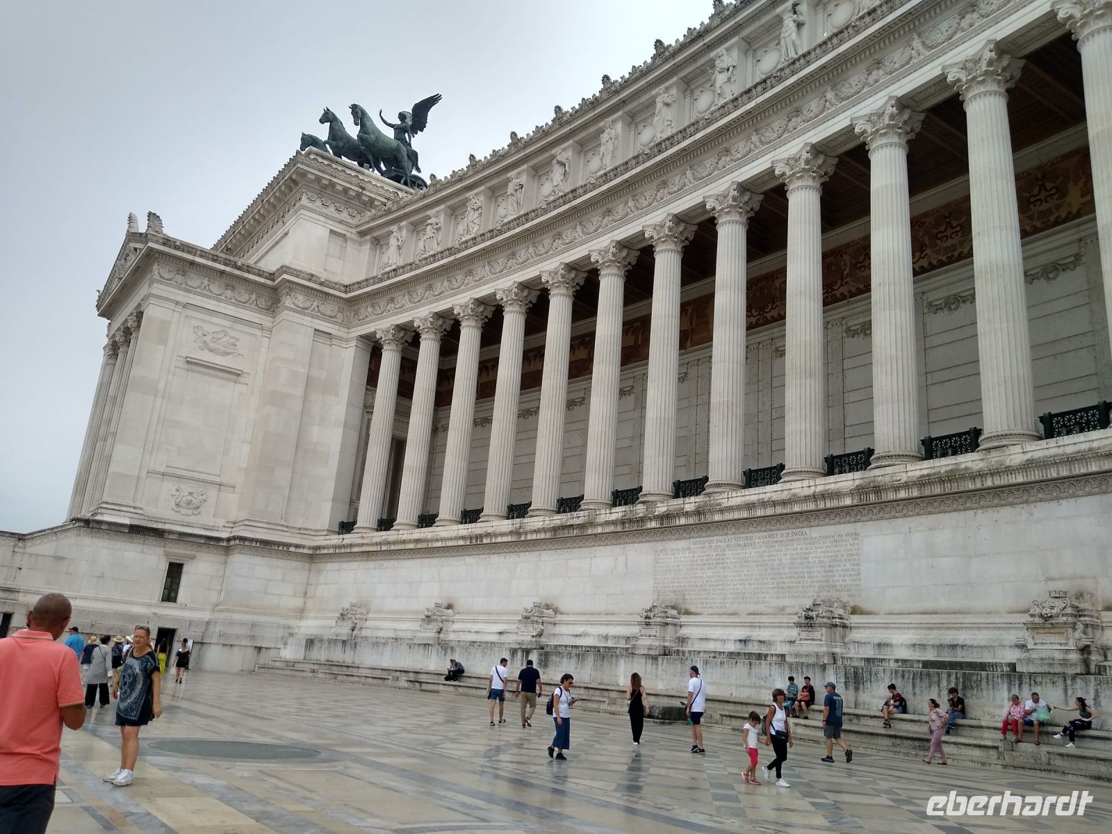 Heute begrüßten wir nach dem Frühstück unsere Stadtführerin im Hotel. Sylvia wird uns die nächsten Tage Ihre Wahlheimat Rom mit all seinen Highlights zeigen. Ausgestattet mit dem Eberhardt-Hörfunk starteten wir auch schon mit der Stadtführung. Von unserem Hotel, das Monti Palace, ging es zur nah gelegenen Metrostation Cavour und nach drei Stationen und einmal umsteigen standen wir bereits vor einem Teil der aus dem 3. Jahrhundert erbauten Stadtmauer. Durch das Popolo-Stadttor ging es zum Piazza del Popolo, einer der berühmtesten Plätze Roms. Dieser große Platz wird gerahmt von den Zwillingskirchen Santa Maria di Montesanto und Santa Maria dei Miracoli. Die Planung übernahem die prominenten Architekten Carlo Rainaldi, Carlo Fontana und Gian Lorenzo Bernini. Davor, in der Mitte des Piazza del Popolo, sieht man einen von 13 Obelisken die es in Rom gibt. Wie Sylvia uns später erzählt gibt es davon in Rom nur 7 echte mit Hieroglyphen, die anderen 6 sind nur Kopien die die Römer anfertigen ließen. Unser Weg führte uns weiter durch kleine niedliche Gassen und wir sahen auf der Straße der Künstler nicht nur eine 200 Jahre alten Magnolie, sondern auch das Haus von Federico Fellini, der ein bekannter italiensicherer Filmregisseur war. Nach einer kurzen Trinkpause an einem Brunnen, die hier in Rom als Wasserspender dienen und eine hervorragende Wasserqualität haben, ging es weiter zur Spanischen Treppe. Die Spanische Treppe hat ihren Namen eigentlich nur bekommen da sie neben der Spanischen Botschaft liegt, den eigentlich hatte ein französischer Kardinal das Geld für die Treppe gespendet. Sylvia gab uns 20 Minuten Zeit für eine Pause um Bilder zu machen und die Umgebung alleine etwas zu erkunden. Einige Eberhardt Gäste entscheiden sich die 136 Stufen der Spanischen Treppe zu erklimmen und wurden mit einem atemberaubenden Blick auf die Stadt und die französische Kirche Santa Trinità dei Monti belohnt. Die anderen genossen ihr erstes echtes italienisches Gelato und begutachteten die Schaufenster vieler hochwertiger Marken wie PRADA und DIOR. Vorbei an zahlreichen Kirchen, denn die gibt es in Rom an jeder Ecke, ging es für uns zum Trevi-Brunnen. In den Trevi-Brunnen werden täglich 3000 Euro geworfen, denn wie eine Legende besagt wird man nach Rom zurückkehren, wenn man mit der rechten Hand eine Münze über die linke Schulter wirft. Wir konnten dieser Legende leider nicht nachgehen, denn der Trevi-Brunnen wurde zum Montagmorgen noch gereinigt. Weiter ging unsere Führung zur Marc Aurel Säule, diese liegt direkt neben dem Regierungsgebäude. Die Säule die aus verschiedenen Zylindern zusammengebaut wurde zeigt viele verschiedene Schlachtszenen. Obenauf sehen wir nicht die Statue von Marc Aurel, sondern die Statue von Paulus, einer der zwei Schutzpatronen Roms. Da wir schon einige Kilometer bei 30 Grad zurückgelegt hatten entschieden wir uns für eine kleine Pause. In einer kleinen Trattoria nahe des Pantheons haben wir uns Pizza, Pasta und frische Salate schmecken lassen. Gestärkt ging es für uns dann in den Tempel aller Götter, das Pantheon. Dieses antike Bauwerk wurde 126 n. Chr von Kaiser Hadrian eingeweiht und ist seit 609 eine römisch-katholische Kirche mit den offiziellen Namen Santa Maria ad Martyres. Bei einer Innenbesichtigung zeigt uns Sylvia die Grabstätte der ehemaligen Könige Viktor Emanuel II und Umberto I. Auch die Königin Margherita, welche die Namensgeberin für die Pizza Margherita ist, liegt dort begraben. Das atemberaubendste ist jedoch die Kuppel mit einer großen nicht verglasten Öffnung, diese dient innen als einzige Lichtquelle. Auf unseren weiteren Weg durch die Innenstadt Roms ging es vorbei am Schneider des Papstes. Selbst Kardinäle aus anderen Ländern kommen nach Rom um sich hier Ihre Kleidung zu kaufen. Vorbei am Senat Italiens kommen wir auf die Piazza Navona. In dieser ehemaligen Steinarena haben die Römer die Olympischen Spiele der Griechen nachgestellt. Heute ist der Platz gerahmt von vielen Restaurants, Museen und Straßenkünstler. Unser letztes Ziel für heute ist der Campo de Fiori und die Villa Farnese, war es früher die Stadtresidenz der Familie Farnese ist es heute das Zuhause der französischen Botschaft. Mit vielen neuen Eindrücken beendeten wir unseren Stadtrundgang und genossen ein kaltes Erfrischungsgetränk. Da sich bei den meisten die 9 Kilometer bemerkbar machten und die Füße zu schmerzen beginnen, entschieden wir uns mit dem Bus zum Hotel zu fahren während andere noch individuell durch die Stadt spaziert sind. Am Abend genoss jeder individuell ein schönes Abendessen.