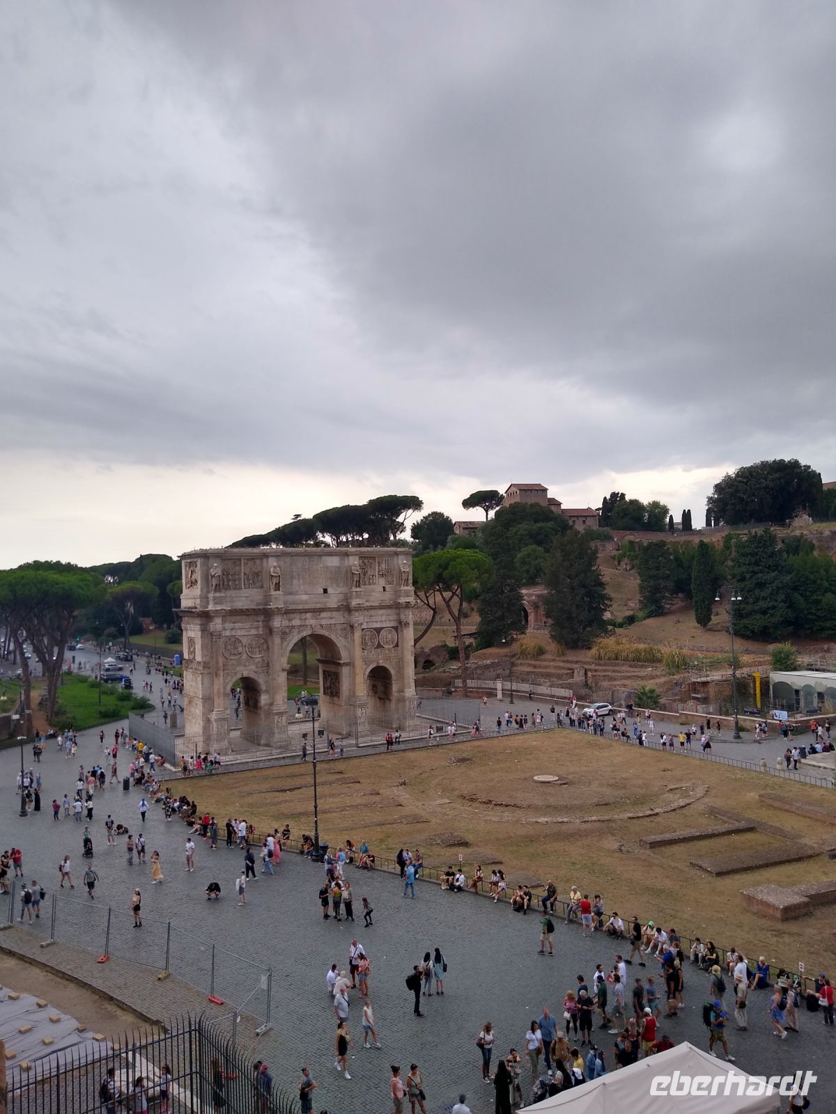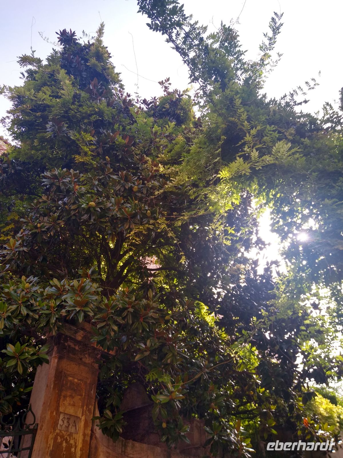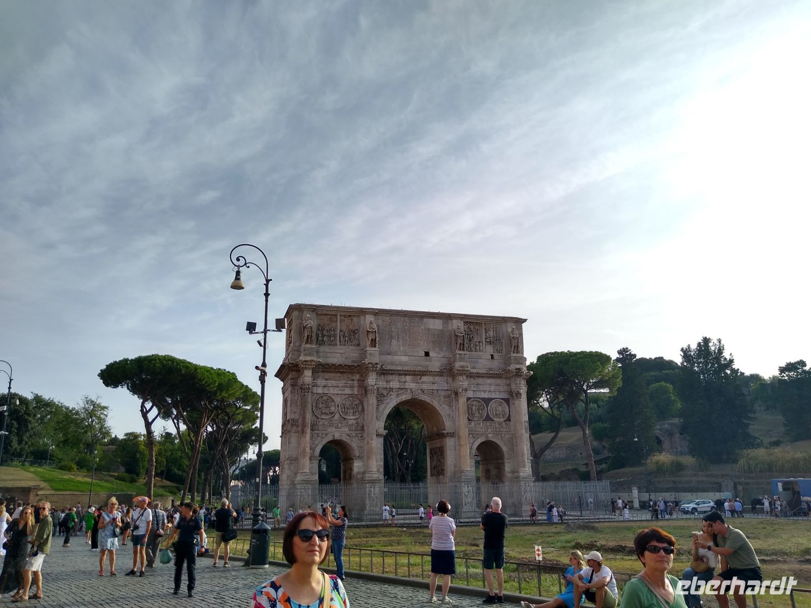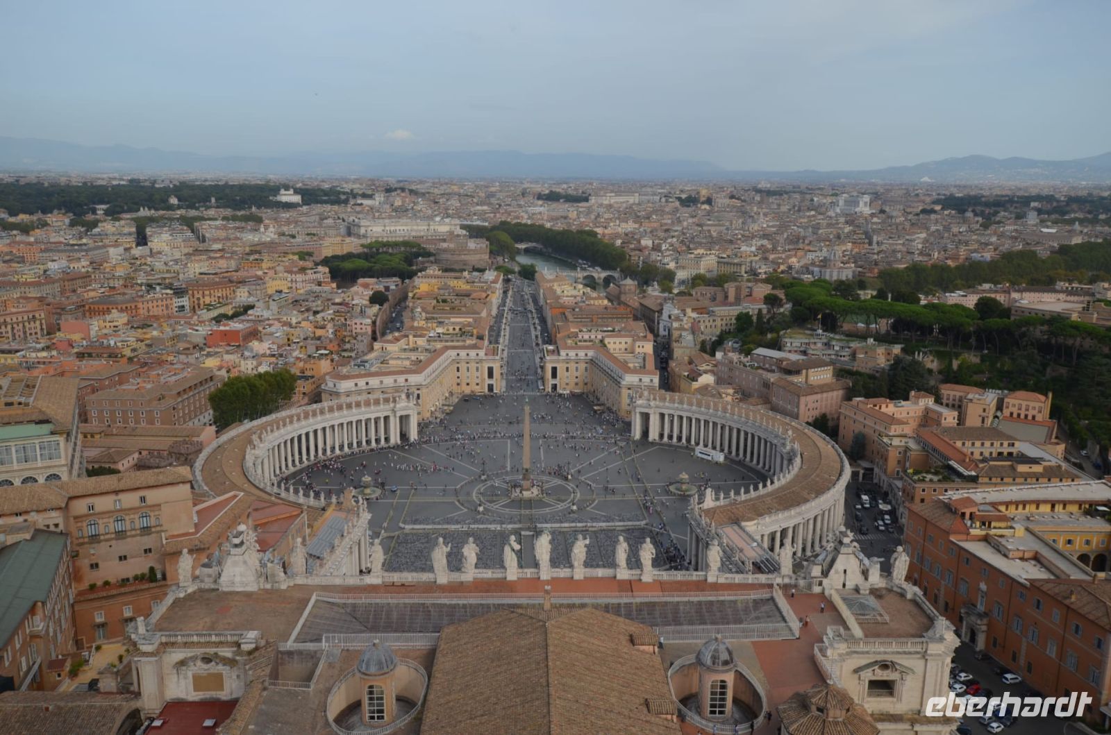 Heute begrüßten wir nach dem Frühstück unsere Stadtführerin im Hotel. Sylvia wird uns die nächsten Tage Ihre Wahlheimat Rom mit all seinen Highlights zeigen. Ausgestattet mit dem Eberhardt-Hörfunk starteten wir auch schon mit der Stadtführung. Von unserem Hotel, das Monti Palace, ging es zur nah gelegenen Metrostation Cavour und nach drei Stationen und einmal umsteigen standen wir bereits vor einem Teil der aus dem 3. Jahrhundert erbauten Stadtmauer. Durch das Popolo-Stadttor ging es zum Piazza del Popolo, einer der berühmtesten Plätze Roms. Dieser große Platz wird gerahmt von den Zwillingskirchen Santa Maria di Montesanto und Santa Maria dei Miracoli. Die Planung übernahem die prominenten Architekten Carlo Rainaldi, Carlo Fontana und Gian Lorenzo Bernini. Davor, in der Mitte des Piazza del Popolo, sieht man einen von 13 Obelisken die es in Rom gibt. Wie Sylvia uns später erzählt gibt es davon in Rom nur 7 echte mit Hieroglyphen, die anderen 6 sind nur Kopien die die Römer anfertigen ließen. Unser Weg führte uns weiter durch kleine niedliche Gassen und wir sahen auf der Straße der Künstler nicht nur eine 200 Jahre alten Magnolie, sondern auch das Haus von Federico Fellini, der ein bekannter italiensicherer Filmregisseur war. Nach einer kurzen Trinkpause an einem Brunnen, die hier in Rom als Wasserspender dienen und eine hervorragende Wasserqualität haben, ging es weiter zur Spanischen Treppe. Die Spanische Treppe hat ihren Namen eigentlich nur bekommen da sie neben der Spanischen Botschaft liegt, den eigentlich hatte ein französischer Kardinal das Geld für die Treppe gespendet. Sylvia gab uns 20 Minuten Zeit für eine Pause um Bilder zu machen und die Umgebung alleine etwas zu erkunden. Einige Eberhardt Gäste entscheiden sich die 136 Stufen der Spanischen Treppe zu erklimmen und wurden mit einem atemberaubenden Blick auf die Stadt und die französische Kirche Santa Trinità dei Monti belohnt. Die anderen genossen ihr erstes echtes italienisches Gelato und begutachteten die Schaufenster vieler hochwertiger Marken wie PRADA und DIOR. Vorbei an zahlreichen Kirchen, denn die gibt es in Rom an jeder Ecke, ging es für uns zum Trevi-Brunnen. In den Trevi-Brunnen werden täglich 3000 Euro geworfen, denn wie eine Legende besagt wird man nach Rom zurückkehren, wenn man mit der rechten Hand eine Münze über die linke Schulter wirft. Wir konnten dieser Legende leider nicht nachgehen, denn der Trevi-Brunnen wurde zum Montagmorgen noch gereinigt. Weiter ging unsere Führung zur Marc Aurel Säule, diese liegt direkt neben dem Regierungsgebäude. Die Säule die aus verschiedenen Zylindern zusammengebaut wurde zeigt viele verschiedene Schlachtszenen. Obenauf sehen wir nicht die Statue von Marc Aurel, sondern die Statue von Paulus, einer der zwei Schutzpatronen Roms. Da wir schon einige Kilometer bei 30 Grad zurückgelegt hatten entschieden wir uns für eine kleine Pause. In einer kleinen Trattoria nahe des Pantheons haben wir uns Pizza, Pasta und frische Salate schmecken lassen. Gestärkt ging es für uns dann in den Tempel aller Götter, das Pantheon. Dieses antike Bauwerk wurde 126 n. Chr von Kaiser Hadrian eingeweiht und ist seit 609 eine römisch-katholische Kirche mit den offiziellen Namen Santa Maria ad Martyres. Bei einer Innenbesichtigung zeigt uns Sylvia die Grabstätte der ehemaligen Könige Viktor Emanuel II und Umberto I. Auch die Königin Margherita, welche die Namensgeberin für die Pizza Margherita ist, liegt dort begraben. Das atemberaubendste ist jedoch die Kuppel mit einer großen nicht verglasten Öffnung, diese dient innen als einzige Lichtquelle. Auf unseren weiteren Weg durch die Innenstadt Roms ging es vorbei am Schneider des Papstes. Selbst Kardinäle aus anderen Ländern kommen nach Rom um sich hier Ihre Kleidung zu kaufen. Vorbei am Senat Italiens kommen wir auf die Piazza Navona. In dieser ehemaligen Steinarena haben die Römer die Olympischen Spiele der Griechen nachgestellt. Heute ist der Platz gerahmt von vielen Restaurants, Museen und Straßenkünstler. Unser letztes Ziel für heute ist der Campo de Fiori und die Villa Farnese, war es früher die Stadtresidenz der Familie Farnese ist es heute das Zuhause der französischen Botschaft. Mit vielen neuen Eindrücken beendeten wir unseren Stadtrundgang und genossen ein kaltes Erfrischungsgetränk. Da sich bei den meisten die 9 Kilometer bemerkbar machten und die Füße zu schmerzen beginnen, entschieden wir uns mit dem Bus zum Hotel zu fahren während andere noch individuell durch die Stadt spaziert sind. Am Abend genoss jeder individuell ein schönes Abendessen.