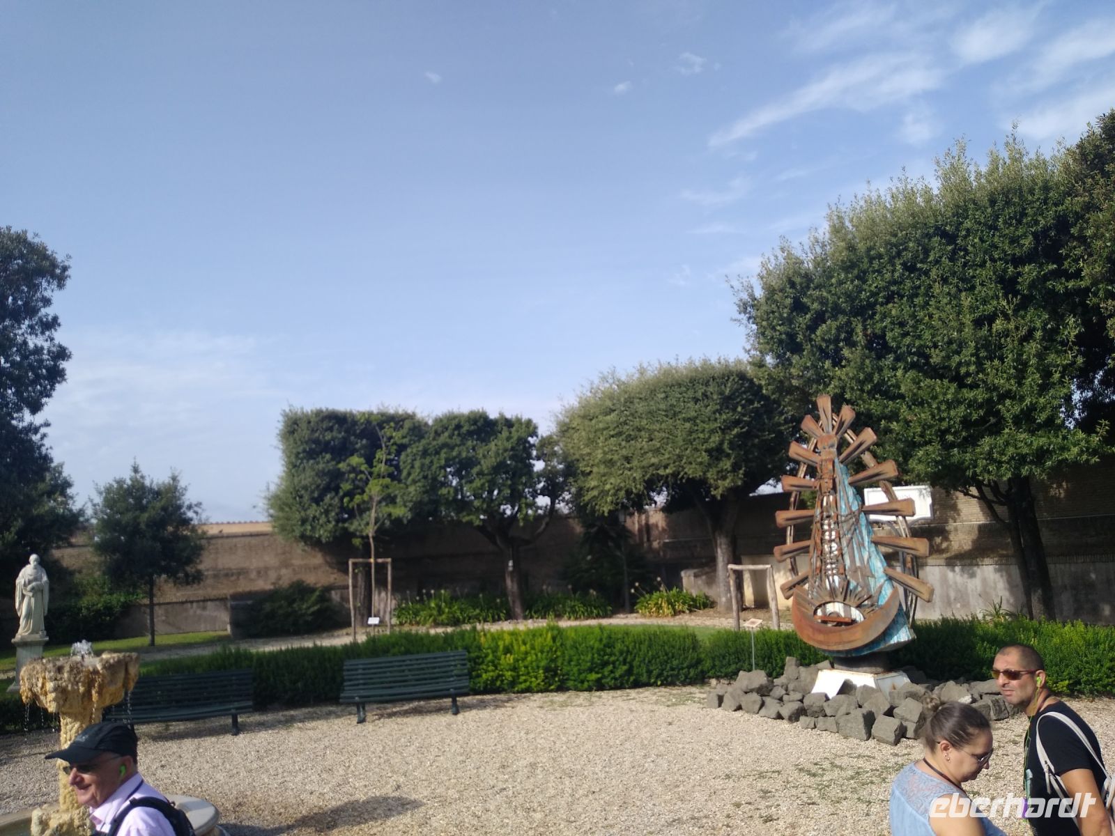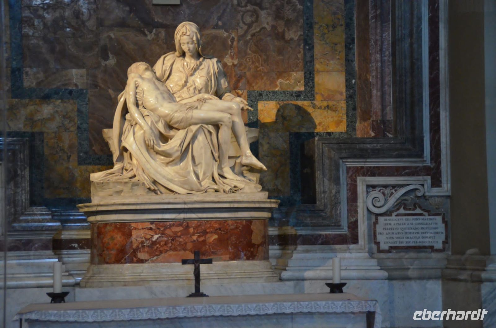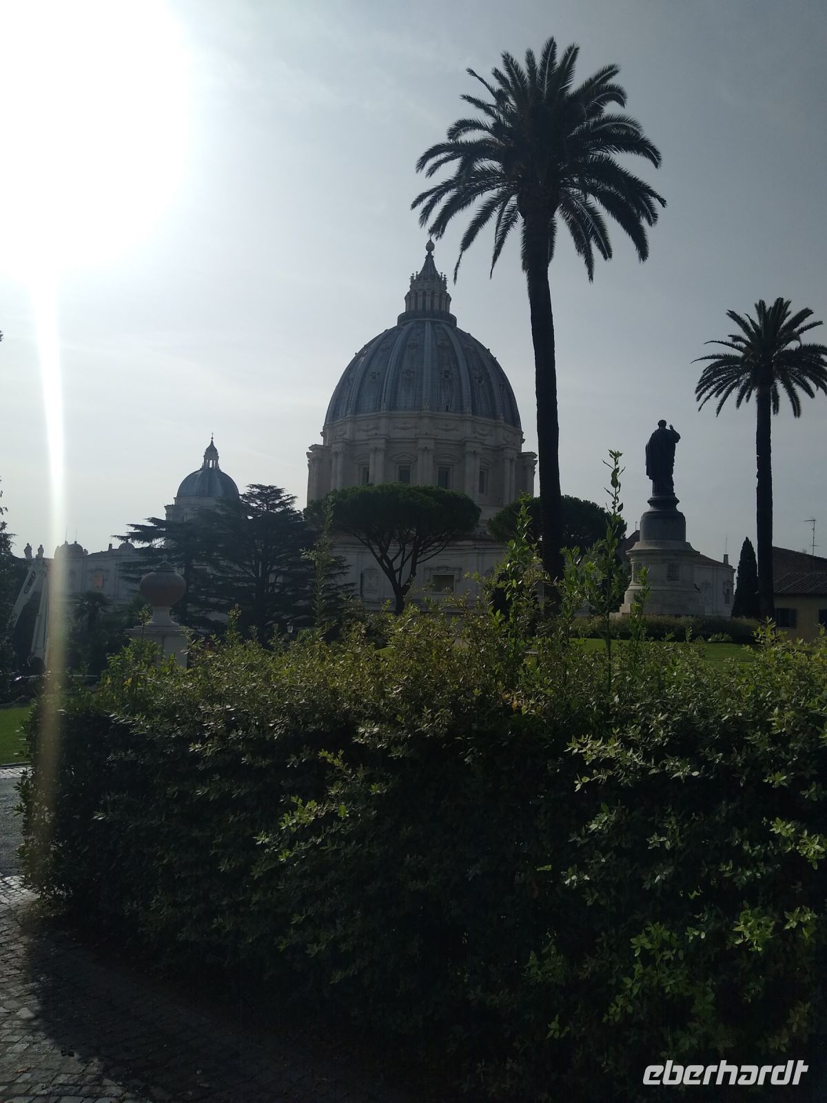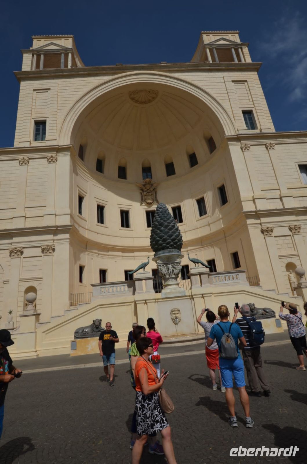 Unser heutiges Ziel war der Vatikan. Zu dem kleinsten anerkanntesten Staat der Welt ging es mit komfortablen Vans die vor dem Hotel auf uns wartete. Mit einem Bus sind wir durch die Vatikanischen Gärten gefahren und haben viele interessante Informationen über die Gebäude und Pflanzen erhalten. So haben wir auf unserer Rundfahrt auch gesehen das der Zwergstaat, wie der Vatikan gerne bezeichnet wird, innerhalb seiner Mauern einen eigenen Hubschrauberplatz, eine Akademie, 2 Türme, verschiedene Paläste, den Petersdom, einen Bahnhof und sogar ein Gefängnis hat. Der Vatikan besitzt eine eigene Verfassung und Papst Franziskus ist das Staatsoberhaupt. Auch wird im Vatikan nicht nur italienisch gesprochen, sondern auch Latein. Vorbei an Grotten, Brunnen, Statuen und er Jubiläumsglocke, die in 2000 das neue Millennium eingeläutet hat, konnten wir immer schon Blicke auf die atemberaubende Kuppel des Peterdoms, das größte freitragende Bauwerk der Welt, erhaschen. War es in den Gärten noch ruhig wurde es in den Vatikanischen Museen, die nach der Busfahrt anstanden, schon hektischer und voller. Mit Sylvia ging es dann an den Highlights der päpstlichen Kunstsammlungen vorbei. Diese Sammlung ist eine der größten der Welt und beherbergt Stücke von Leonardo da Vinci, Raffael, Michelangelo, Giotto und viele mehr. Der bekannteste Teil und Ort an dem das Konklave abgehalten wird, die Papstwahl, ist die Sixtinische Kapelle. Hier findet man einige der berühmtesten Gemälde der Welt. Über eine kleine Treppe gelangten wir direkt in den Petersdom, eine der 7 Pilgerkirchen von Rom.
