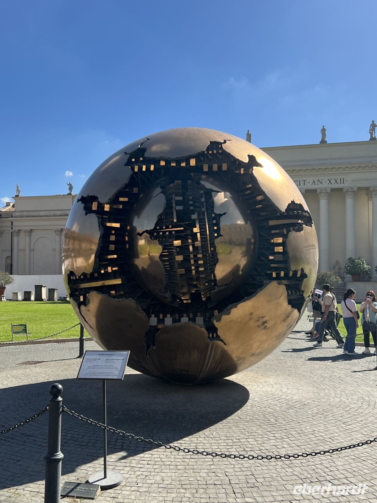Heute führte uns unser Weg in den Kirchenstaat. Mit der Metro erreichten wir problemlos das Vatikanische Museum. In der Schlange mussten wir nicht stehen, denn durch unsere Reservierung blieb uns das Warten in dieser Schlange erspart und wir betraten sehr einfach über die Extra-Line für Gruppenreservierungen das Museum. Aber manchmal scheitern wir am Personal, die uns nur wenig Zeit für die Sicherheitskontrolle und besorgen der Tickets gaben. Aber trotz des Stresses haben wir alles gut geschafft. Am Vormittag widmeten wir uns den Vatikanischen Gärten. Ein wunderschön angelegter Garten der zum Flanieren einlädt. Kein Wunder, dass die Päpste und gerade Papst Benedikt XVI diesen so genutzt haben. Seit geraumer Zeit ist aber für Gäste ein Spaziergang nicht so ohne weiteres möglich. Dennoch besichtigen konnten wir schon. Es ging bequem mit dem Bus vorbei an den herrlichen Gebäuden der Päpstlichen Akademie in Richtung Wehrmauer. Hier konnten wir die ehemalige Wohnung von Papst Johannes XXIII sehen, die in einem der beiden noch vorhanden Wehrtürmen war. Er war auch einer der Päpste, die den päpstlichen Gemächern entfloh. Eine ideale Mietwohnung für Rom - leider nicht für uns als Mietobjekt zu bekommen. Natürlich durfte der einstige Alterswohnsitz Papst Benedikt XVI auf der Rundfahrt oder der Bahnhof des Vatikanstaates nicht fehlen. Am Ende noch entlang Vatikanwald mit einer Vielzahl von Skulpturen und dann ging zurück ins Museum. Leider stehen nur die Restaurants der Vatikanischen Museen zur Verfügung. Nach Platzsuche u. Anstellen wird man aber mit der Sicht in Richtung des Gartens entschädigt. Am Nachmittag sollten wir die Massen dann richtig erleben. Im Gänsemarsch wurden wir durch die Räume geschoben und dennoch konnte uns Sylvia zu ausgewählten Kunstwerken wie z. B. der Apollo-Statue oder Laokoonstatue aber auch den Wandteppichen, von denen einige aus dem 16. Jh. stammen, erzählen. Auch auf die Besonderheit der Kartendarstellungen des Landes Italien in einem erhabenen Gang wurden wir aufmerksam gemacht. Denn die Betrachtung in der Darstellung ging von Rom aus und somit steht der nördliche Teil auf dem Kopf. Über die Raffael-Stanzen erreichten wir schließlich die Sixtinische Kapelle mit den Fresken von Michelangelo. Mit den Informationen, die Sylvia vor Bildtafeln uns gab, konnten wir den Inhalt verstehen und uns an den Originalen erfreuen.