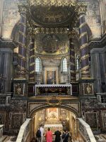 Gleich nach dem Frühstück machten wir uns auf dem Weg in Richtung Vatikan. Um Zeit zu sparen holten uns Vans vor dem Hotel ab und fuhren uns direkt bis zum Petersplatz. Ein bleibendes Erlebnis ist für jeden die Atmosphäre auf dem Petersplatz während der Papstaudienz. Heute konnten wir dieses Fludium hautnah erleben. Aber für die Gäste diesmal nicht in Form einer Audienz, sondern einen Gottesdienst mit dem Papst als Zelebrant. Einziger Wehrmutstropfen die Menschenmassen. Doch bei diesem Erlebnis verschmerzt man eine solche Situation. Leider mussten wir vorzeitig die Messe verlassen, da die Engelsburg auf uns wartete. Seit kurzem muss man auch hier Zeitfenster buchen. Der Weg führte uns vorbei am Fluchtweg der Päpste, dem Passetto di Borgo, zur Engelsburg. An dieser geschichtsträchtige Stätte, die den Päpsten einst als Schutzburg diente wurden wir durch Sylvia geführt. Neben den beeindruckenden Räumlichkeiten die den Päpsten als Quartier dienten erkannte man natürlich auch, dass es ursprünglich ein Mausoleum war. Es war nämlich einst die Grabstätte Kaiser Hadrians. Ganz oben thront der Erzengel, der sein Schwert in die Scheide steckt als Zeichen dass die schreckliche Pest in Rom vorbei ist. Von dort hat man natürlich auch eine hervorragende Sicht auf den Petersdom u. die Stadt Rom. Den Rest des Tages konnte man für individuelle Dinge nutzen. Ob Trastevere oder doch noch das Kapitolinische Museum - so einiges wurde in der Freizeit noch besichtigt. Am Abend ging wieder ein Teil der Gäste gemeinsam zum Abendessen um den heutigen Tag ausklingen zu lassen