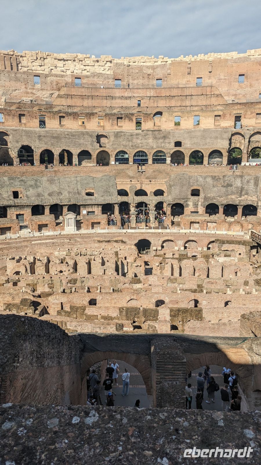 Es ist noch heute das das größte Amphitheater der Welt und der größte geschlossene Bau der Antike. Es bot bis zu 50.000 Zuschauern Platz. Es ist der in Stein gehauene Ausdruck der ´Brot und Spiele Politik´ vieler Kaiser und diente somit der Volksbelustigung. Es war Schauplatz vieler Gladiatorenkämpfe, Tierhatzen und Hinrichtungen. Ein ausgeklügeltes System an Eingängen und Treppen ermöglichte es, dass das Colosseum innerhalb von wenigen Minuten gefüllt werden konnte.