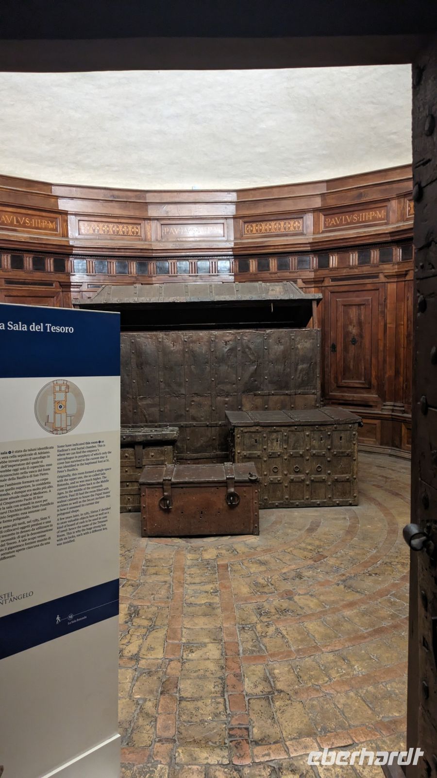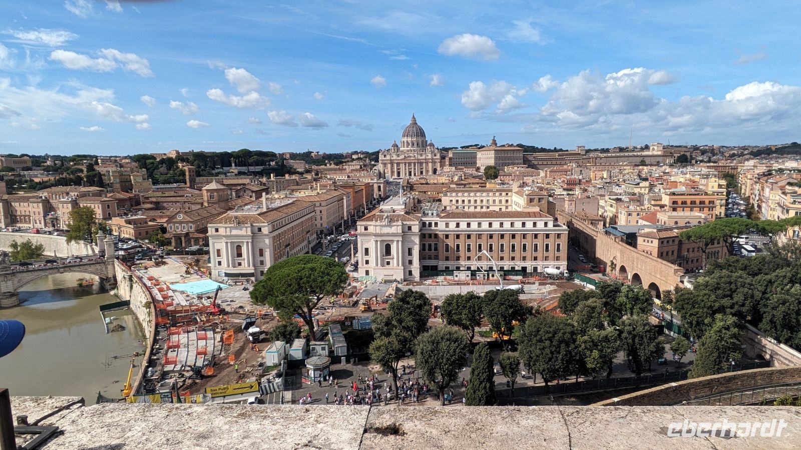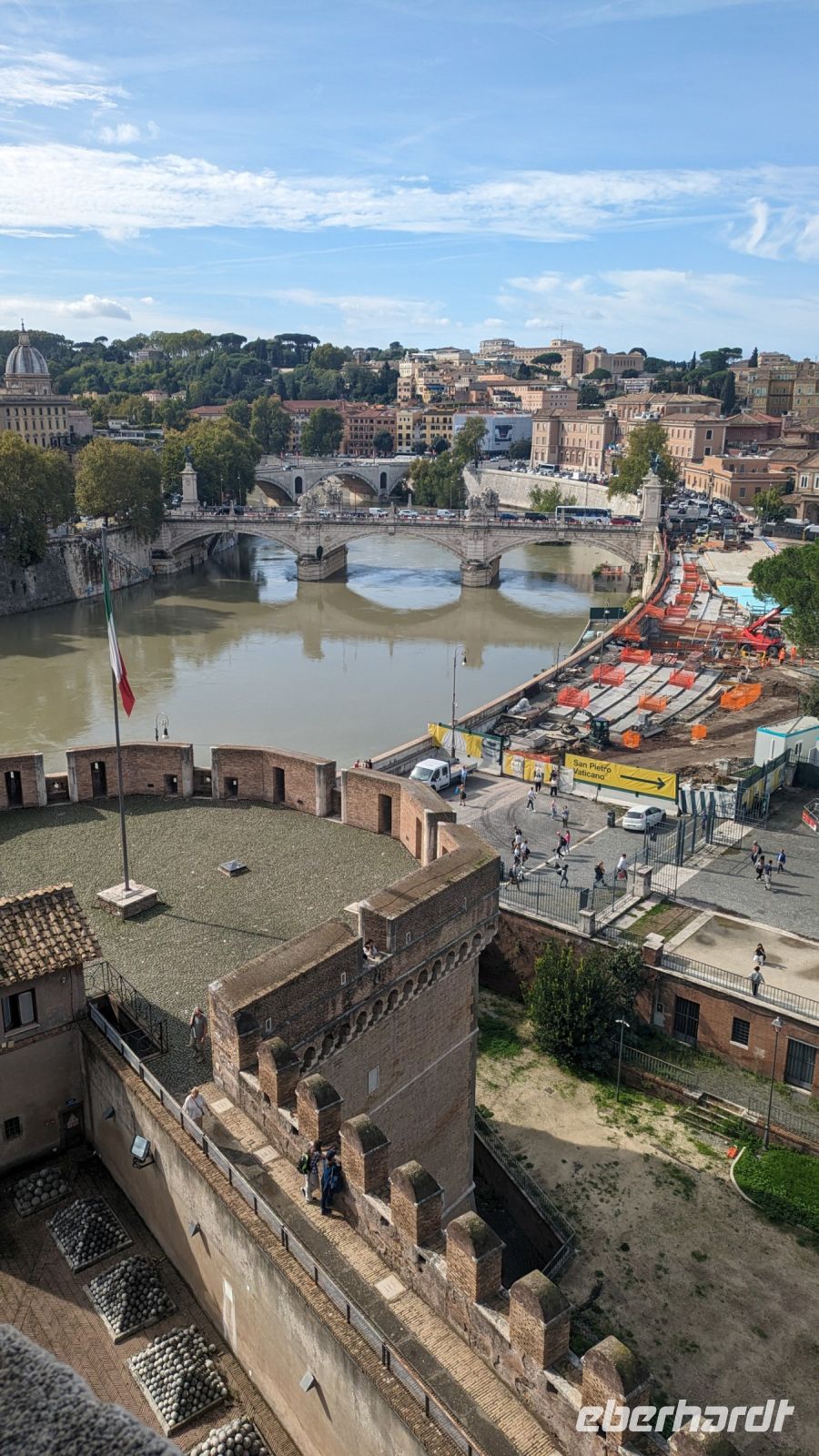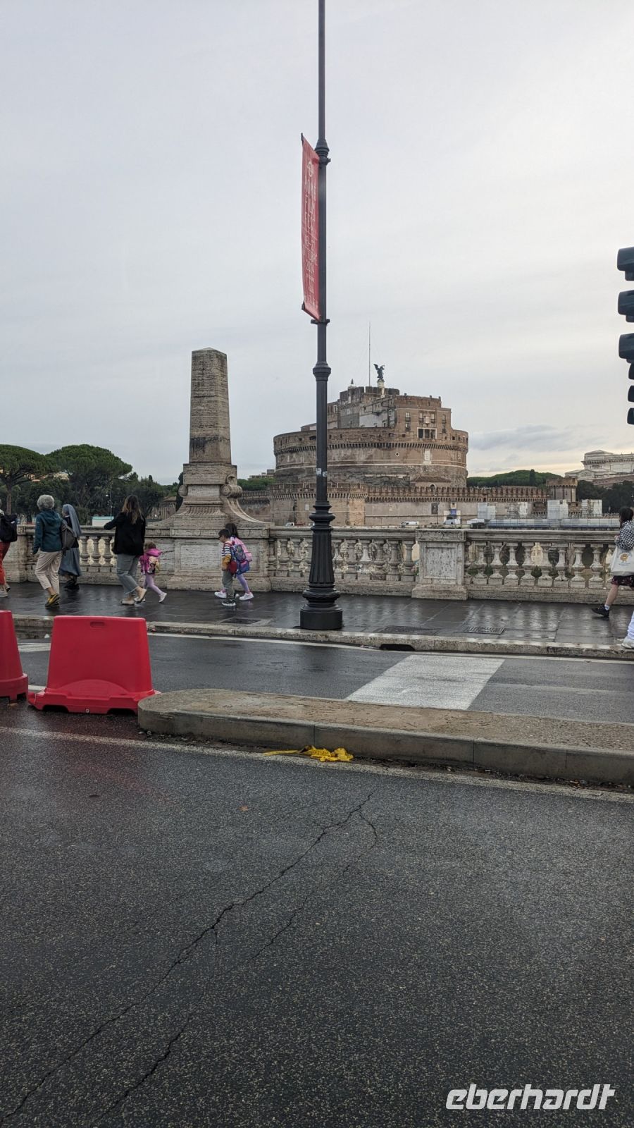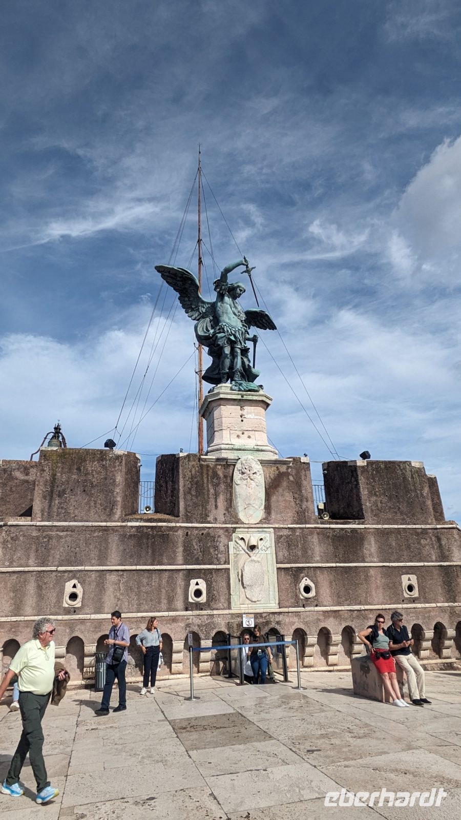Danach besuchten wir gemeinsam mit unserer Stadtführerin Sylvia die Engelsburg. Die Engelsburg war Gefängnis, Schatzkammer und Fluchtburg der Päpste, die sie immer dann aufsuchten, wenn militärische Gefahr drohte. Ursprünglich gebaut wurde sie im 2. Jahrhundert als Mausoleum für Kaiser Hadrian. Vom höchsten Punkt der Engelsburg aus hatten wir einen guten Rundblick über Rom. Die Engelsburg war Drehort für viele bekannte Filme wie zum Beispiel die Illuminatie.