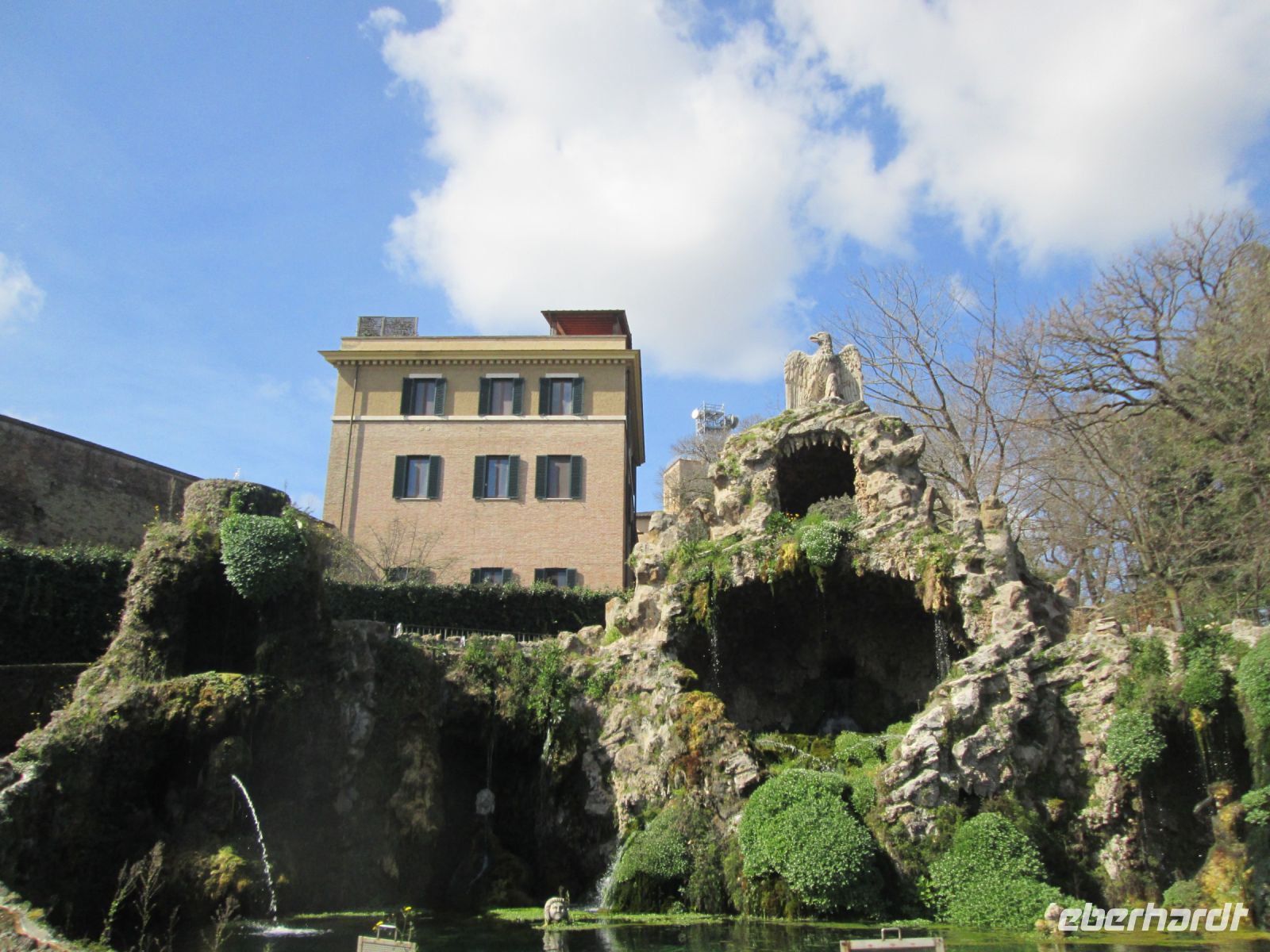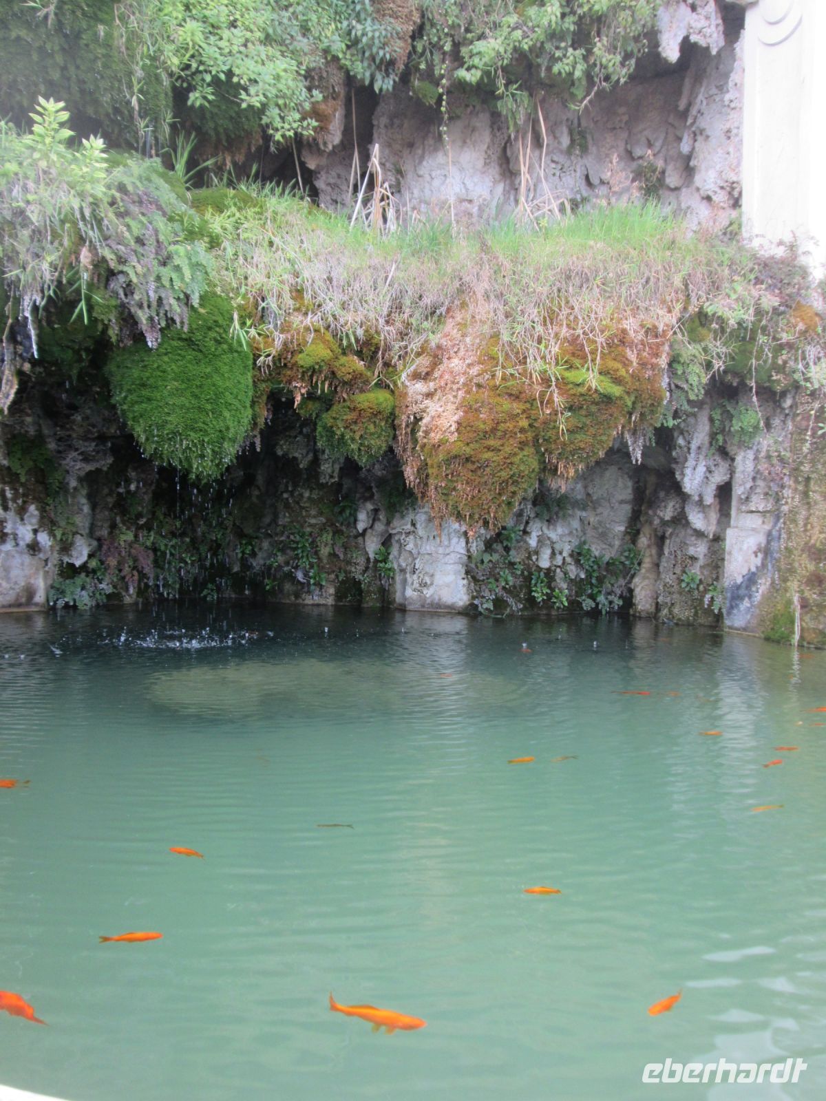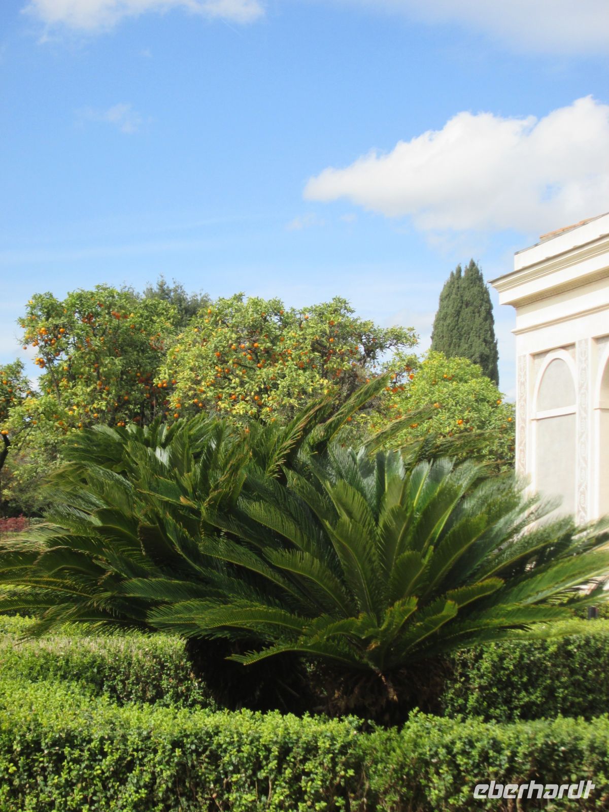 Nach all den vielen Ruinen wurde es bald grüner, denn wir befanden uns in den farnesischen Gärten. Nicht nur wir, auch Goethe war von der Schönheit einst fasziniert. Pomeranzen strahlten in der Sonne, Lorbeer duftete, Kamelien blühten rot und weiß und immer wieder begleitete uns das muntere Plätschern des Wassers.