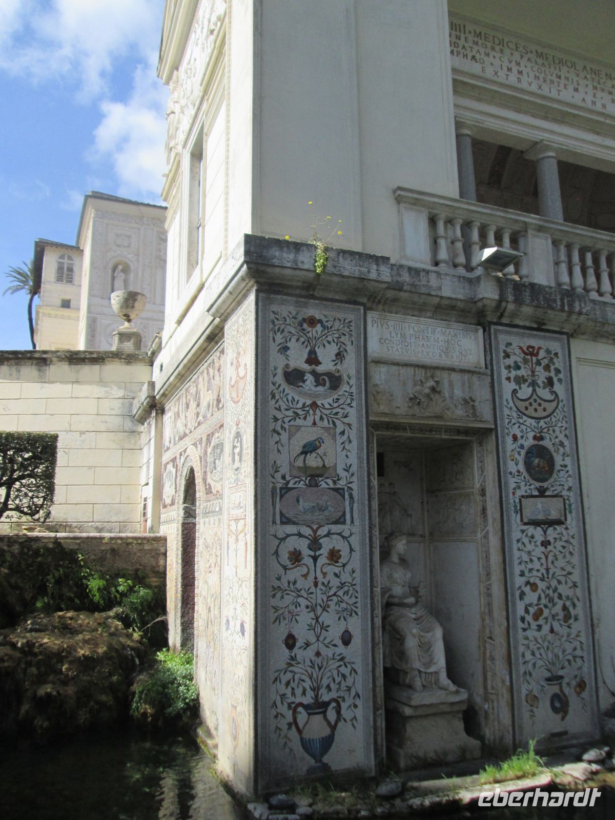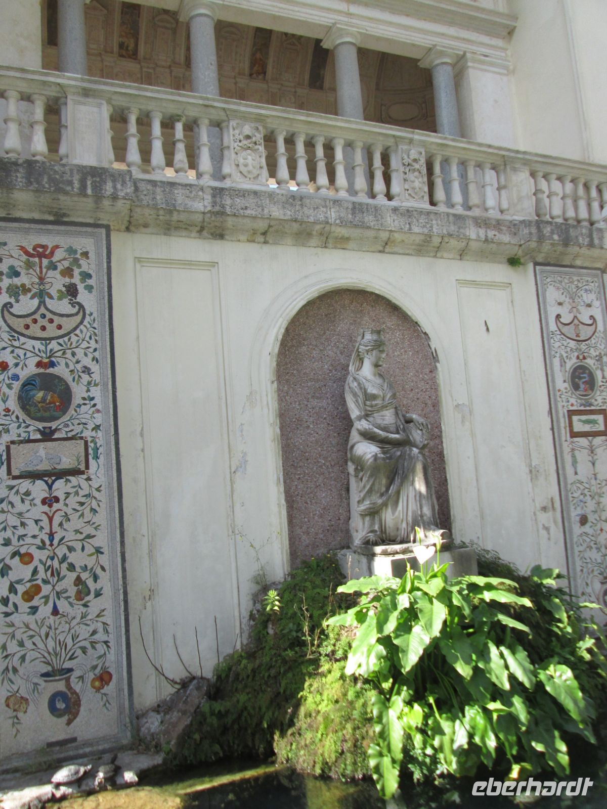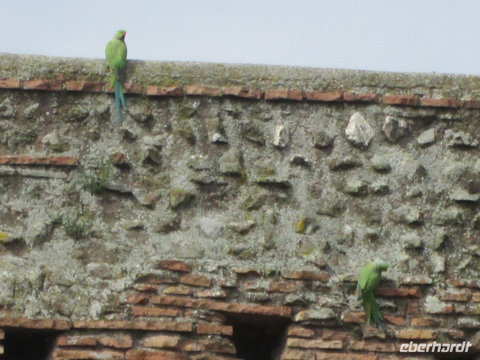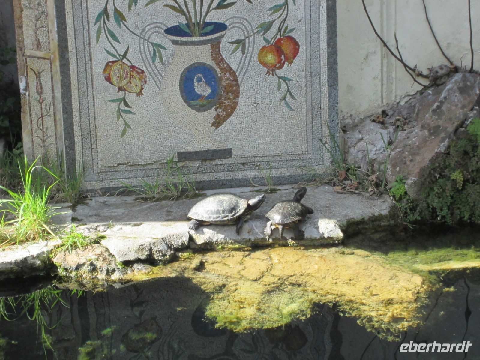 Nach all den vielen Ruinen wurde es bald grüner, denn wir befanden uns in den farnesischen Gärten. Nicht nur wir, auch Goethe war von der Schönheit einst fasziniert. Pomeranzen strahlten in der Sonne, Lorbeer duftete, Kamelien blühten rot und weiß und immer wieder begleitete uns das muntere Plätschern des Wassers.