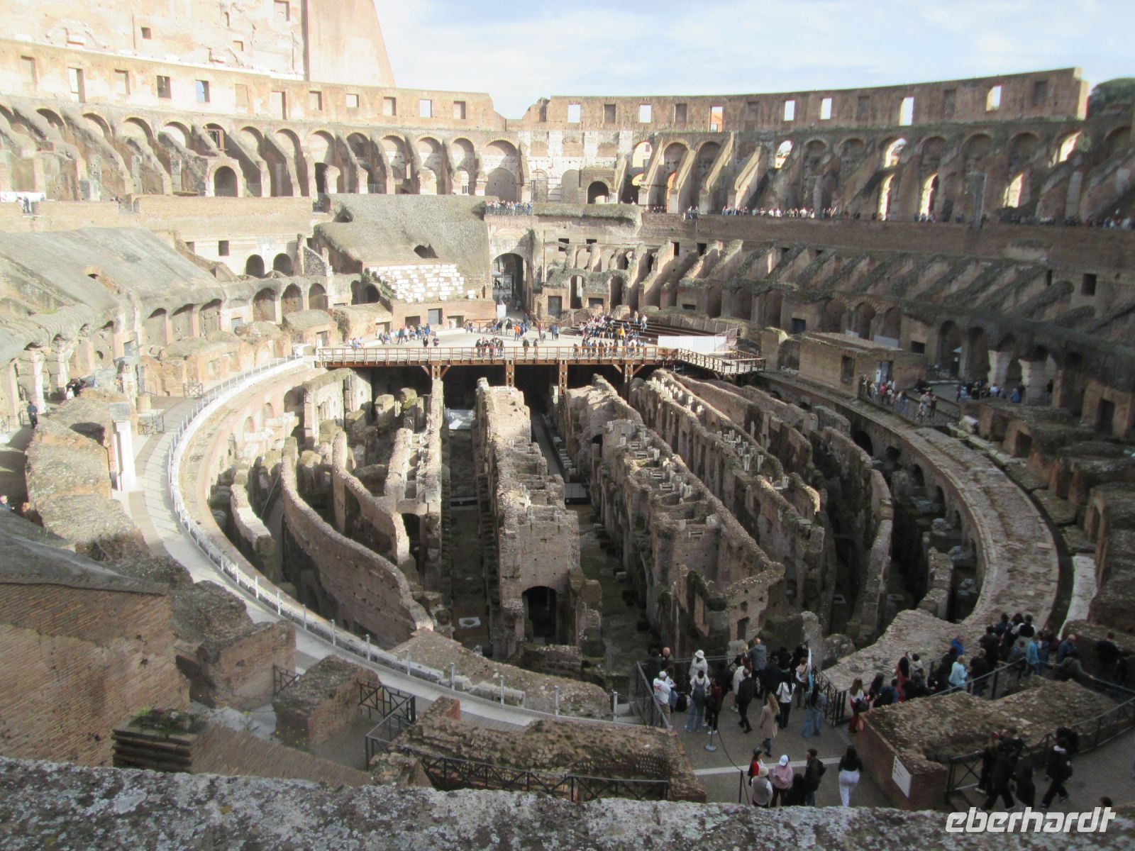 Brot und Spiele waren an der Tagesordnung, je brutaler und fantasievoller, desto interessanter für die Zuschauer. Urteilsvollstreckungen wurden mit ungeheurer Brutalität durchgeführt. Heute sehen, ja bestaunen wir, im Inneren, also in der Arena stehend, die Größe und das vielverzweigte Tunnelsystem, durch welches die Tiere getrieben wurden, um diese darüber, in der Arena, niederzumetzeln. In einer Bauzeit von nur 9 Jahren wurde dieses spektakuläre Bauwerk errichtet.