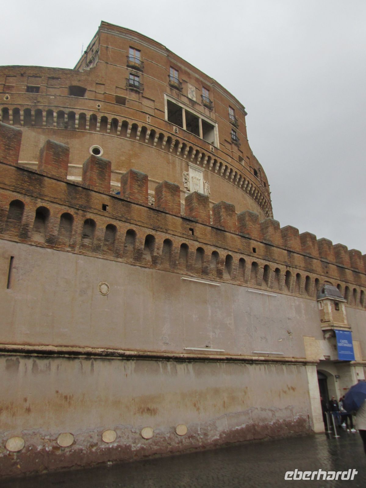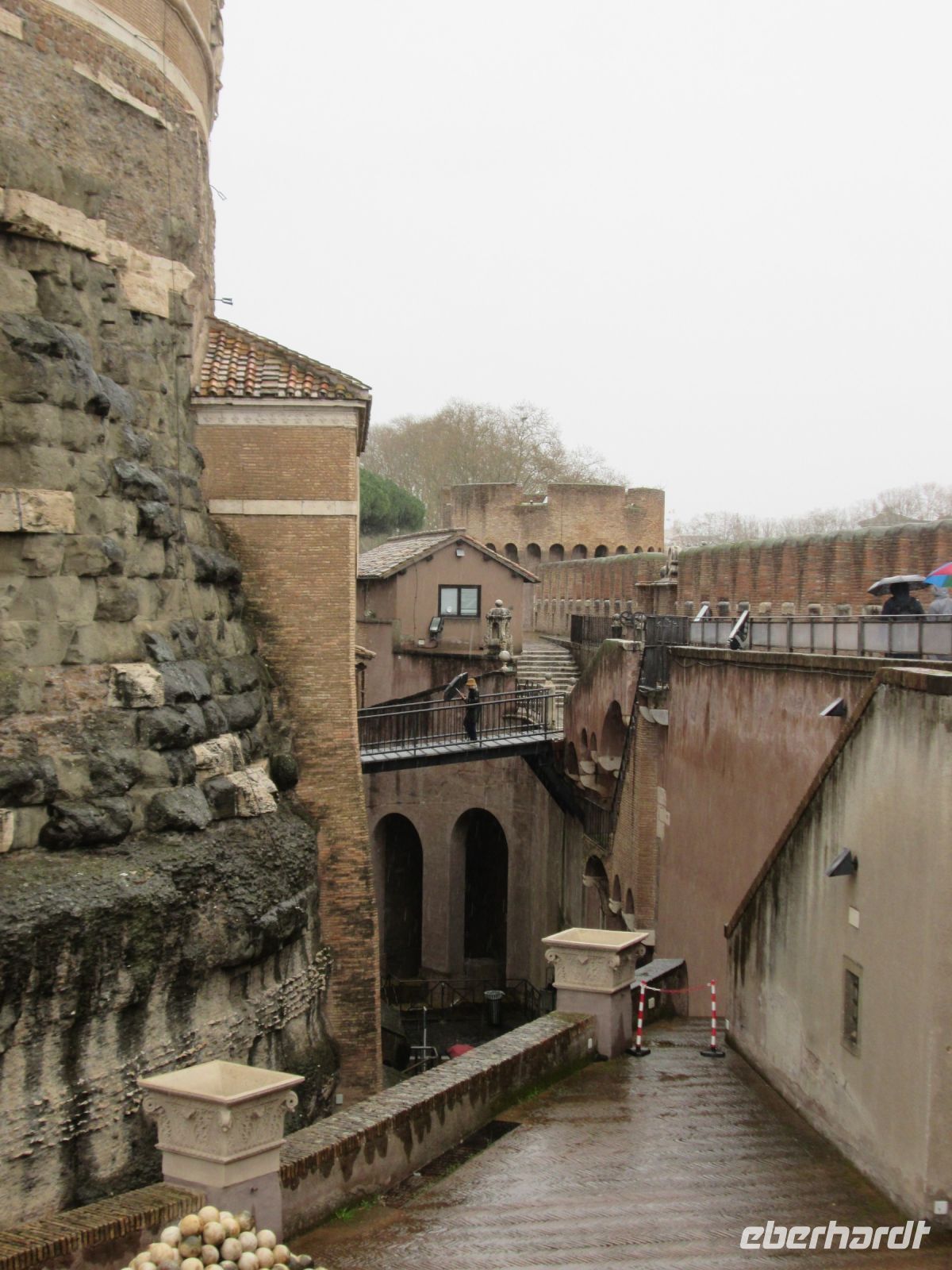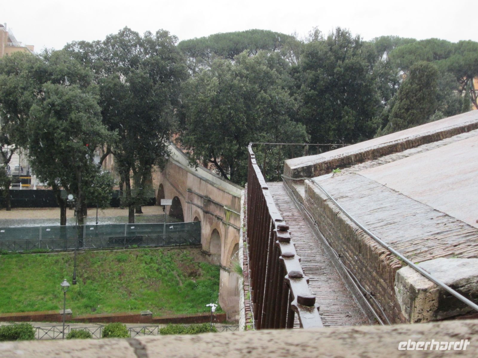 Den Abschluss der Besichtigung der Engelsburg bildete ein Rundumblick von der obersten Etage auf Rom, leider immer noch bei Regen, und ein Spaziergang durch den von Kaiser Hadrian vor 1700 Jahren angelegten Gang, einer langen Rampe gleichend.