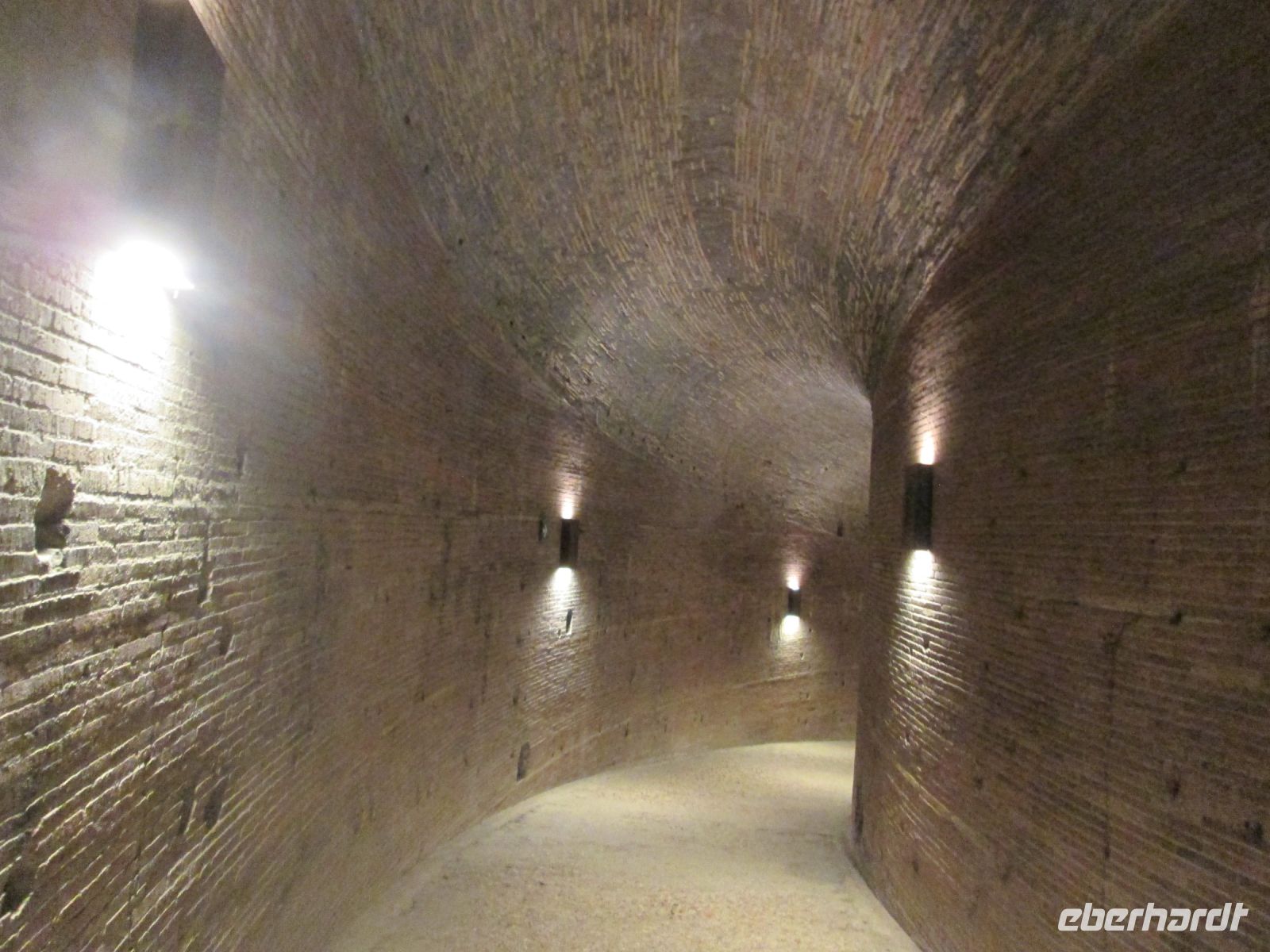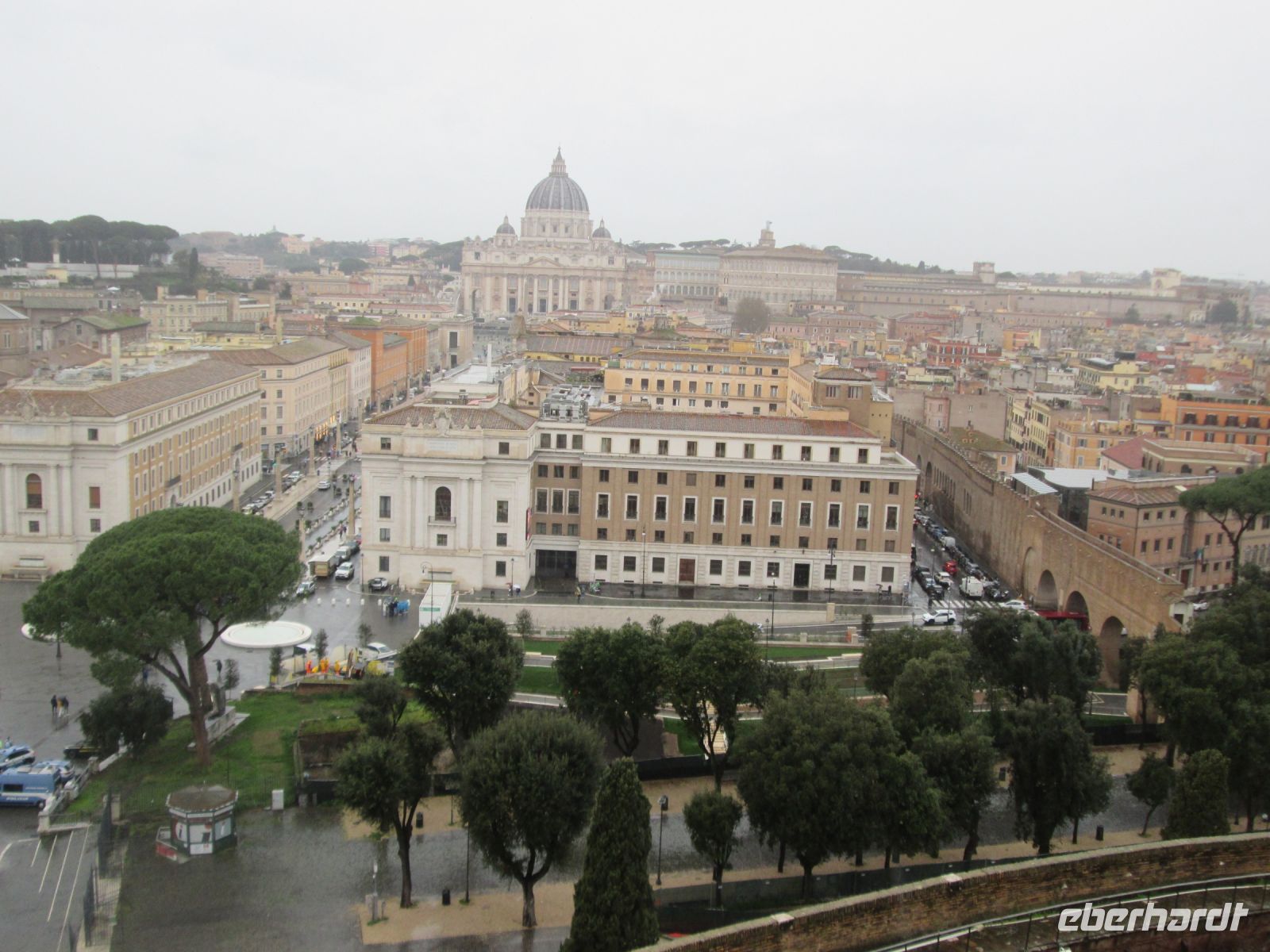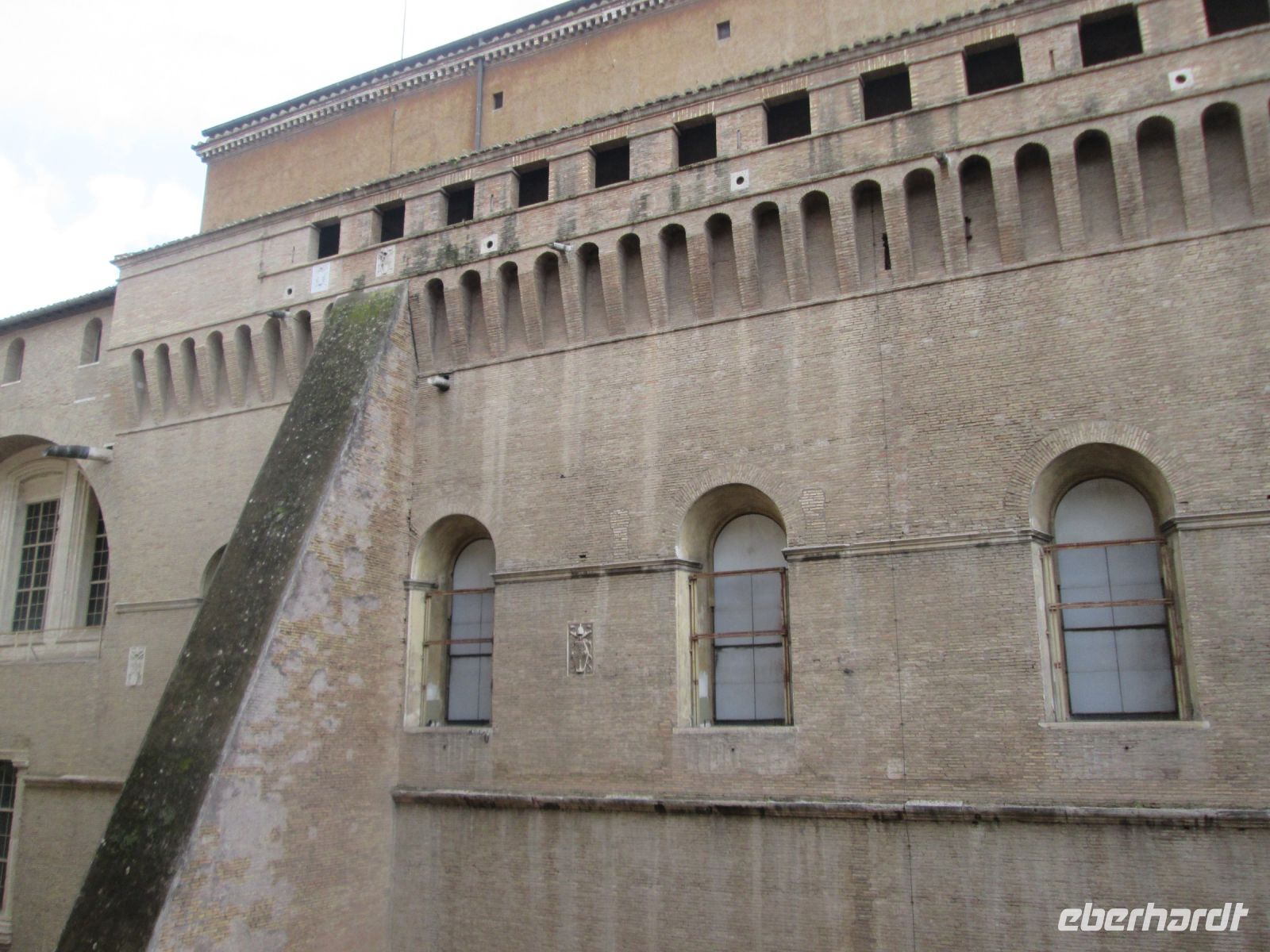 Den Abschluss der Besichtigung der Engelsburg bildete ein Rundumblick von der obersten Etage auf Rom, leider immer noch bei Regen, und ein Spaziergang durch den von Kaiser Hadrian vor 1700 Jahren angelegten Gang, einer langen Rampe gleichend.