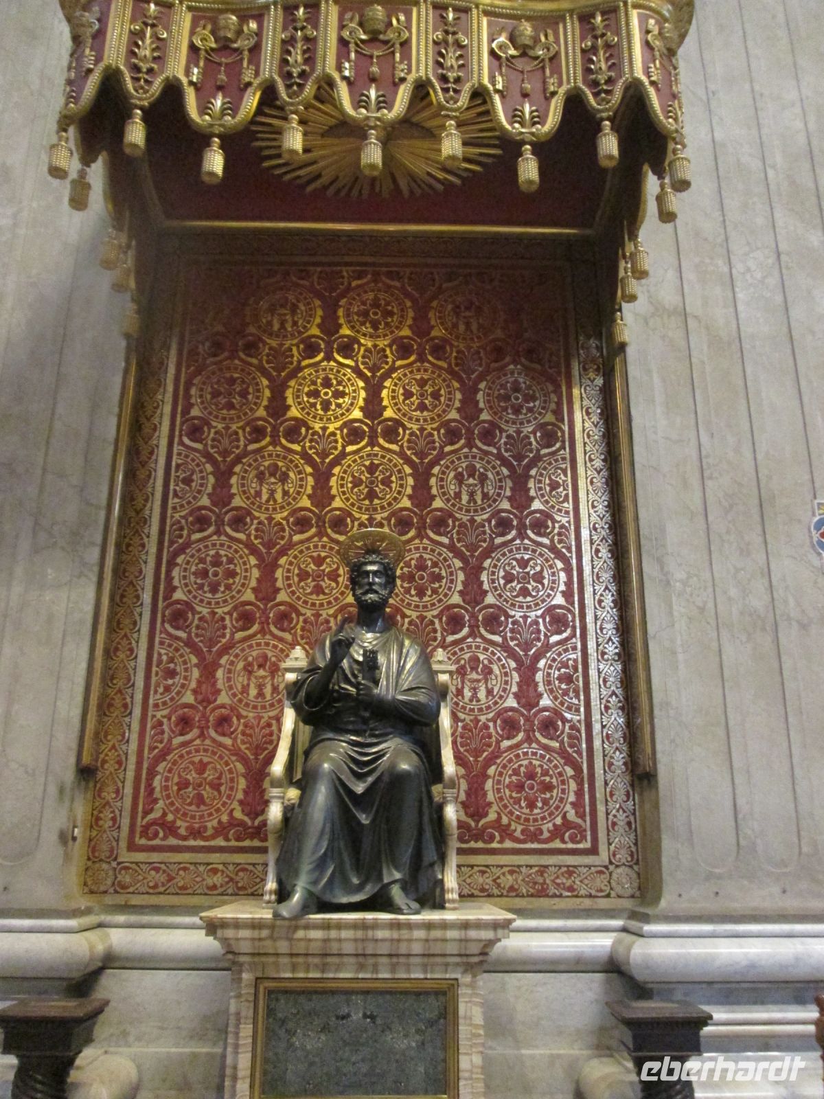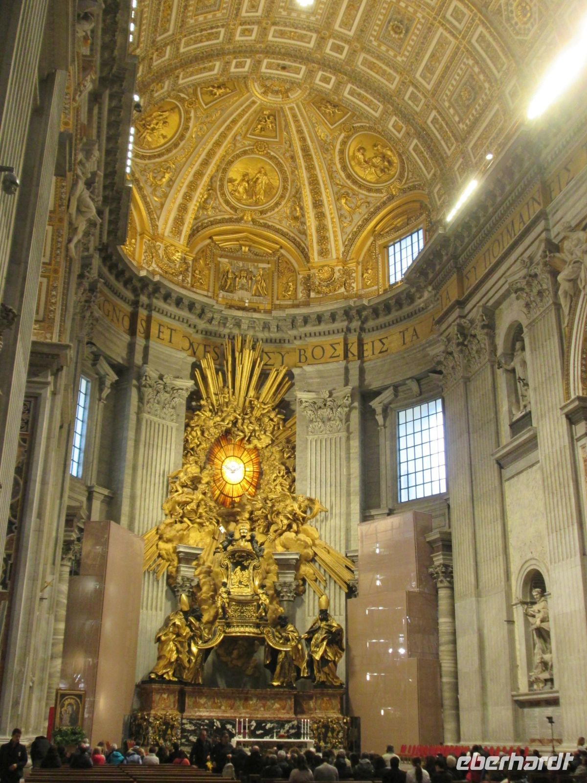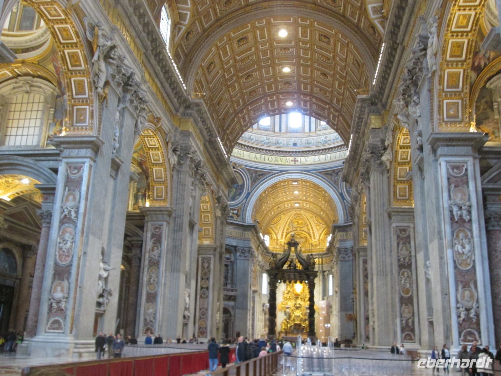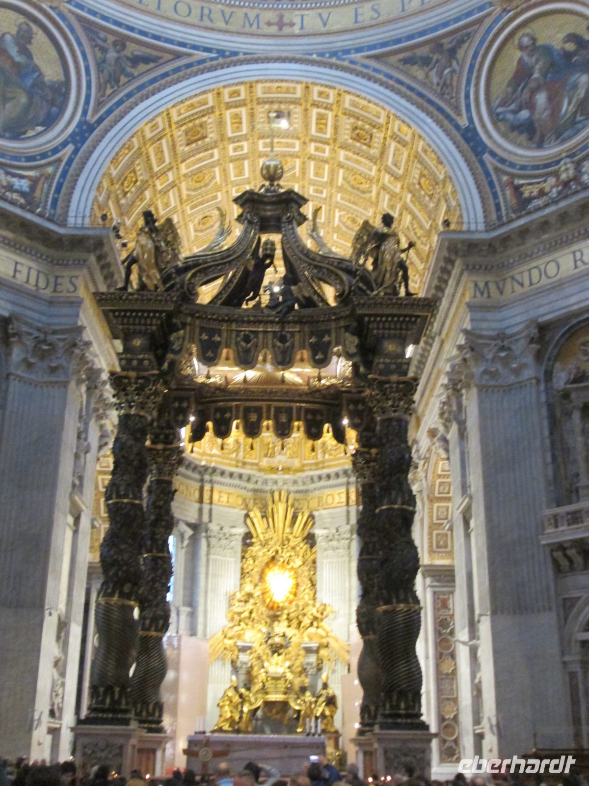 Es ist eine Fülle, und diese in Gänze zu genießen, bräuchte man mehrere Stunden. Aber selbstverständlich warfen wir z.B. einen Blick auf Michelangelos Pieta, den Bronzebaldachin, der über dem Papstaltar thront, die Gräber verschiedener Päpste, die eingravierten Namen großer Kirchen, deren Länge man im Mittelschiff sehen kann,...