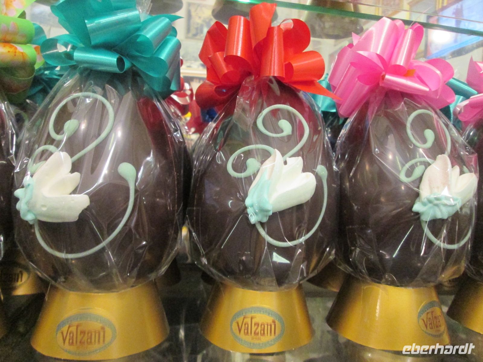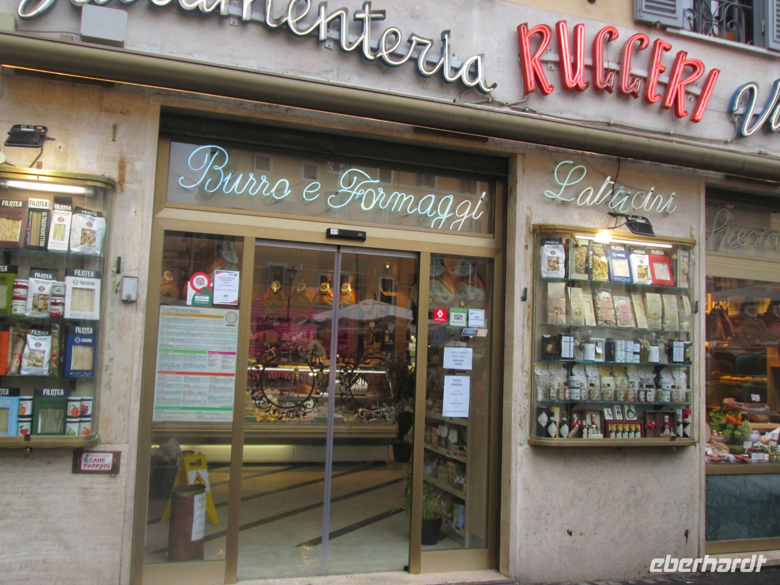 Es gab etwas Freizeit für ein kleines Mittagessen und danach saßen wir im Trockenen in der Kirche Santa Maria in Trastevere. Agnieszka war in Hochform in ihren Erzählungen und die Zeit verging wie im Flug, so dass wir 1 Stunde später wieder den römischen Regen "genießen" konnten. Um die Laune nicht sinken zu lassen, gab es für alle einen "Glücksmacher" : Schokolade aus der Manufaktur Valzani. Man musste schon arg an sich halten, um diesen hausgemachten Leckereien zu widerstehen. Mit diesem kleinen Zuckerschub, der bekanntlich Treibstoff für das Gehirn ist, ging es zurück über den Tiber zum Campo dei Fiori. Die für diesen schönen Platz typischen Marktstände wurden schon abgebaut. Frisches Obst und Gemüse oder Blumen werden am nächsten Tag wieder bunte Farbtupfer bilden und tolle Gerüche verströmen.