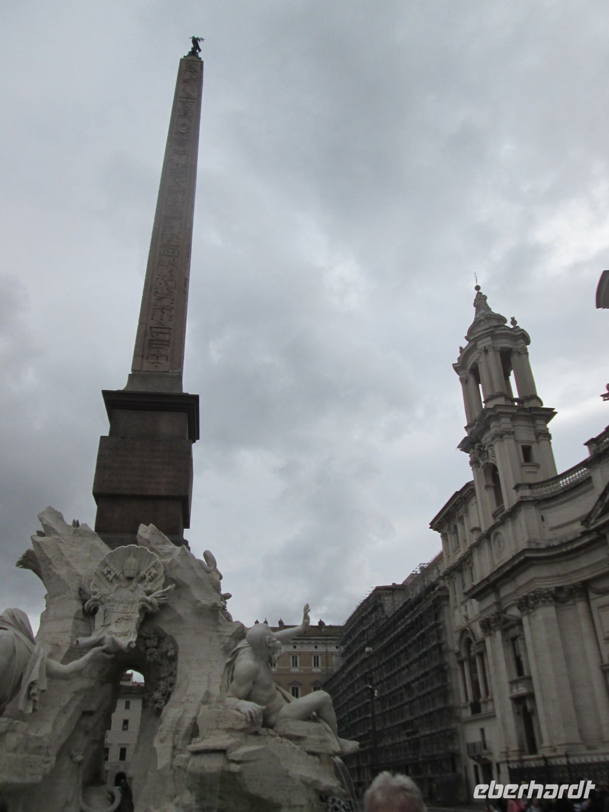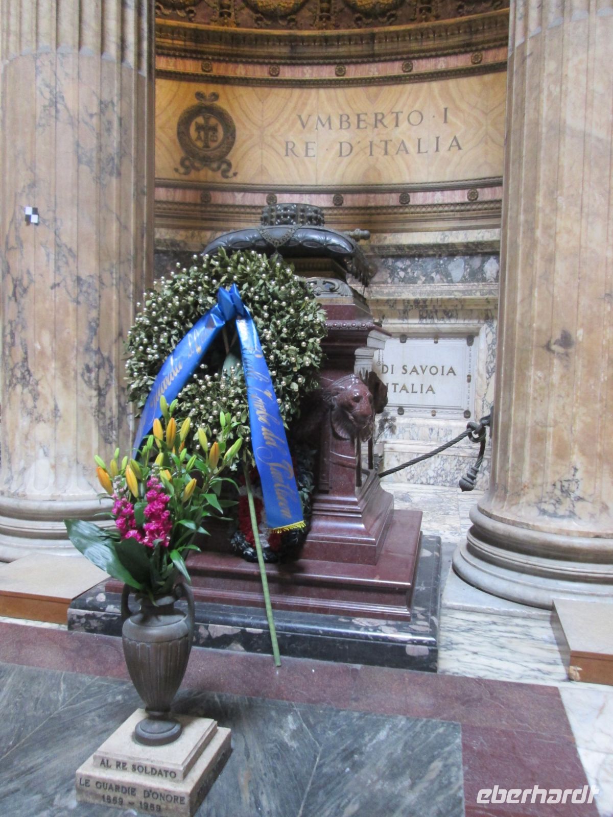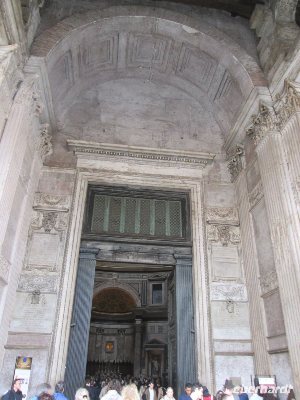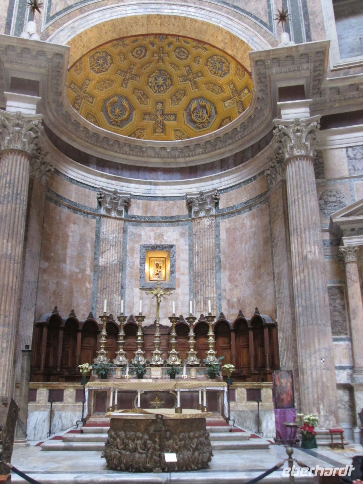 Hatten wir in den vergangenen Tagen immer wieder einen Abstecher in die Antike gewagt, stand mit dem Pantheon wieder ein sehr eindrucksvolles Bauwerk auf dem Programm. Der Tempel aller Gottheiten wurde im 1. Jahrhundert vor Christus erbaut, oft verändert und heute ist es eine Kirche. Die Kuppel mit ihrer mittigen, im Durchmesser 9 m großen Öffnung, durch die alljährlich zu Pfingsten Millionen von Rosenblätter fallen, war Vorbild für viele andere Bauwerke, z.B. die Kuppel des Domes von Florenz. "Zur Herabkunft des Heiligen Geistes wurden und werden Blüten geworfen" (Erzpriester Daniele Micheletti im Jahr 2015).