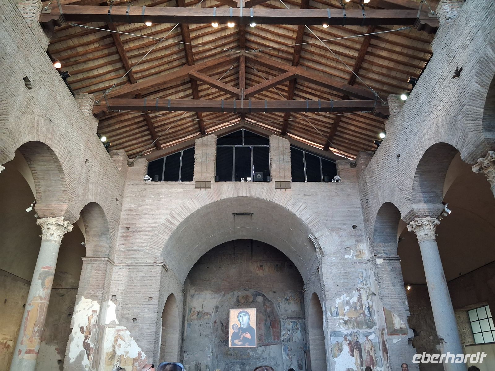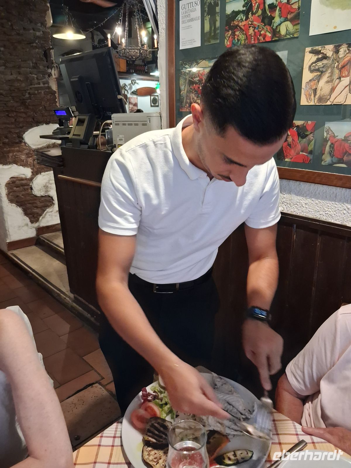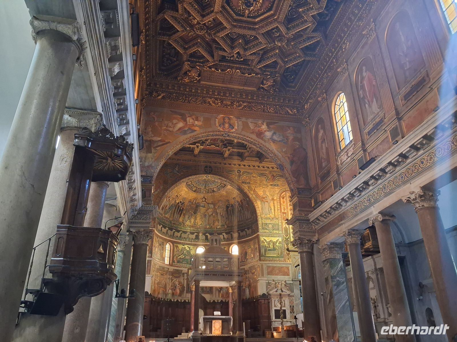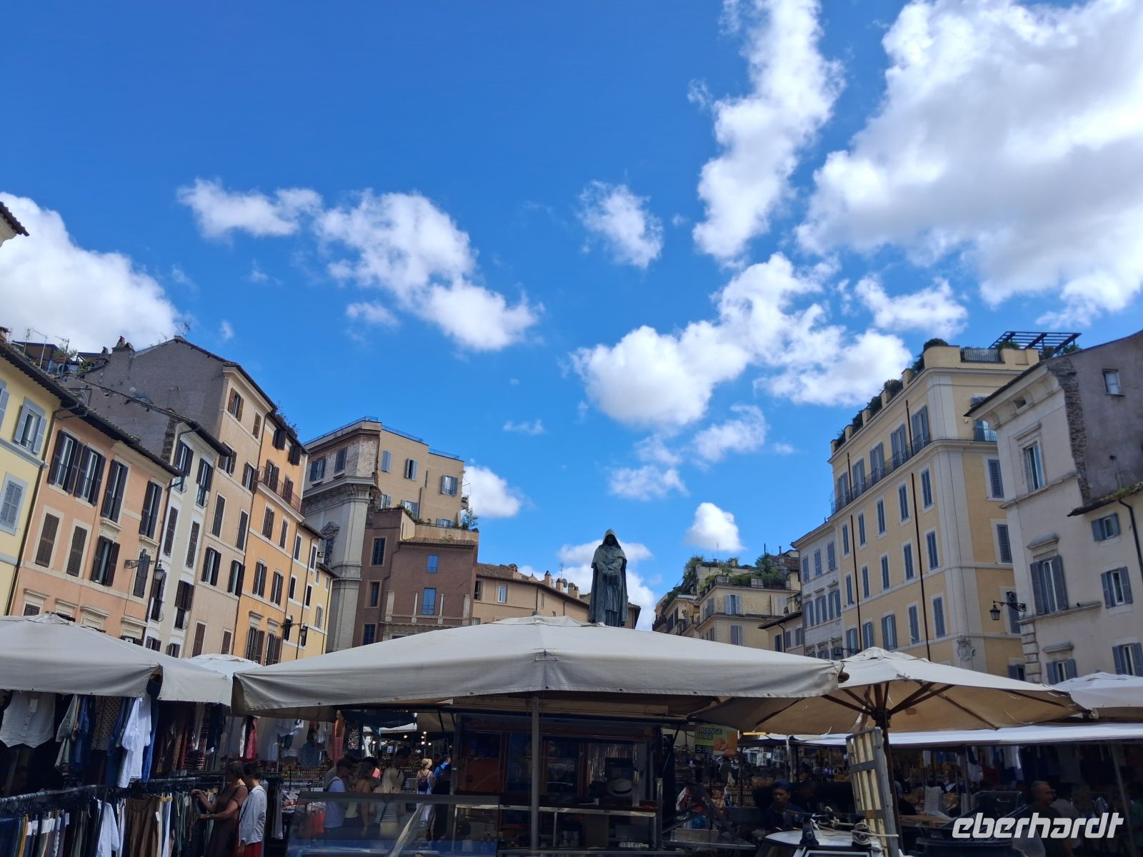 Anschließend besuchen wir den Marktplatz Campo de' Fiori mit der Statue von Giordano Bruno. Von hier gehen wir weiter über den Tiber bis in das charakteristische Stadtviertel Trastevere. Durch bunte Gassen mit vielen Lokalen und einigen noch traditionellen Handwerksläden erreichen wir die Kirche Santa Maria in Trastevere. Agnieszka betritt sie gemeinsam mit uns, um uns die Bedeutung und die kunstvollen Mosaiken zu erläutern. Nun ist schon Zeit, sich von unserer örtlichen Reiseführererin zu verabschieden - 5 eindrucksvolle Tage in Rom sind viel zu schnell vergangen. Wir haben noch Freizeit, die wir in Trastevere oder auf der anderen Seite des Tibers verbringen, bevor wir wieder ins Hotel zurückkehren. Um die Reise gemeinsam ausklingen zu lassen, treffen wir uns zum Abschied in einer Trattoria in unserem Stadtviertel Monti.