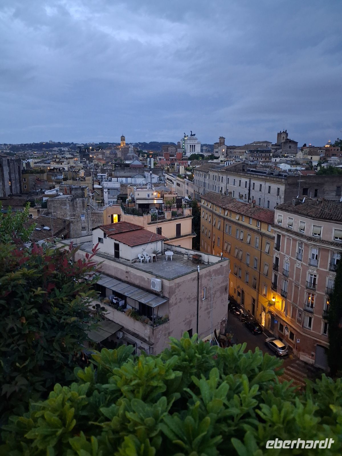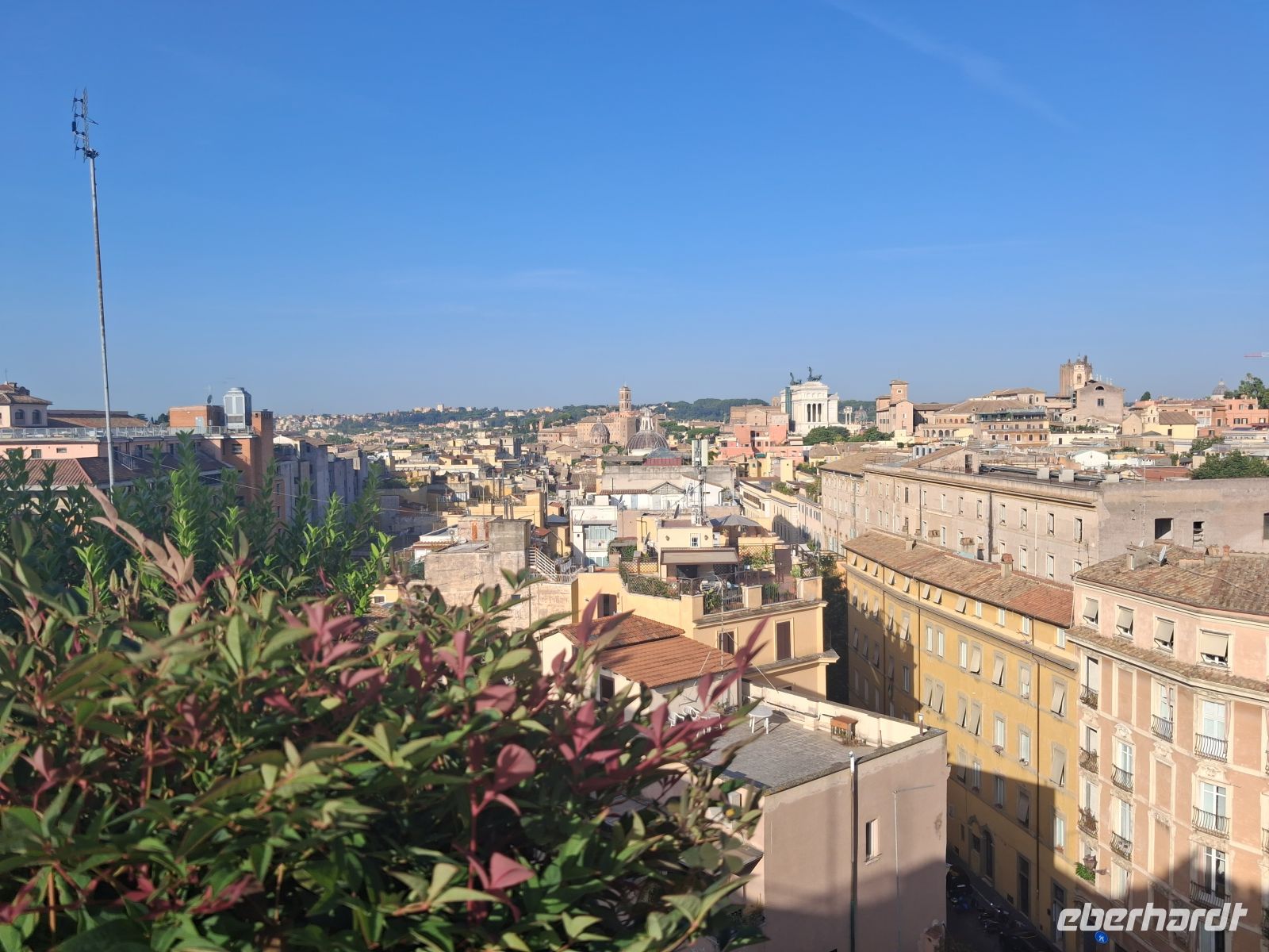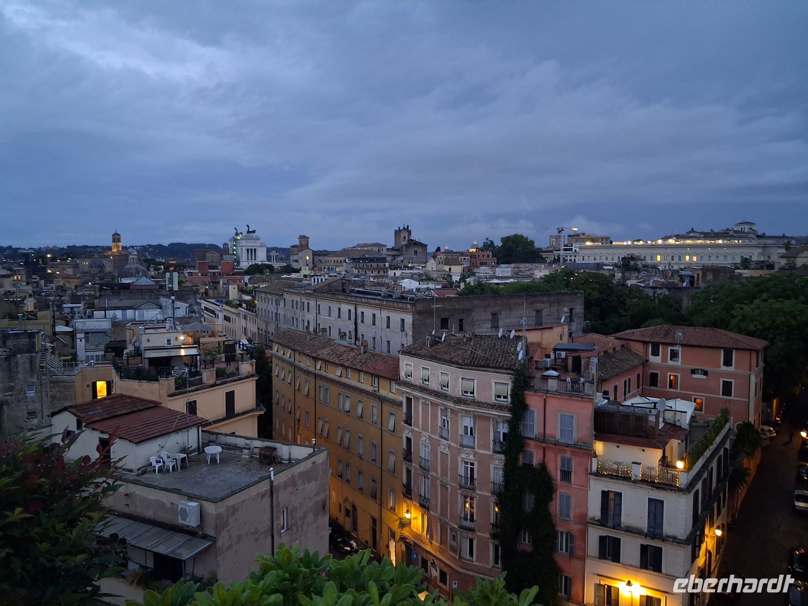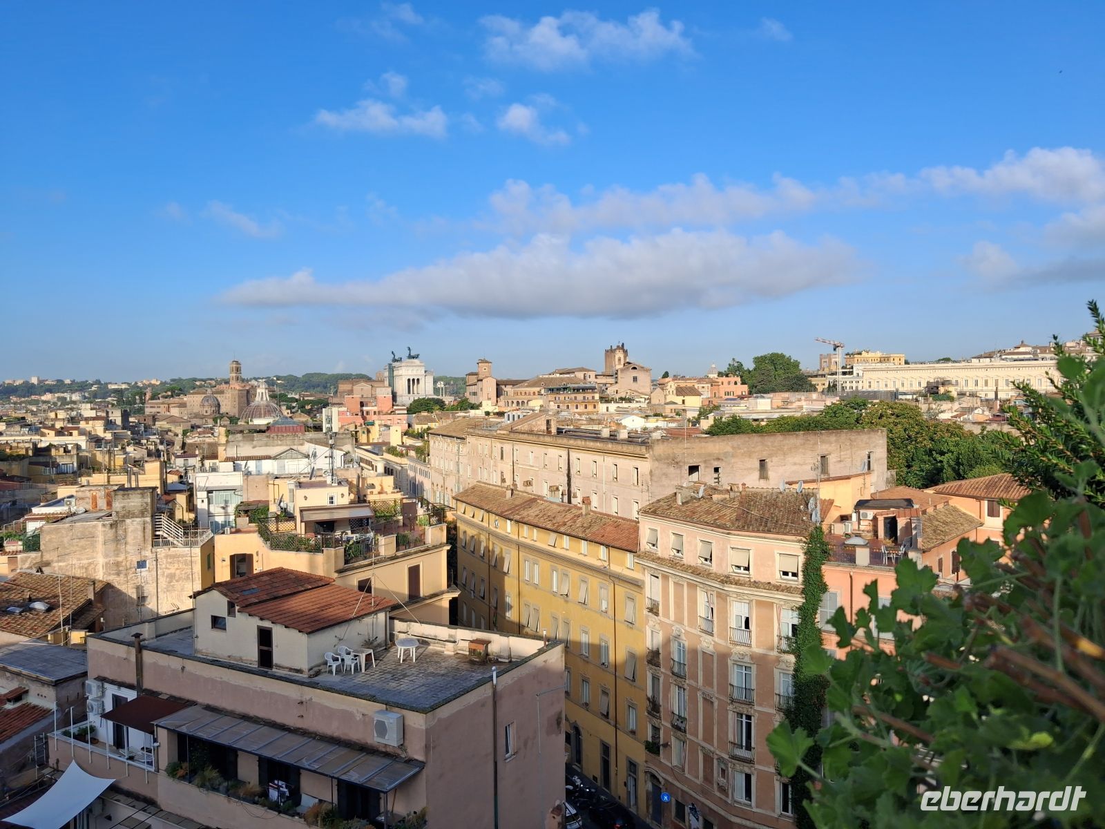 Einige Gäste sind schon am Vortag angereist, um Rom auf eigene Faust zu erleben. Im Laufe des heutigen Sonntags erreichten die Flüge aus Dresden, Leipzig, Berlin, Frankfurt und München spätestens am frühen Nachmittag die Stadt Rom und unser Hotel im charakteristischen und zentralen Stadtviertel Monti. Für den Abend hatten wir uns auf ein gemeinsames Abendessen in einer typisch römischen Trattoria geeinigt, so konnten wir uns in Ruhe kennenlernen und vor allem eine erste Einführung in die typisch römischen Gerichte auf der Speisekarte erhalten. Wer Lust hatte, konnte noch ein Getränk auf der Dachterrasse unseres Hotels genießen, denn Rom hatte uns den Sommer wiedergegeben, und es war eine laue Nacht.