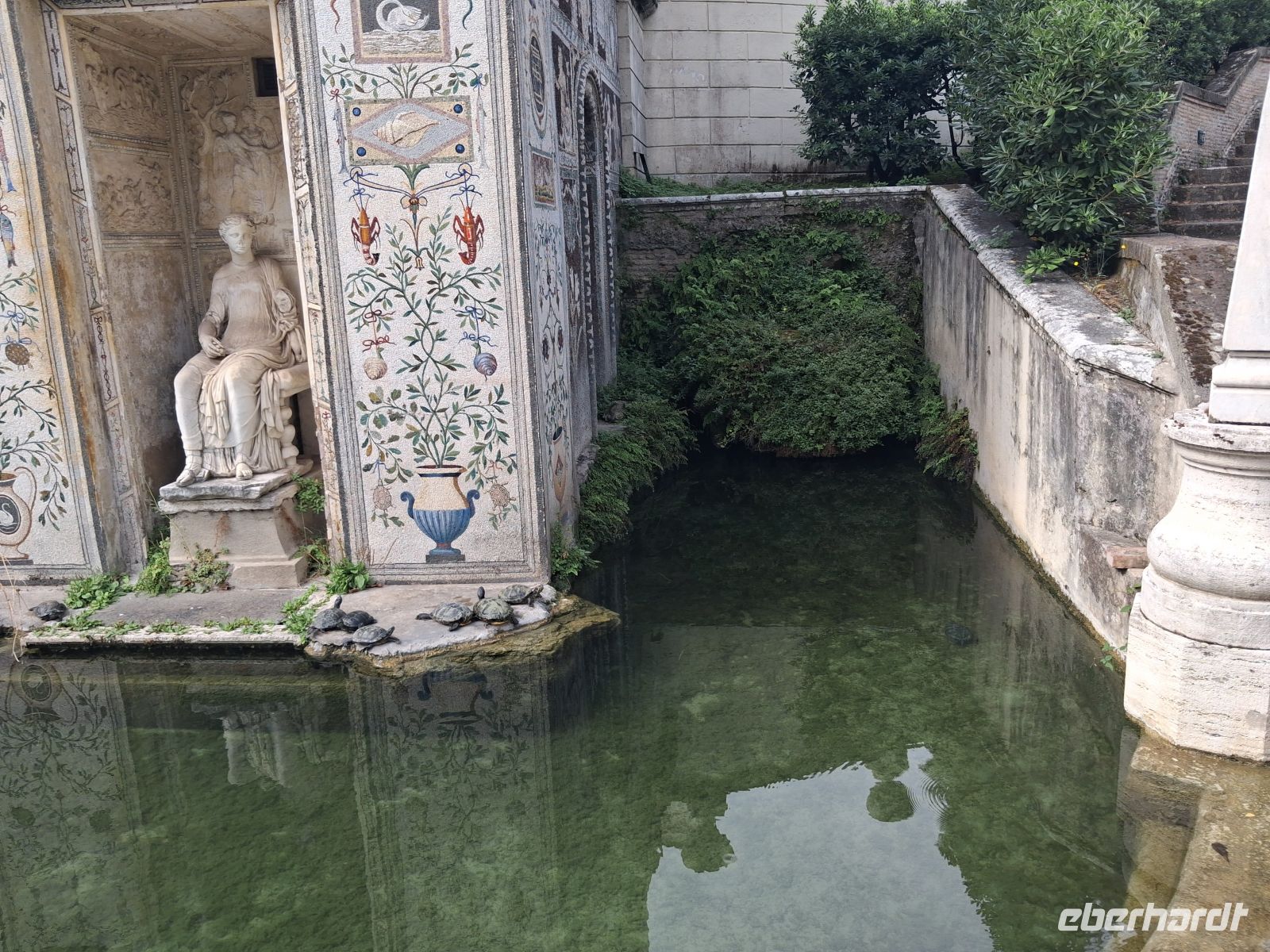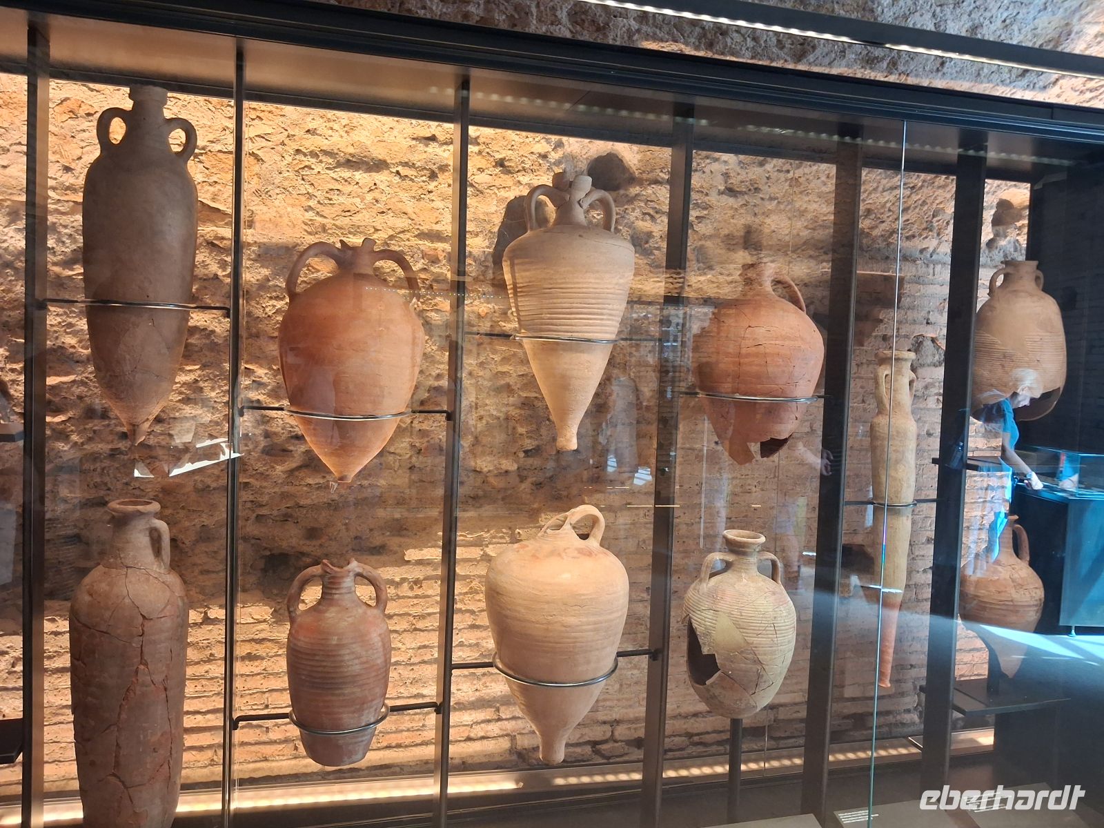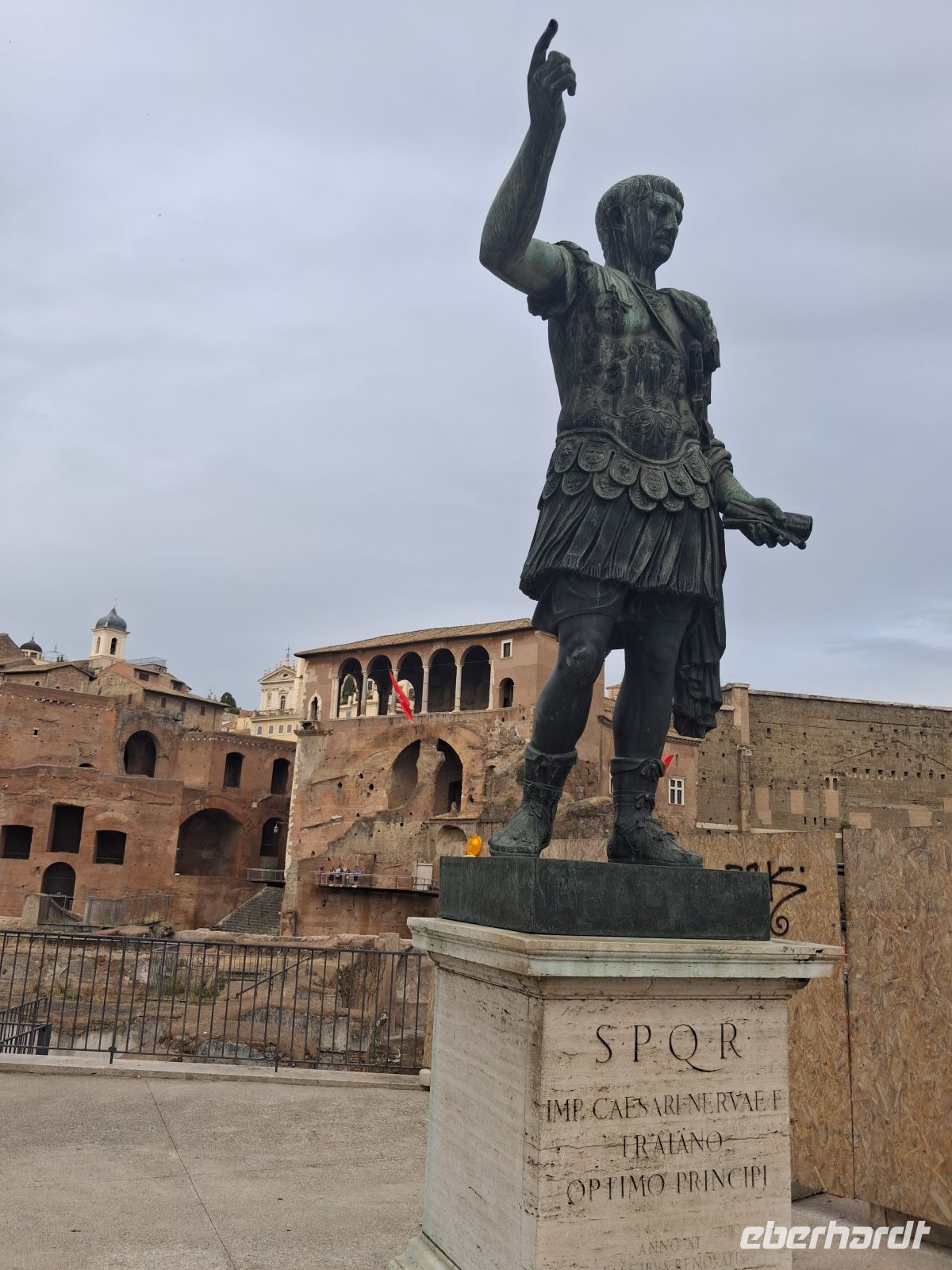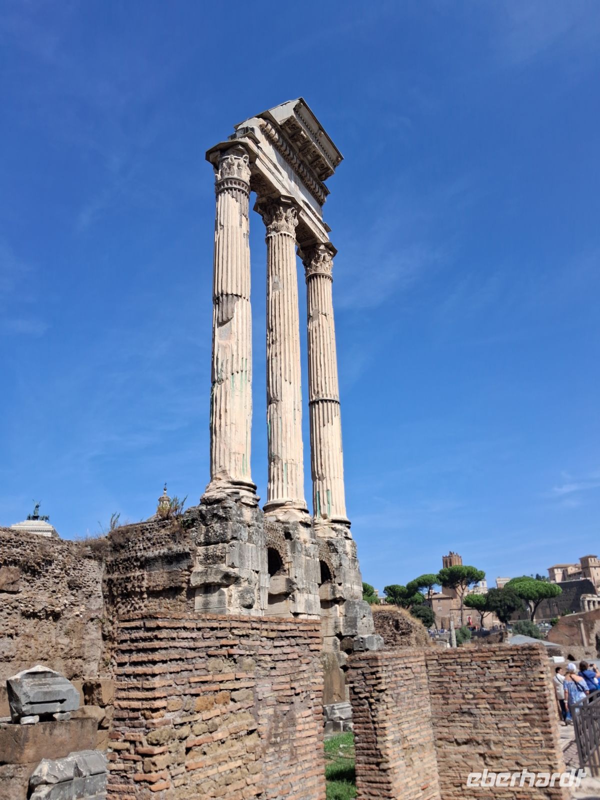 Nach dem Frühstück treffen wir unsere Reiseleiterin Agnieszka in der Lobby unseres Hotels, die uns auf die nächsten Besichtigungstage einstimmt. Von der Dachterrasse neben unserem Frühstücksraum können wir bereits einen ersten Blick auf Rom und das Nationaldenkmal werfen. Nach der Einführung testen wir die praktischen Audiogeräte, alles funktioniert wie geplant, und wir begeben uns zu Fuß zum Archäologischen Park. In wenigen Minuten erreichen wir das Forum Romanum. Zwischen den alten Säulen, Tempelresten und Plätzen erweckt unsere Reiseleiterin die Vergangenheit zum Leben. Während wir durch die Ruinen spazieren, erklärt Agnieszka uns, wie Rom entstand und hier einst Politik gemacht und das römische Alltagsleben organisiert wurde. Der Aufstieg auf den Palatin führt uns mit unserem Sonderticket zur Casa Tiberiana. Dieses Gebiet wurde erst vor wenigen Jahren für Touristen zugänglich gemacht. Die Casa Tiberiana, benannt nach Kaiser Tiberius, gehört zu den ältesten erhaltenen kaiserlichen Palästen in Rom. Von den oberen Bereichen hat man auf Aussichtsterrassen einen herlichen Blick auf das Forum Romanum. Zwischen den Resten von Wohn- und Repräsentationsräumen, von Gärten und Wandelhallen sehen wir marmorne Böden, reich mit Fresken verzierte Decken und hohe Hallen, die uns die Atmosphäre kaiserlicher Macht und die Pracht der Vergangenheit verdeutlichen.