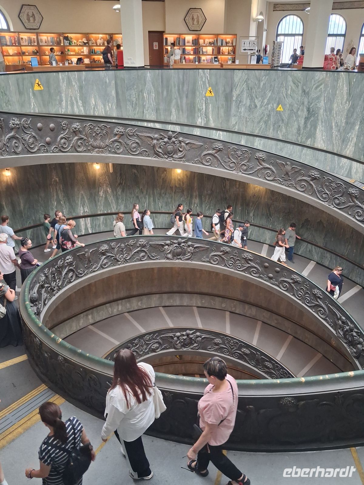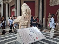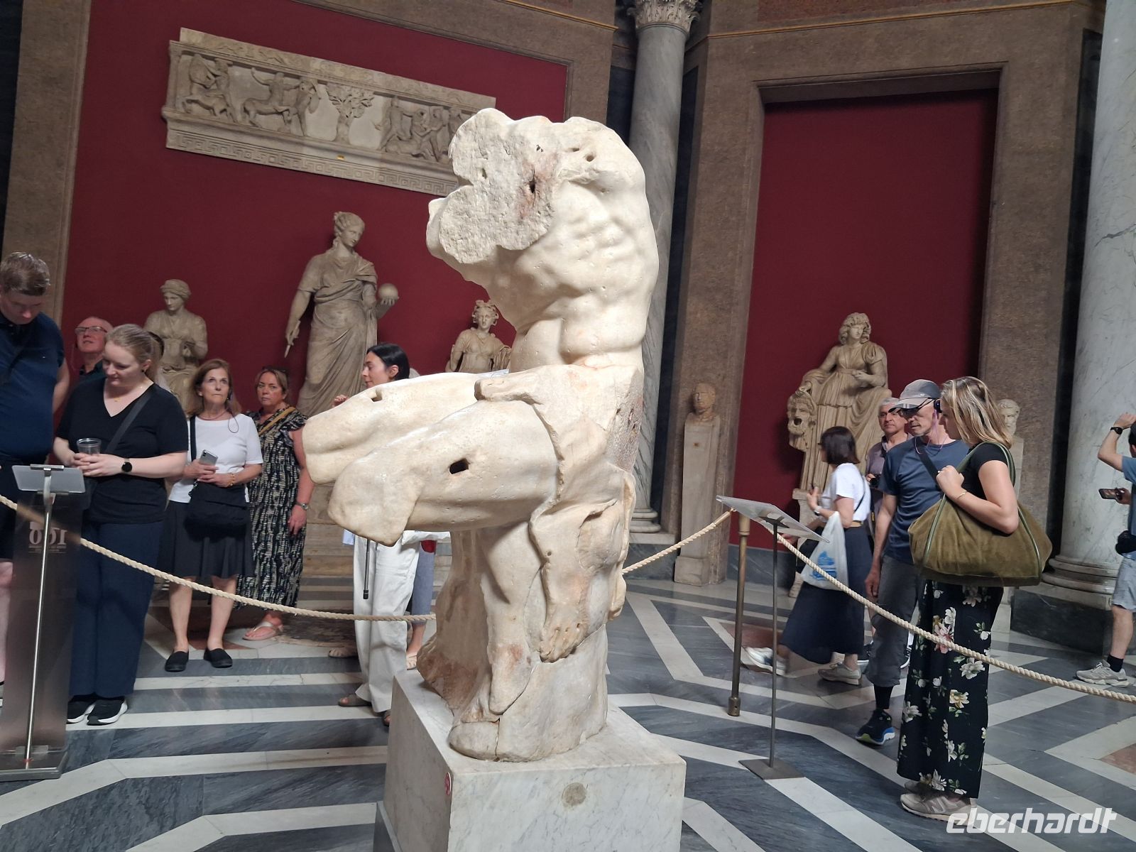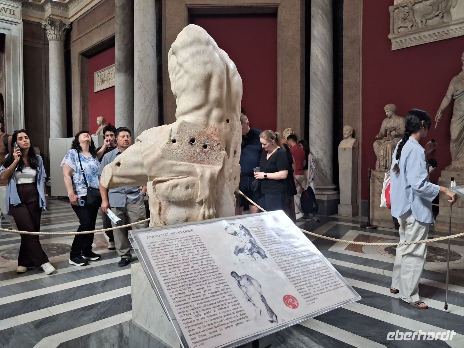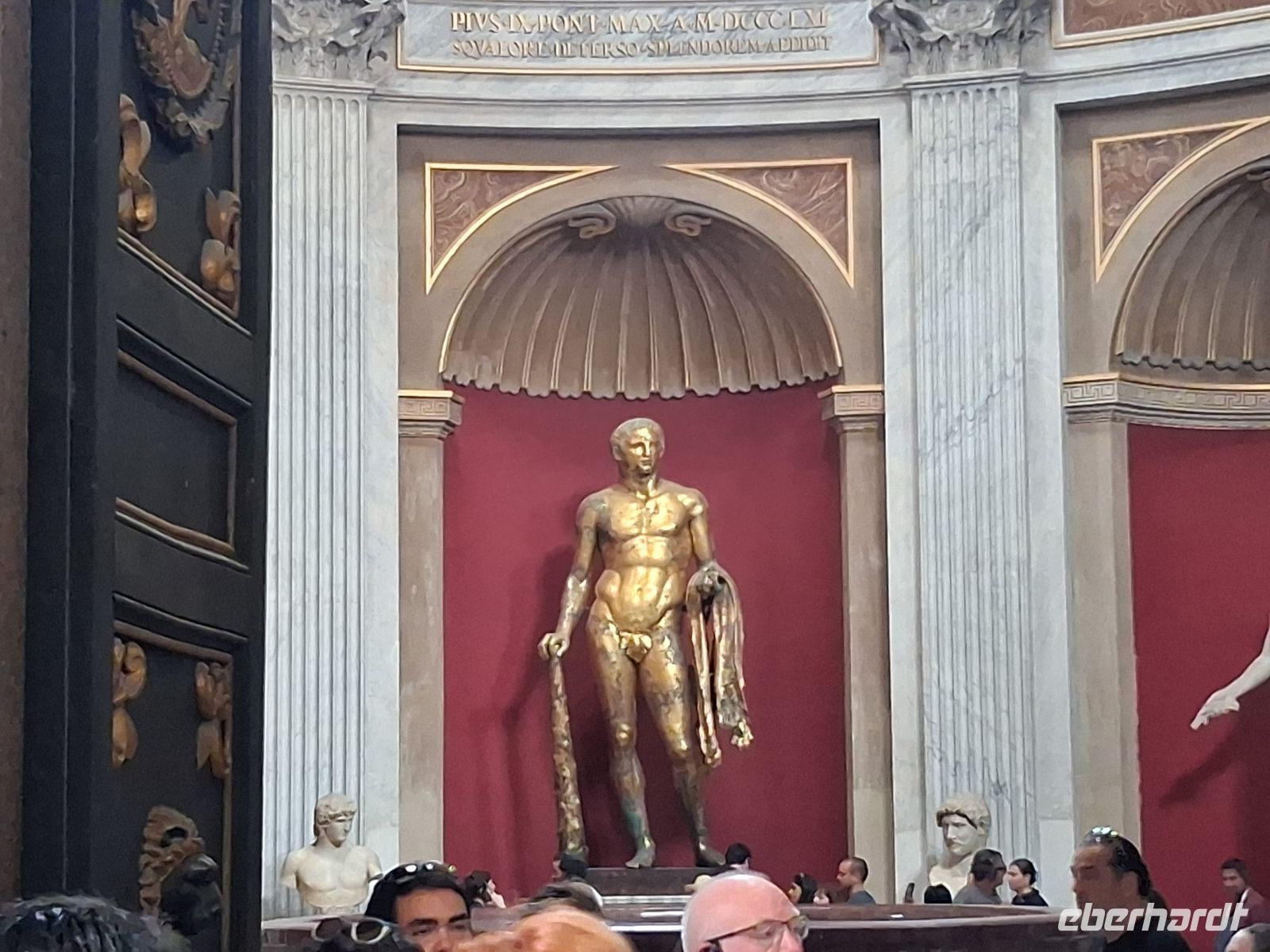 Nach dem Frühstück begeben wir uns mit der U-Bahn zu den Vatikanischen Museen, wo wir unsere Reiseführerin treffen. Die Stadt ist noch recht ruhig, da in Rom noch Ferien sind. Auf dem Weg zu den Museen schlendern wir durch ein paar Gassen und entdecken eine Pastamanufaktur, in der wir Einblick in die Herstellung großer Mengen frischer Nudeln bekommen. In den Vatikanischen Museen angekommen, ermöglichen uns unsere Sondertickets zunächst eine Busfahrt mit Audiogeräten durch die Vatikanischen Gärten. Das Licht auf die verschiedenen Bereiche des kunstvoll angelegten Parks am Morgen ist herrlich. Wir sehen kunstvoll angelegte Wege, große Brunnen, Denkmäler und Kapellen, die sich harmonisch zwischen Palmen, Pinien und Rosenbeeten erheben. Immer wieder bieten sich herrliche Ausblicke auf die Kuppel des Petersdoms, der heute ebenfalls auf dem Programm steht. Nach der Rundfahrt wechseln wir von der Natur zur Kunst: Schon der erste Eindruck in den Vatikanischen Museen ist überwältigend. Lange kunstvoll geschmückte Gänge, Statuen, Deckenmalereien, Fresken, Tapisserien und verschiedenste einzigartige Kunstwerke begegnen uns während unserer Führung. Der Höhepunkt unseres Besuchs ist die Sixtinische Kapelle - ein heiliger Ort, den wir in aller Stille genießen. Alle Blicke sind auf die Fresken von Michelangelo gerichtet. Wir genießen die leuchtenden Farben der gewaltigen Szenen aus der Schöpfungsgeschichte, bevor wir durch einen Seitenausgang direkt zum Petersdom gehen.