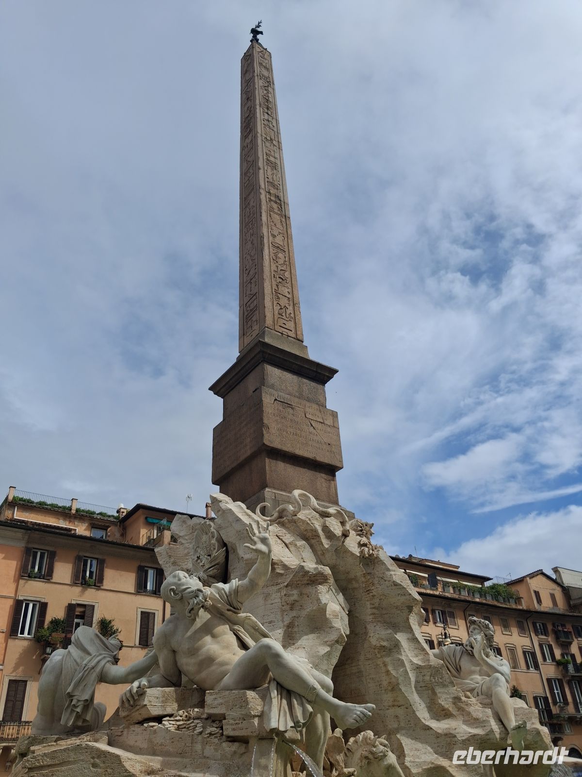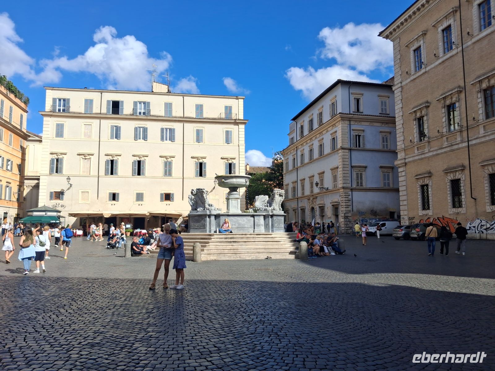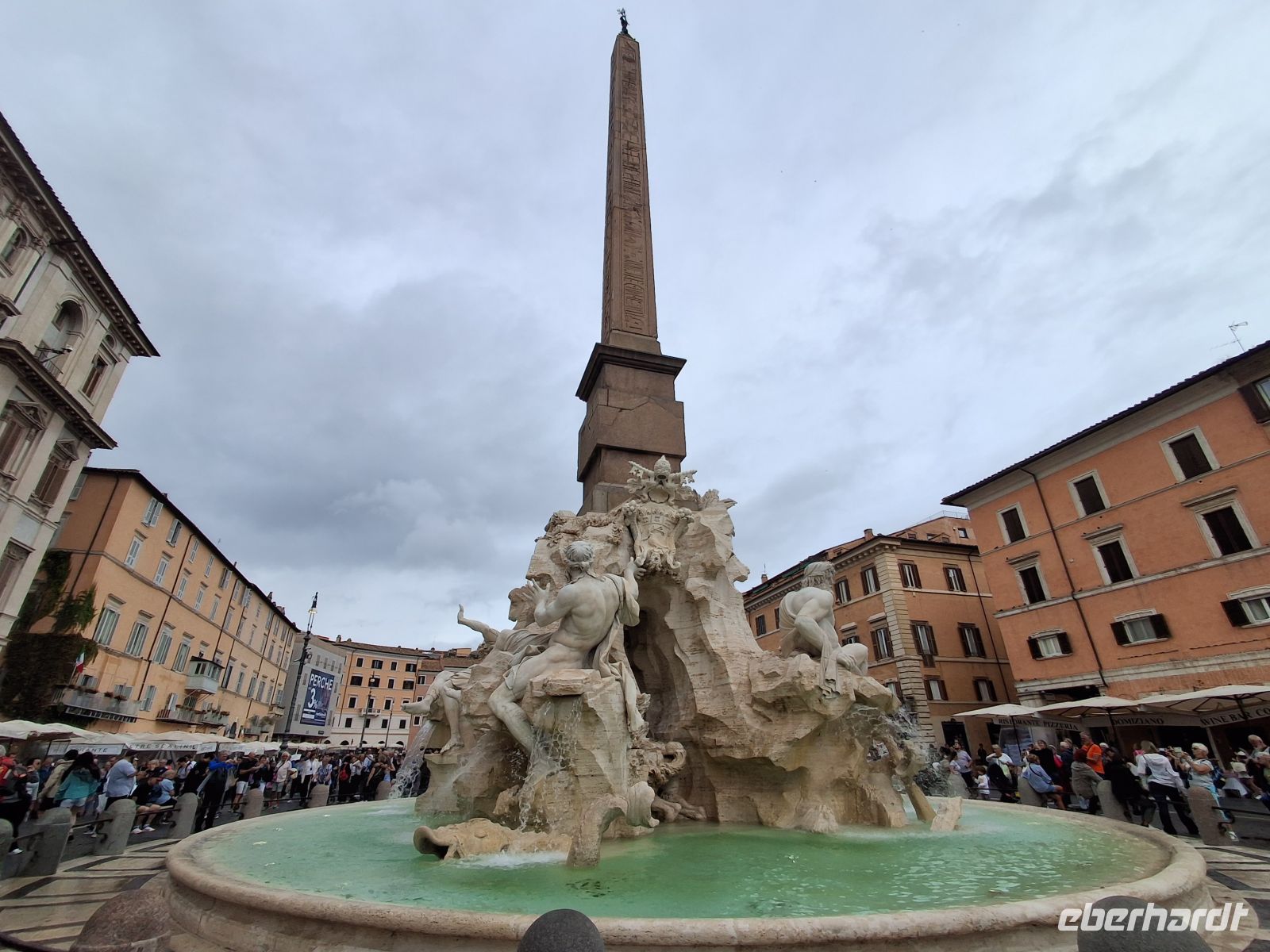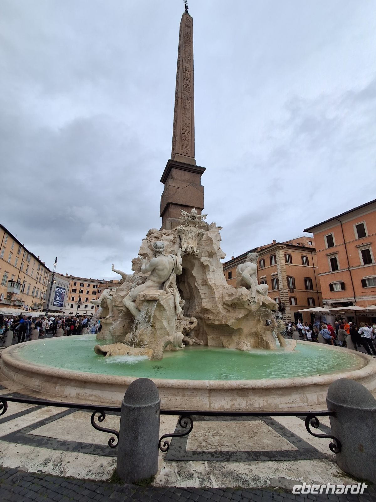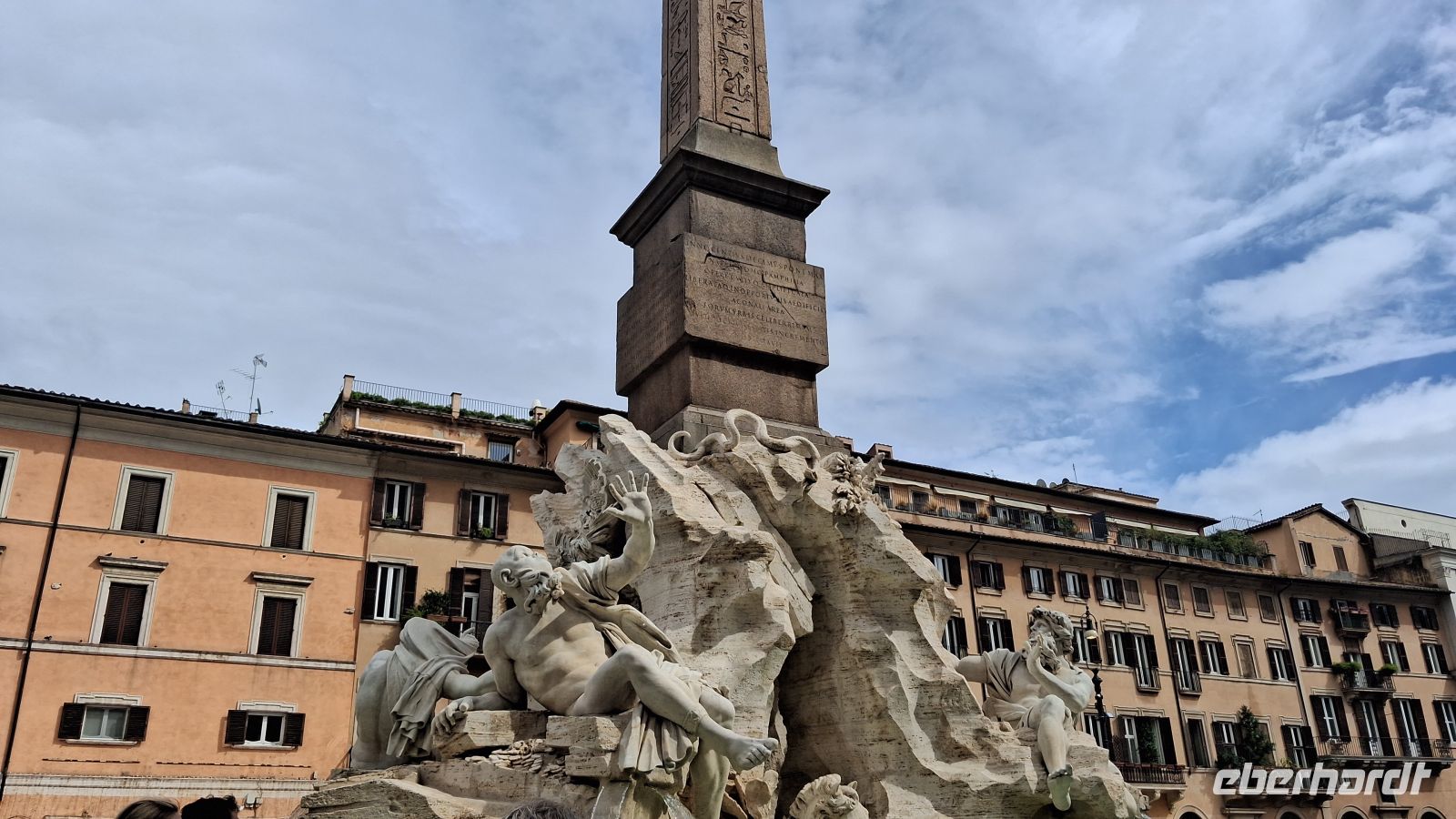 Über die Brücke vor der Engelsburg begeben wir uns weiter in die Altstadt Roms bis zur Piazza Navona - das barocke Herz Roms. Ursprünglich wurde der Platz als Stadion des Domitian angelegt, erzählt uns Agnieszka. Die ovale Form sieht man noch heute. Wir besuchen den prächtigen Vierströmebrunnen auf der Mitte des Platzes, wo unsere Führung anschließend endet. Einige von uns bleiben noch in der Altstadt - wo uns später wieder Regen überrascht. Wir fahren gemeinsam mit den öffentlichen Verkehrsmitteln in unser Hotel zurück und verabreden uns zum Abendessen oder lassen den Abend individuell ausklingen.